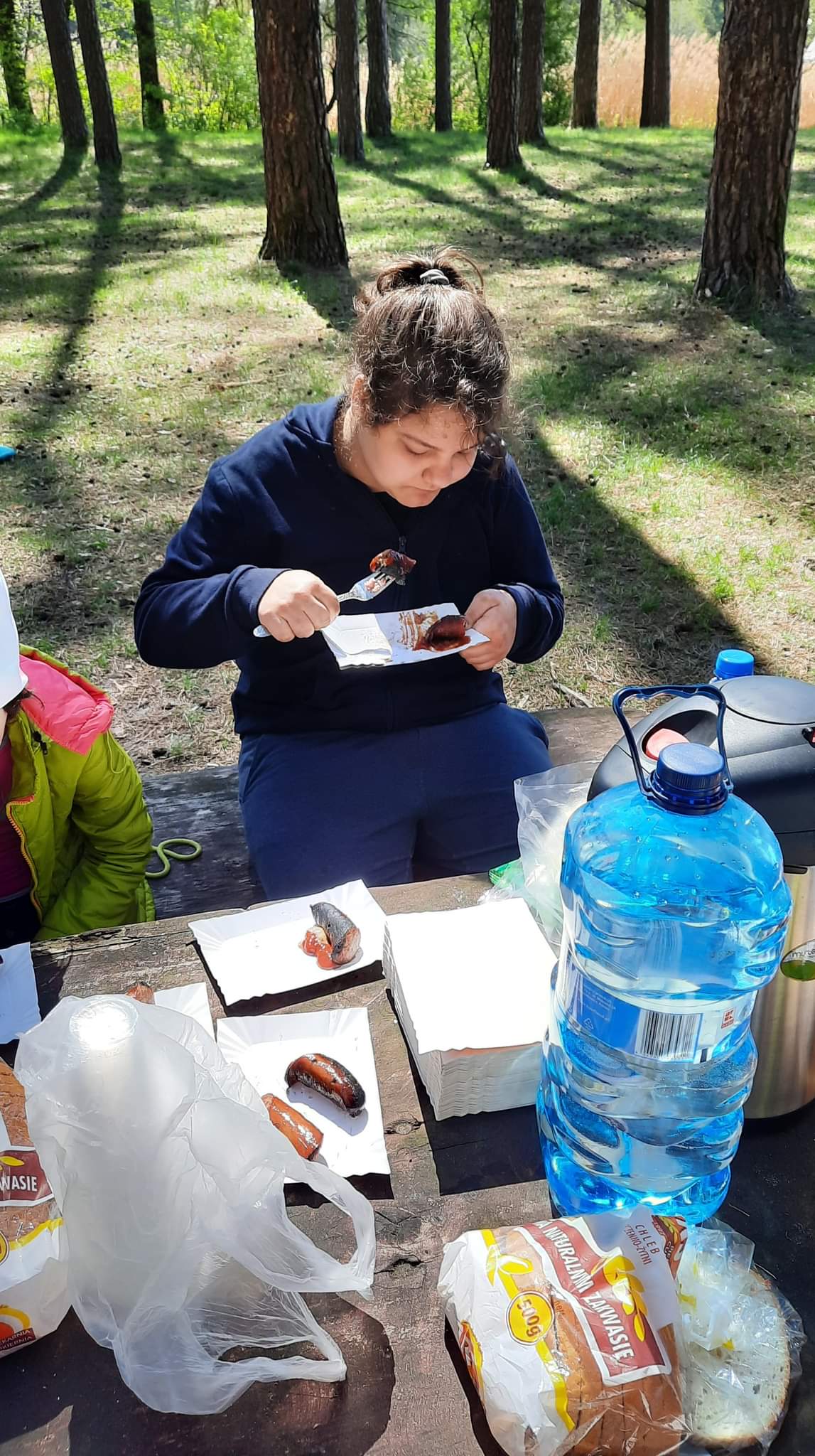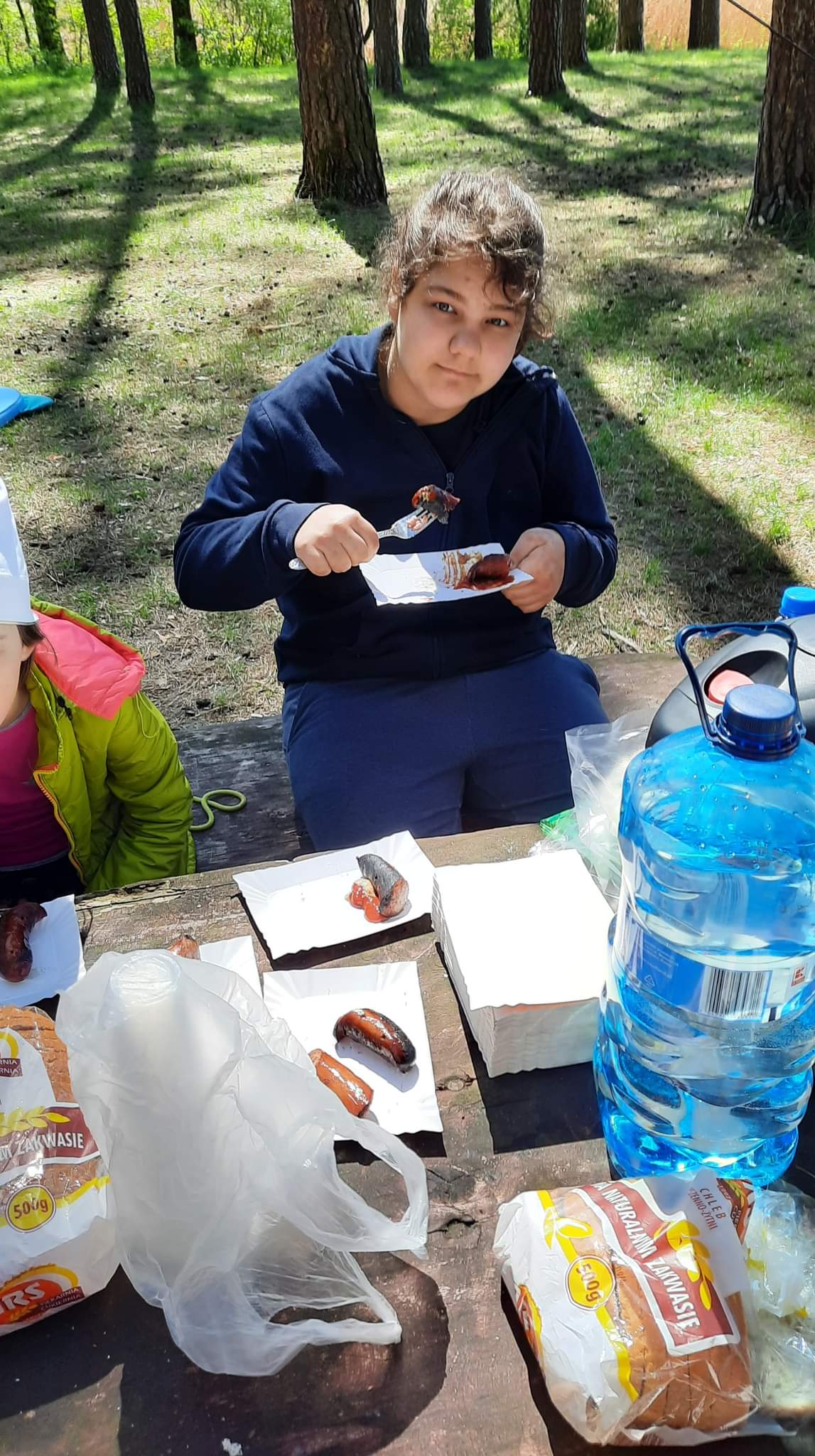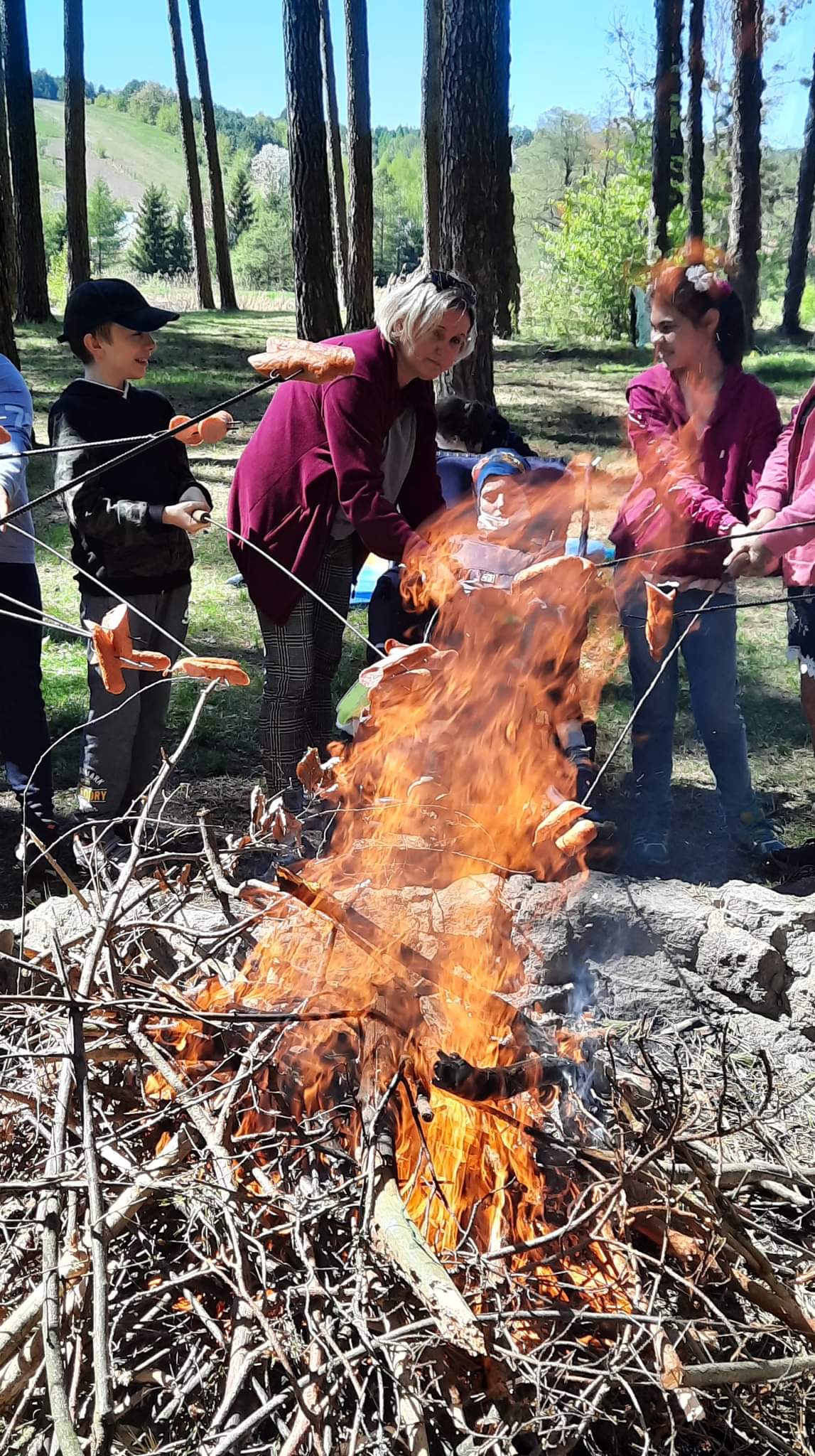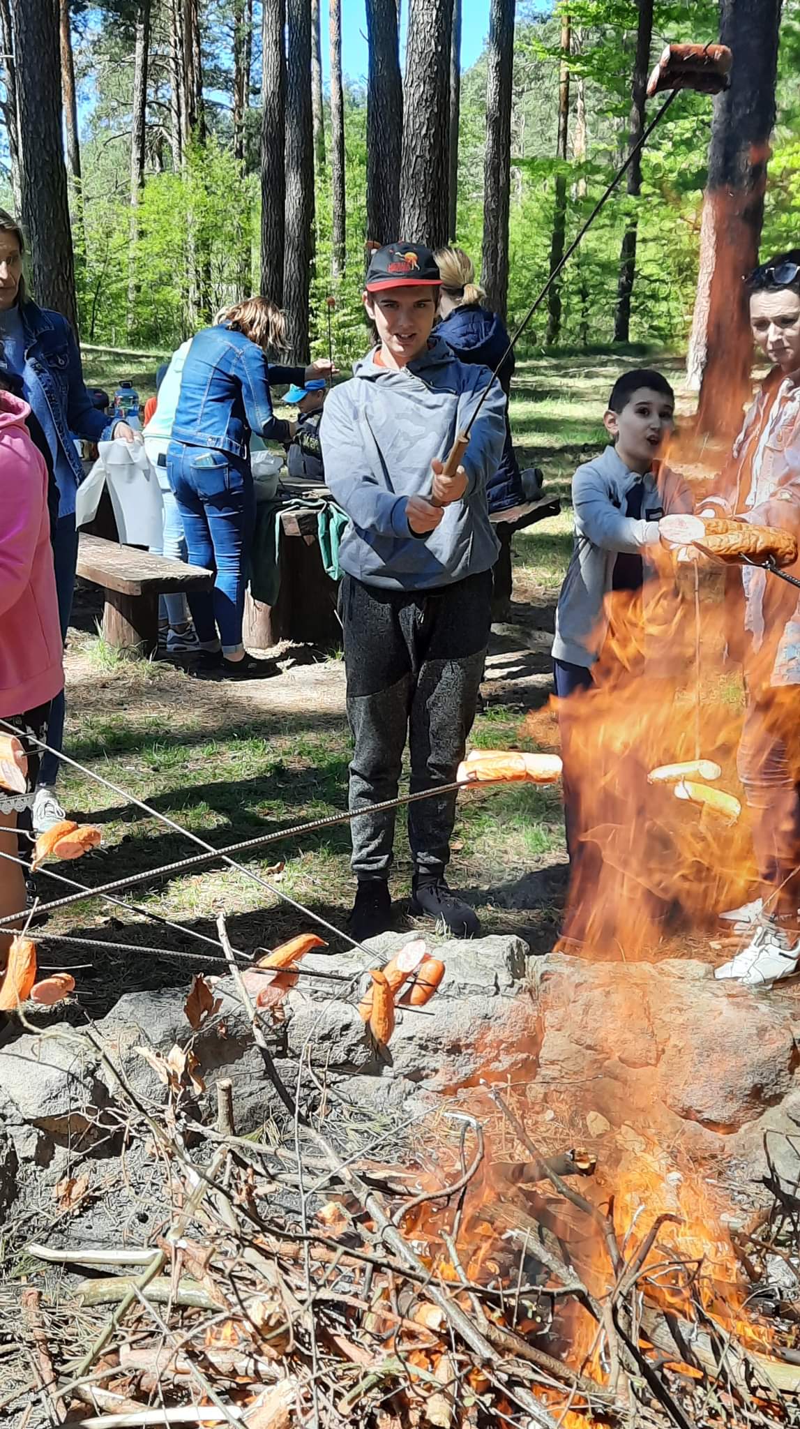 Korzystając z pięknej pogody uczniowie pozostały czas spędzili przy ognisku i pieczeniu kiełbasek na łonie natury.