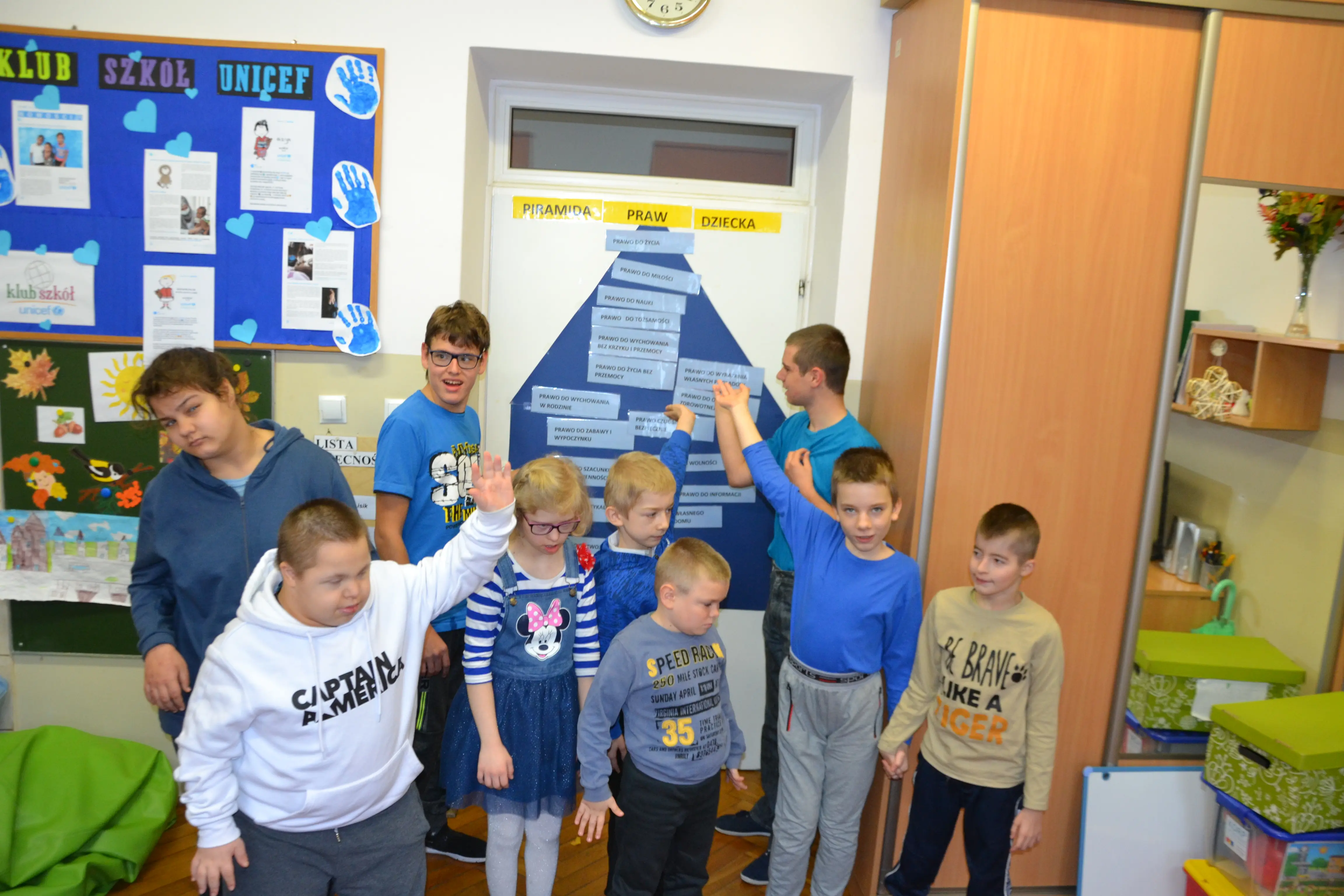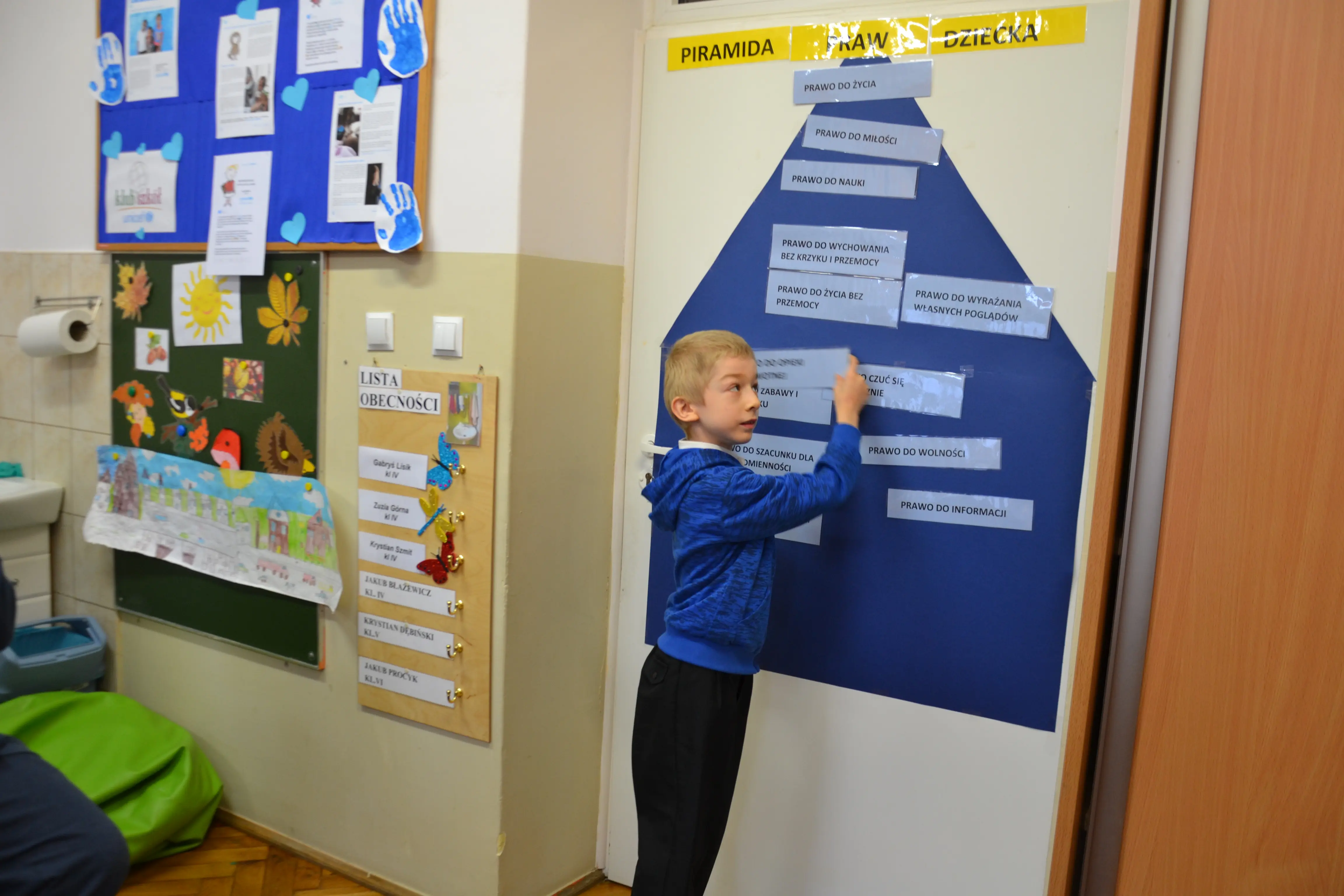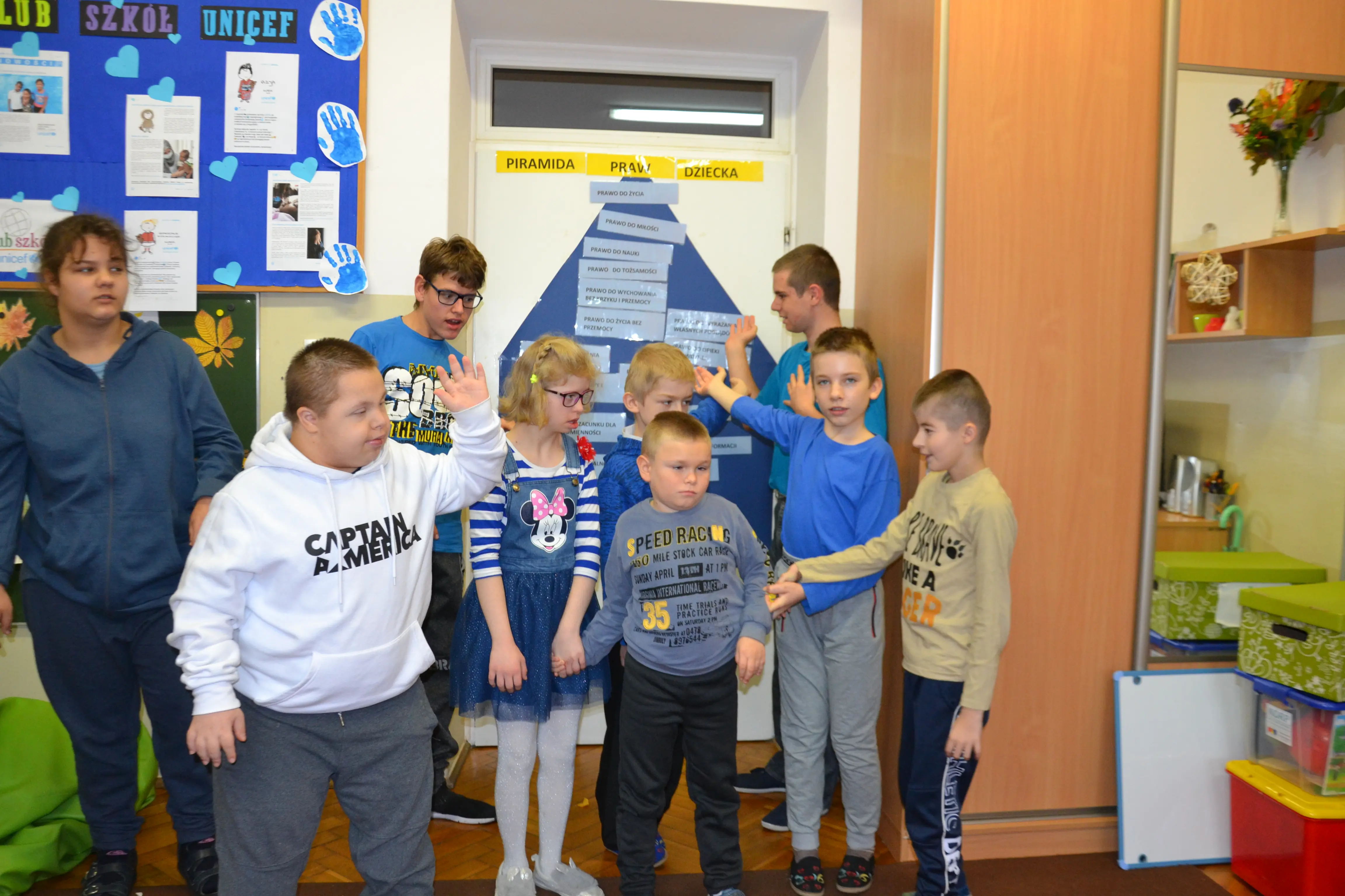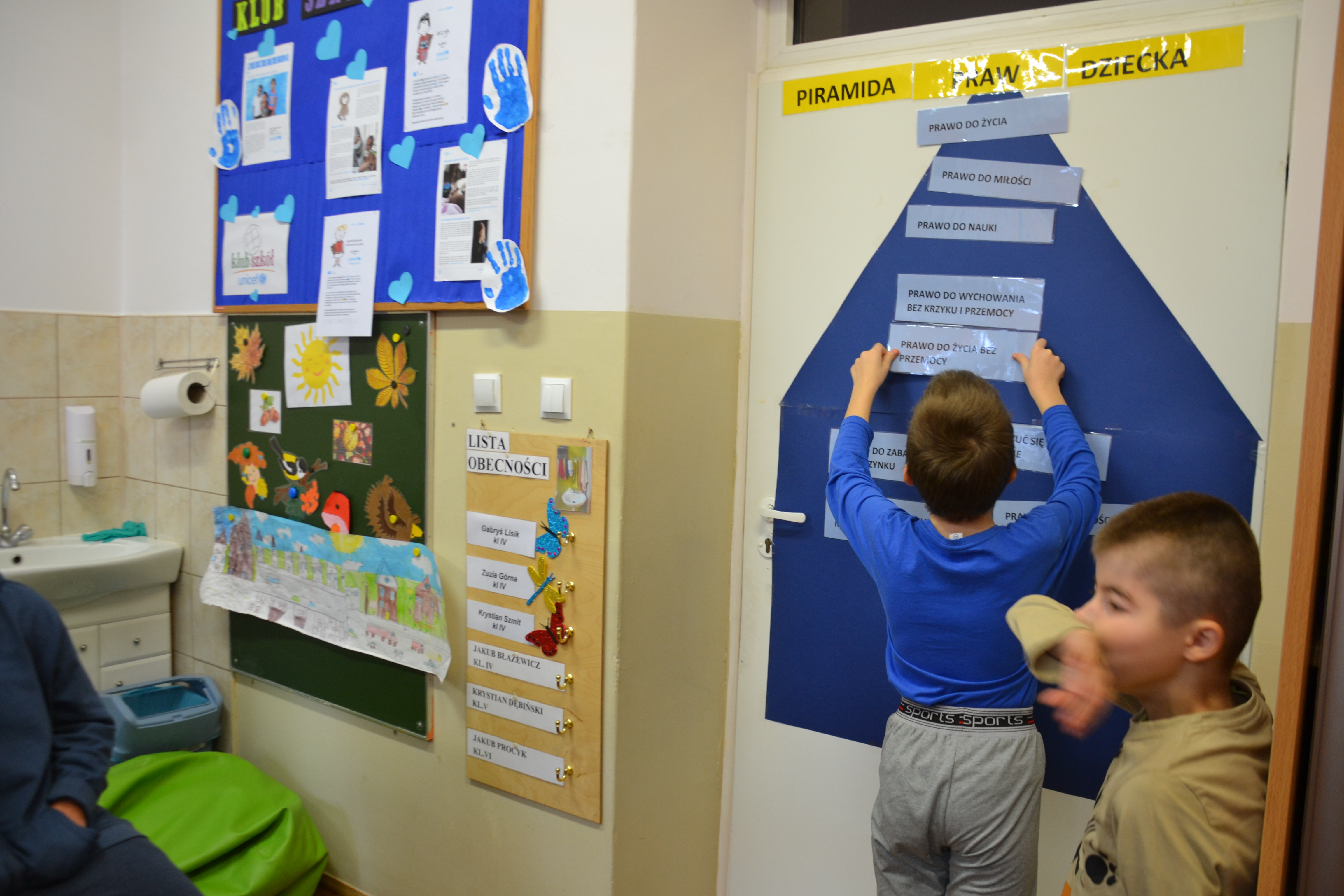 Uczniowie klas edukacyjnych wykonali PIRAMIDĘ PRAW DZIECKA.