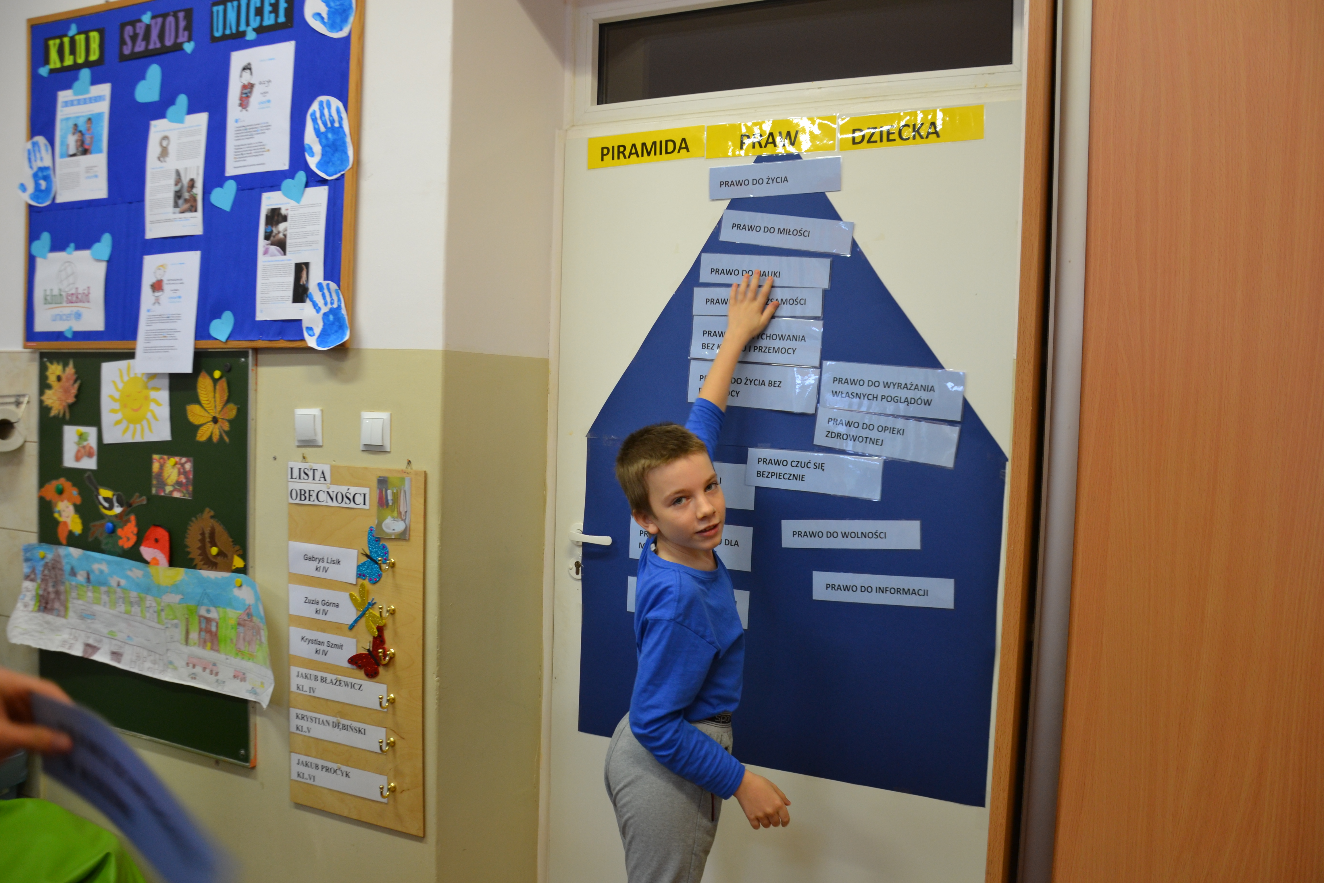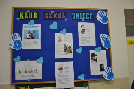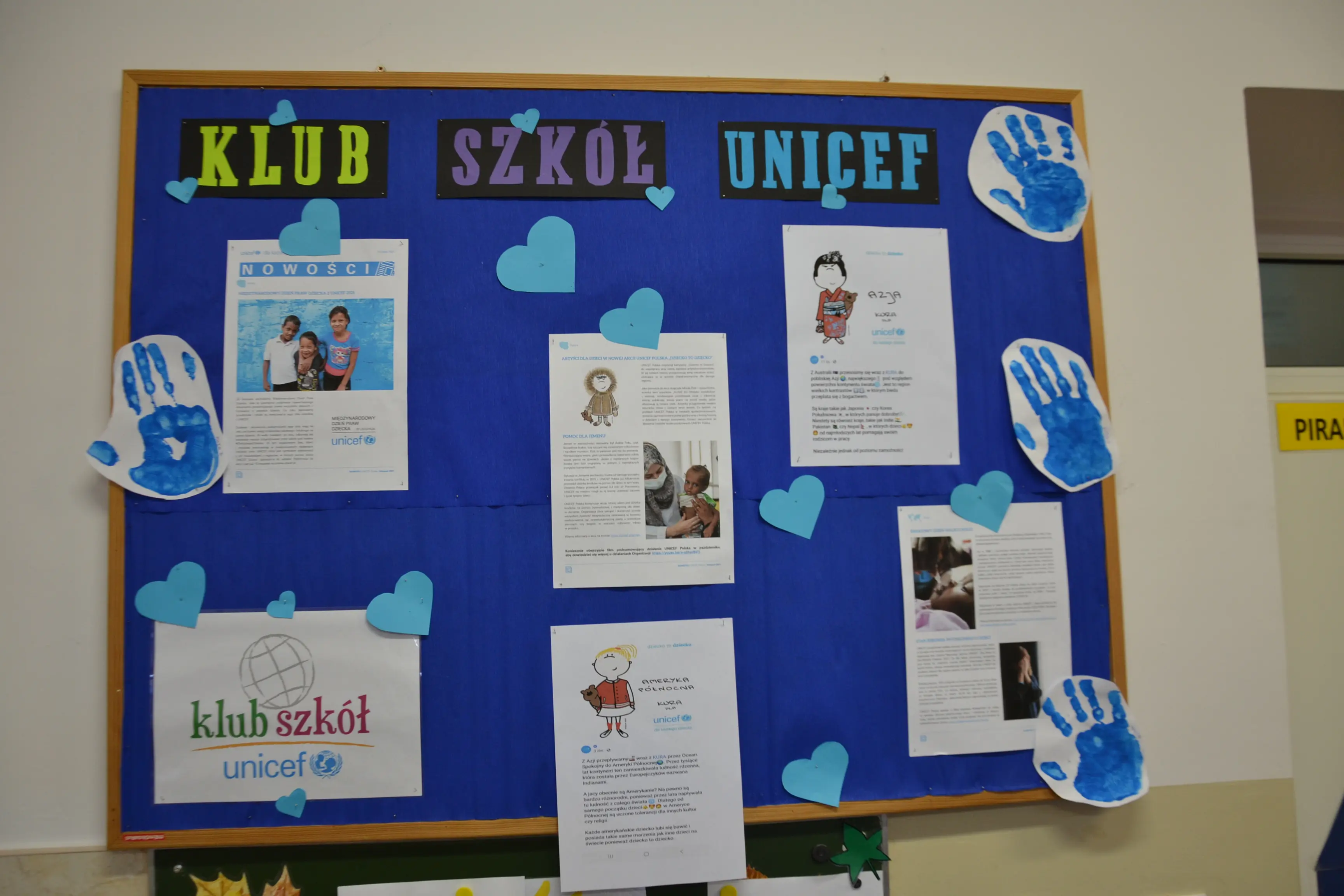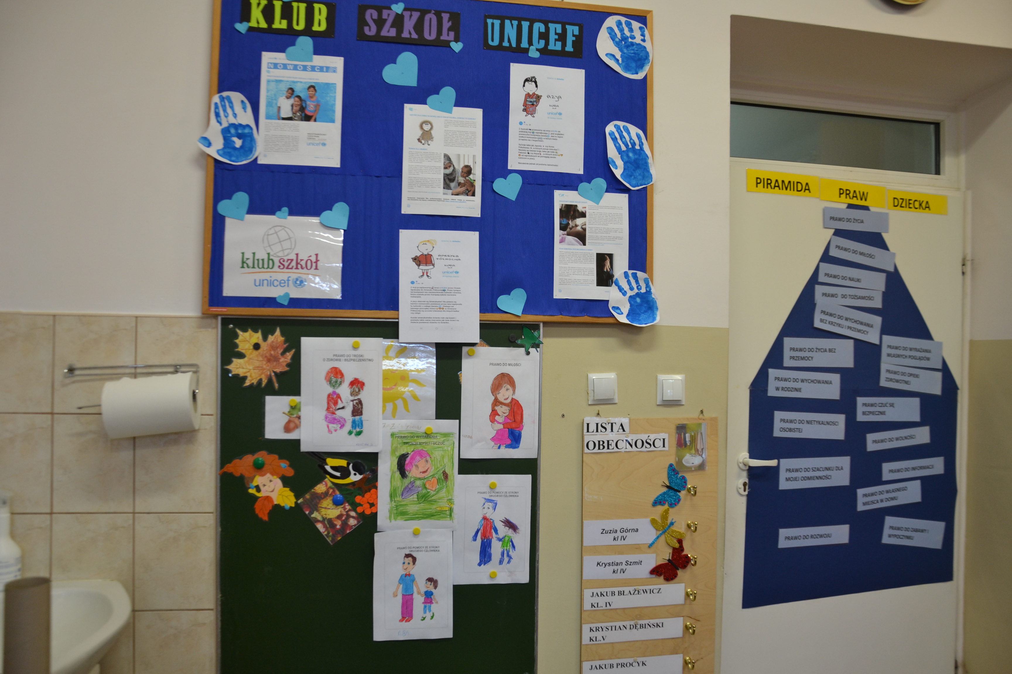 Nasza placówka przyłączyła się do Klubu Szkół UNICEF. W klasie IV powstał "Kącik UNICEF" - przestrzeń dedykowana informacjom o prawach dziecka i edukacji globalnej na dany rok szkolny. Dzięki temu nasi uczniowie poznają idee pomocy humanitarnej.