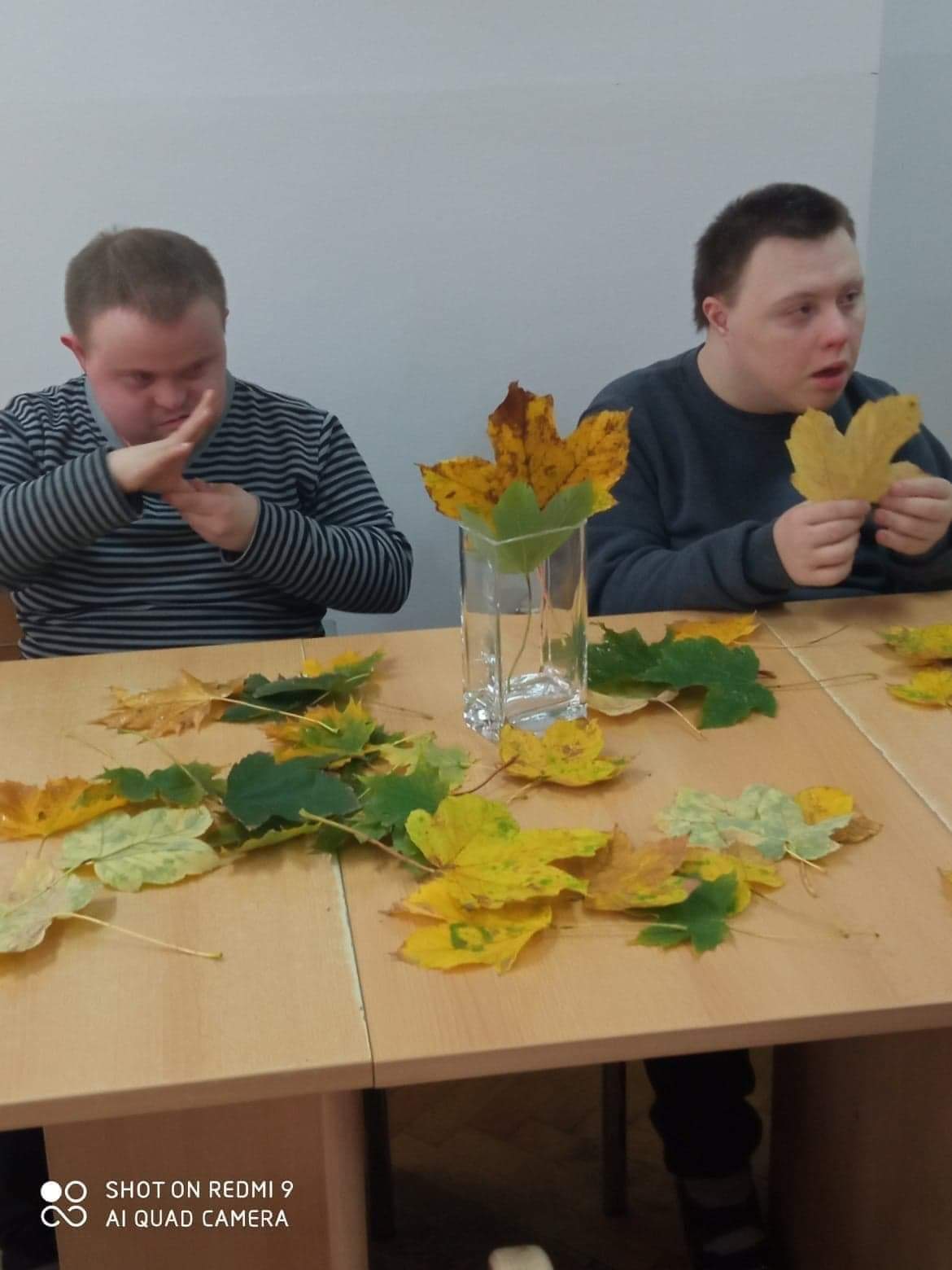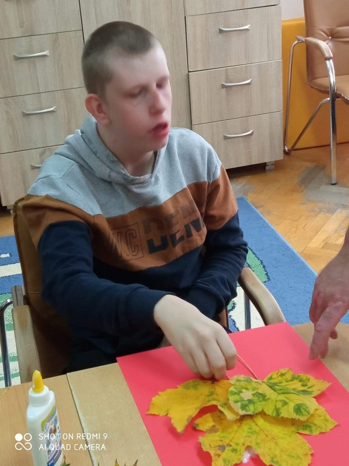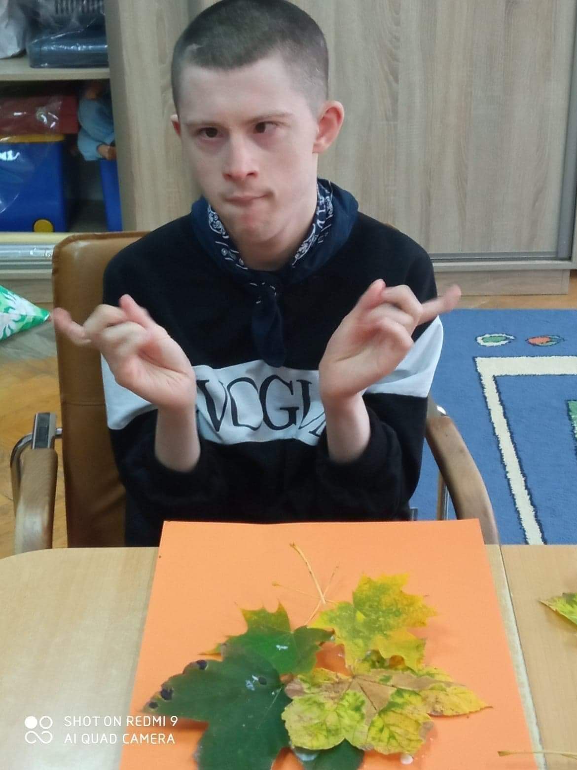 W ramach Ogólnopolskiego Projektu Edukacyjnego " Z darami natury świat nie jest ponury" grupy rewalidacyjno-wychowawcze wykonały zadanie "Lecą na głowę liście kolorowe".