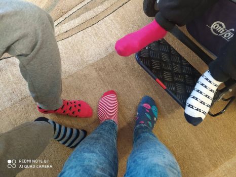 Pomyliłam dziś skarpetki i ubrałam nie do pary. Po co❓ na co❓ i dlaczego❓ By dać innym więcej wiary. Inny to nie znaczy gorszy nie oznacza też że sam. Otwórz serce❤️❤️❤️ dziś dla innych, taka radę Tobie dam🌼🙂