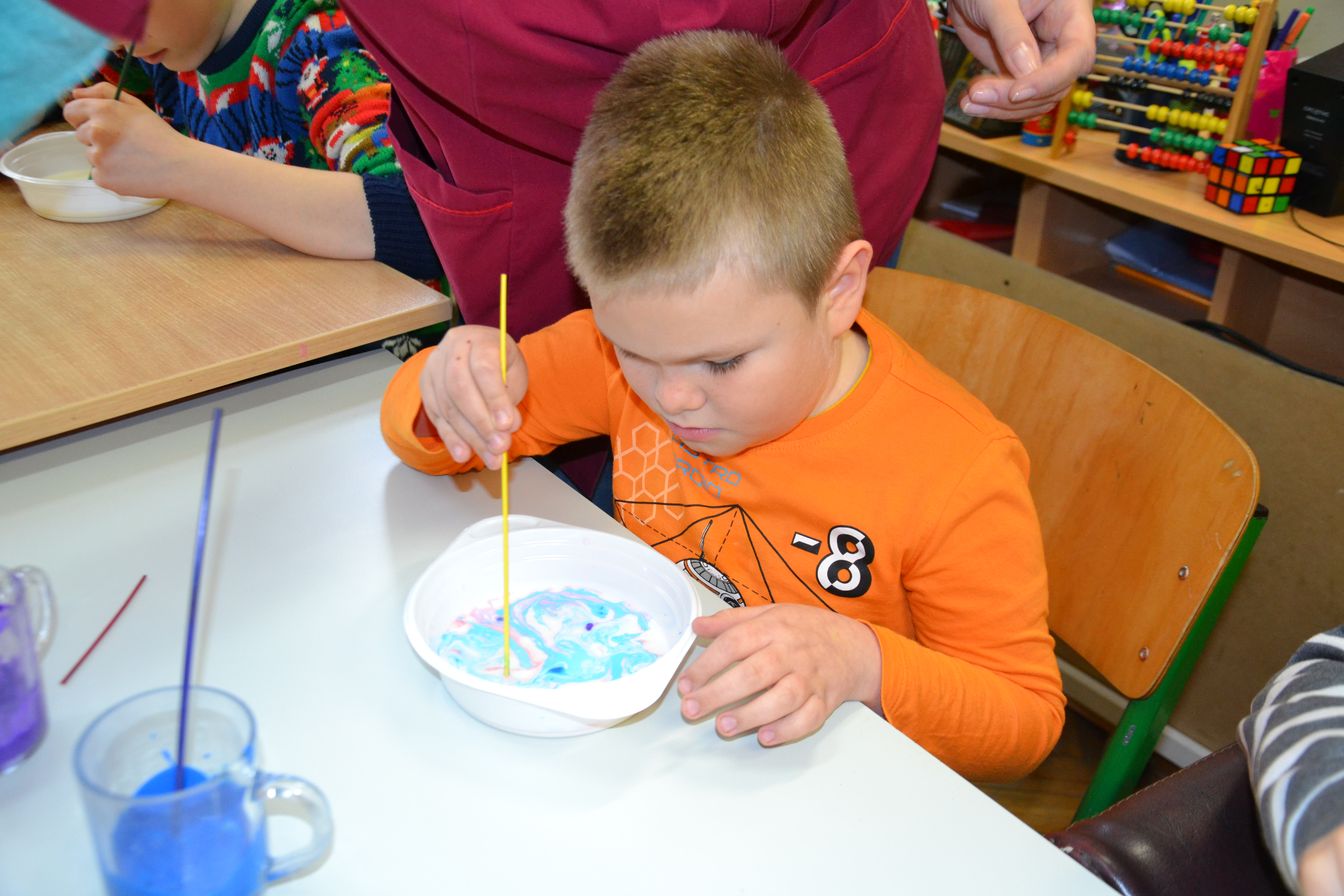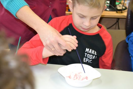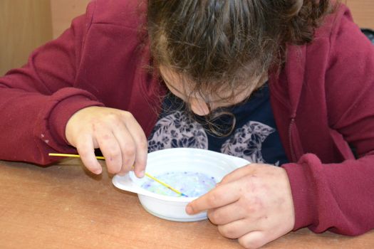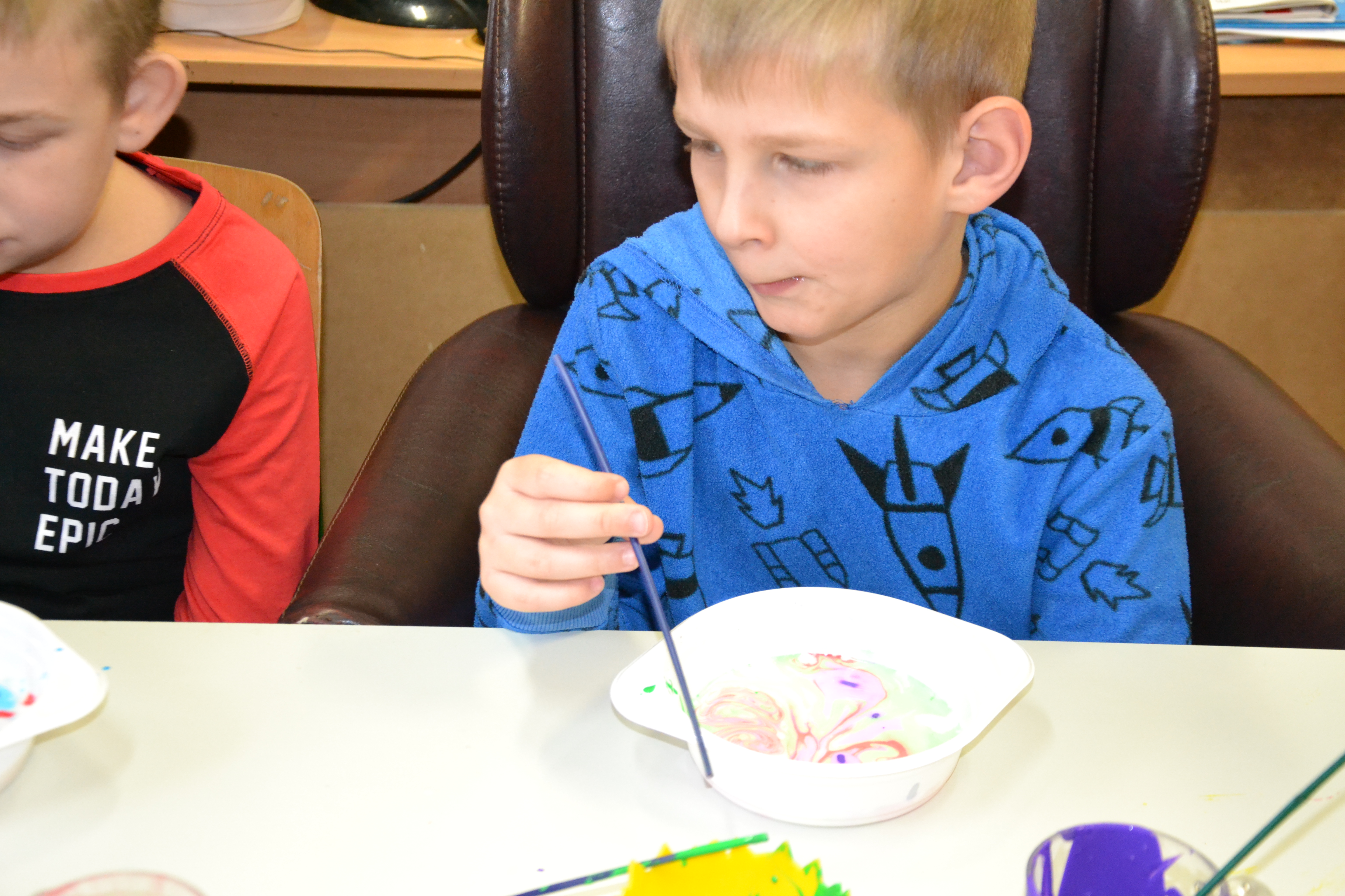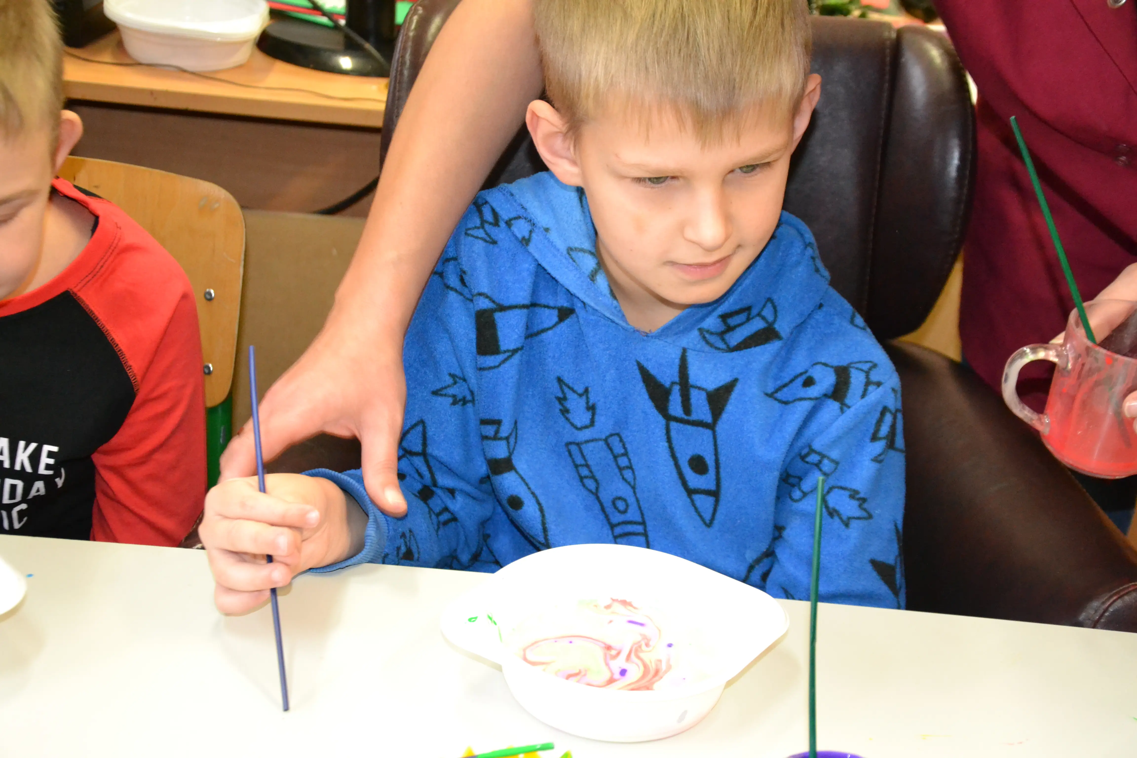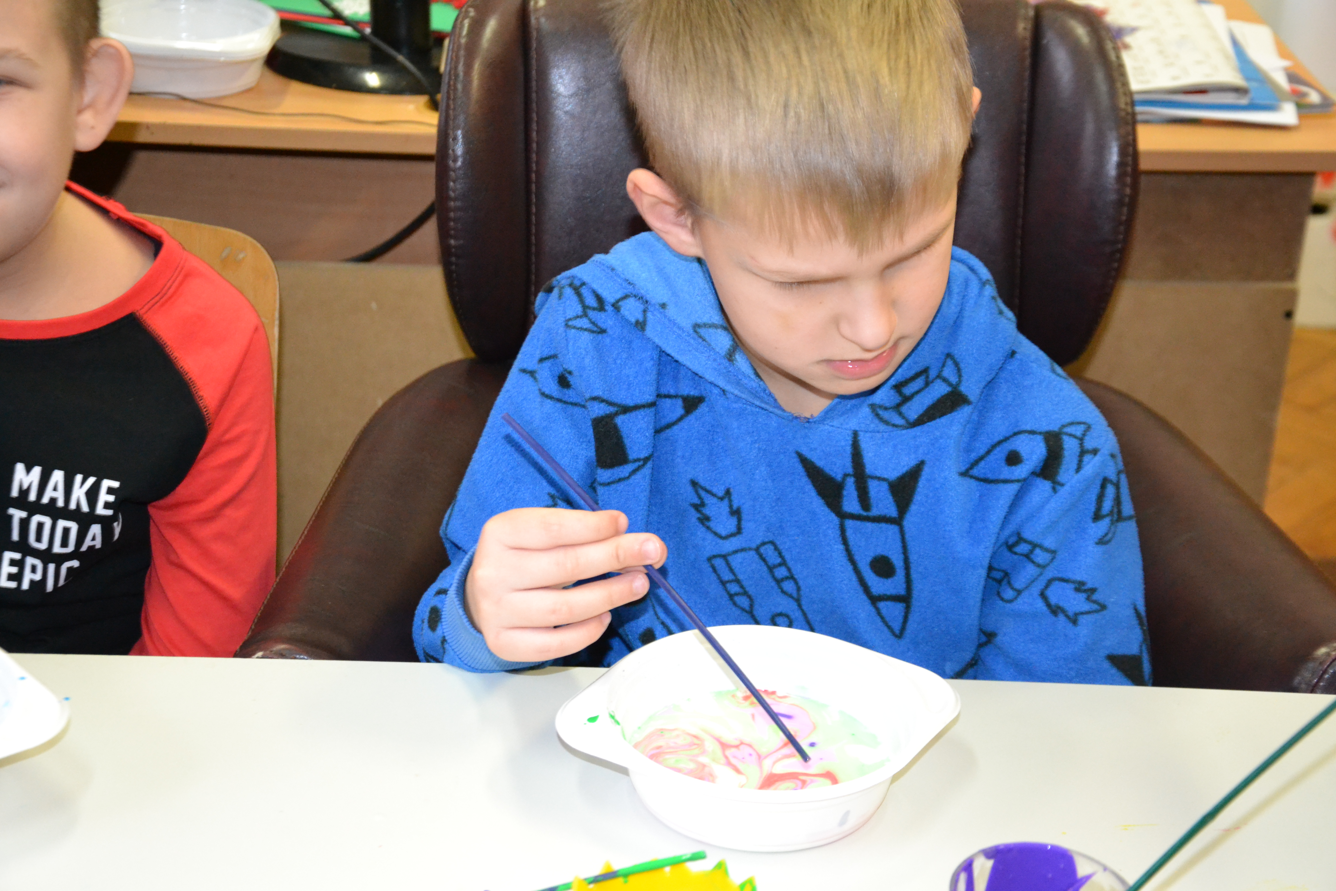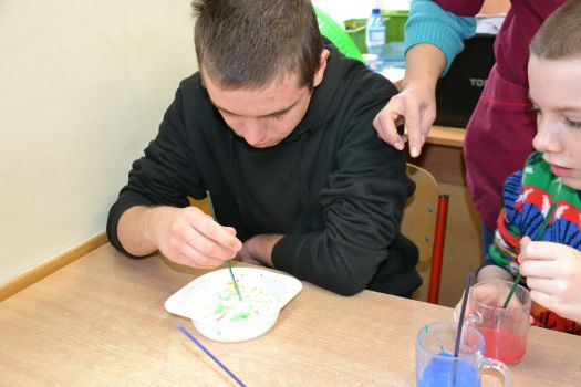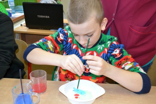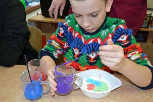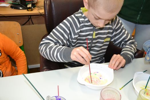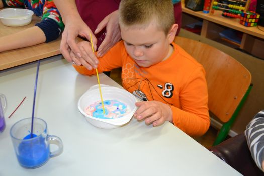 Dzieci z grup przedszkolnych edukacyjnych i rewalidacyjnych w ramach projektu wykonały Obraz Malowany Na Mleku.