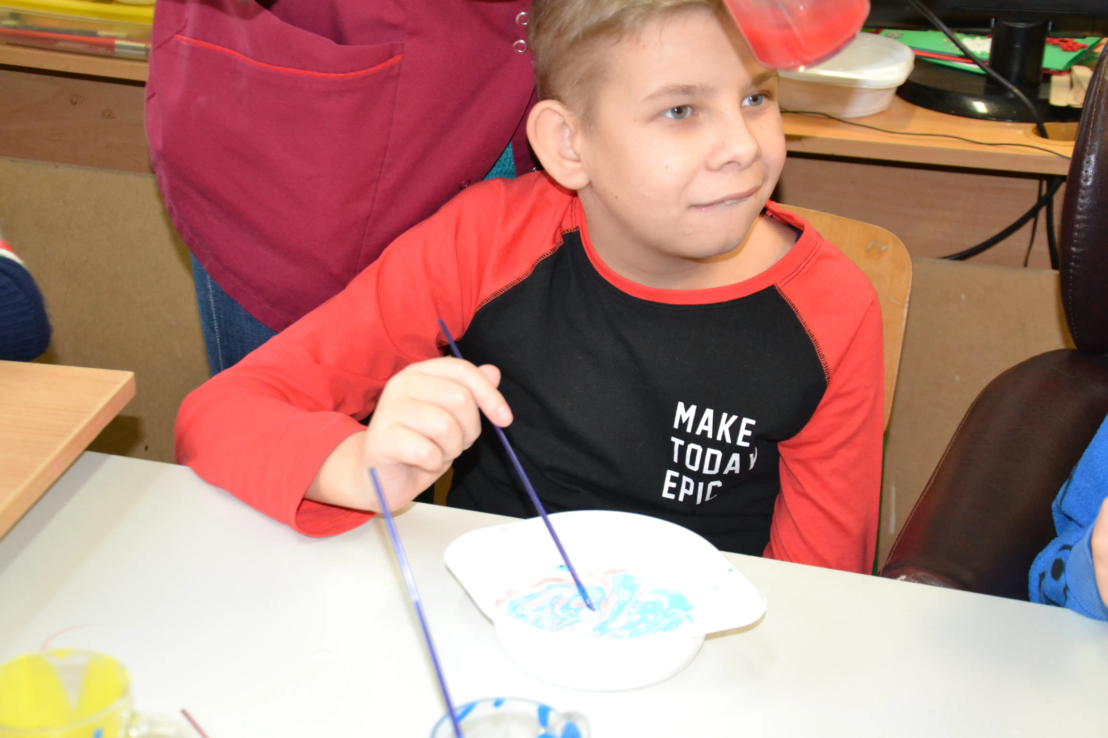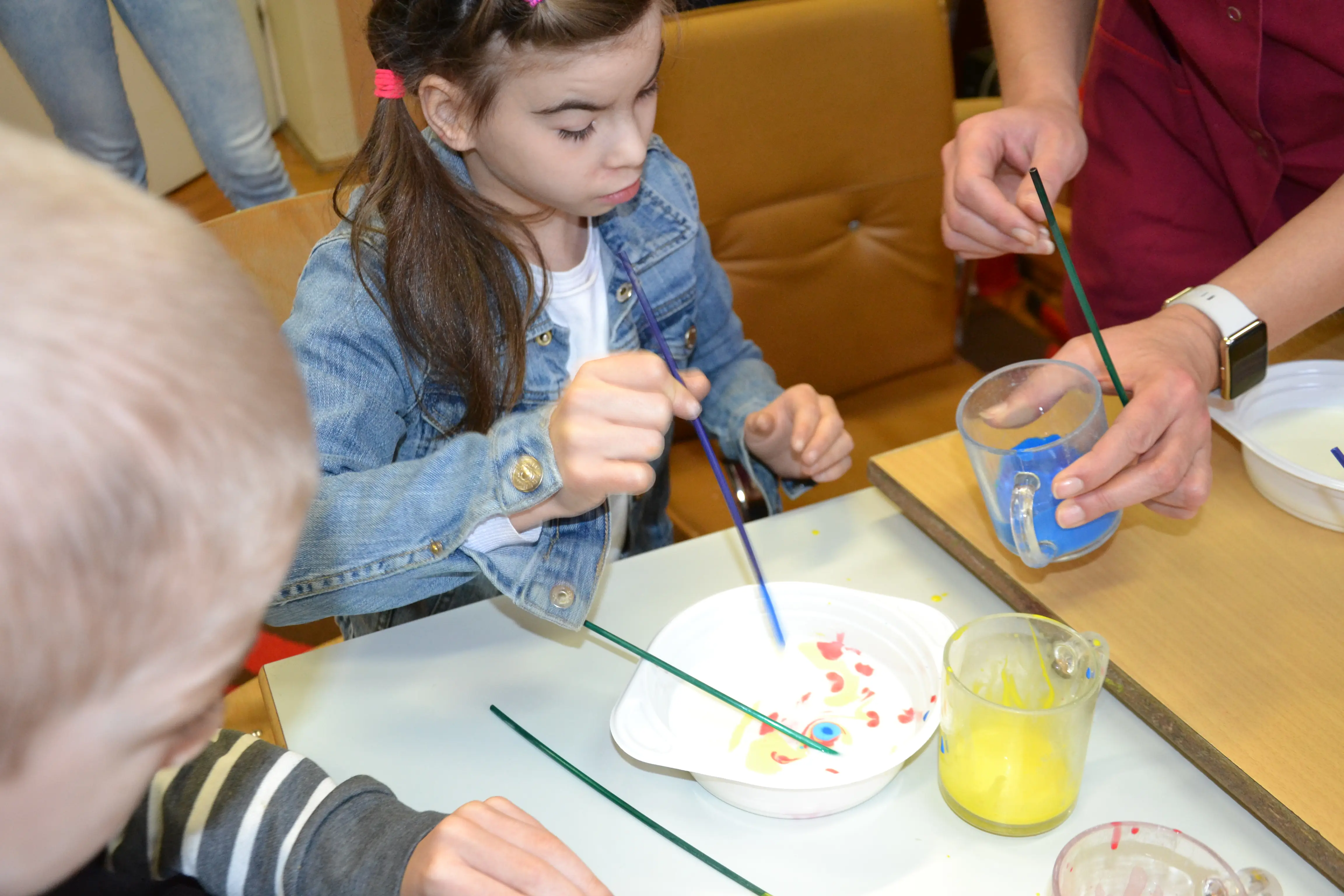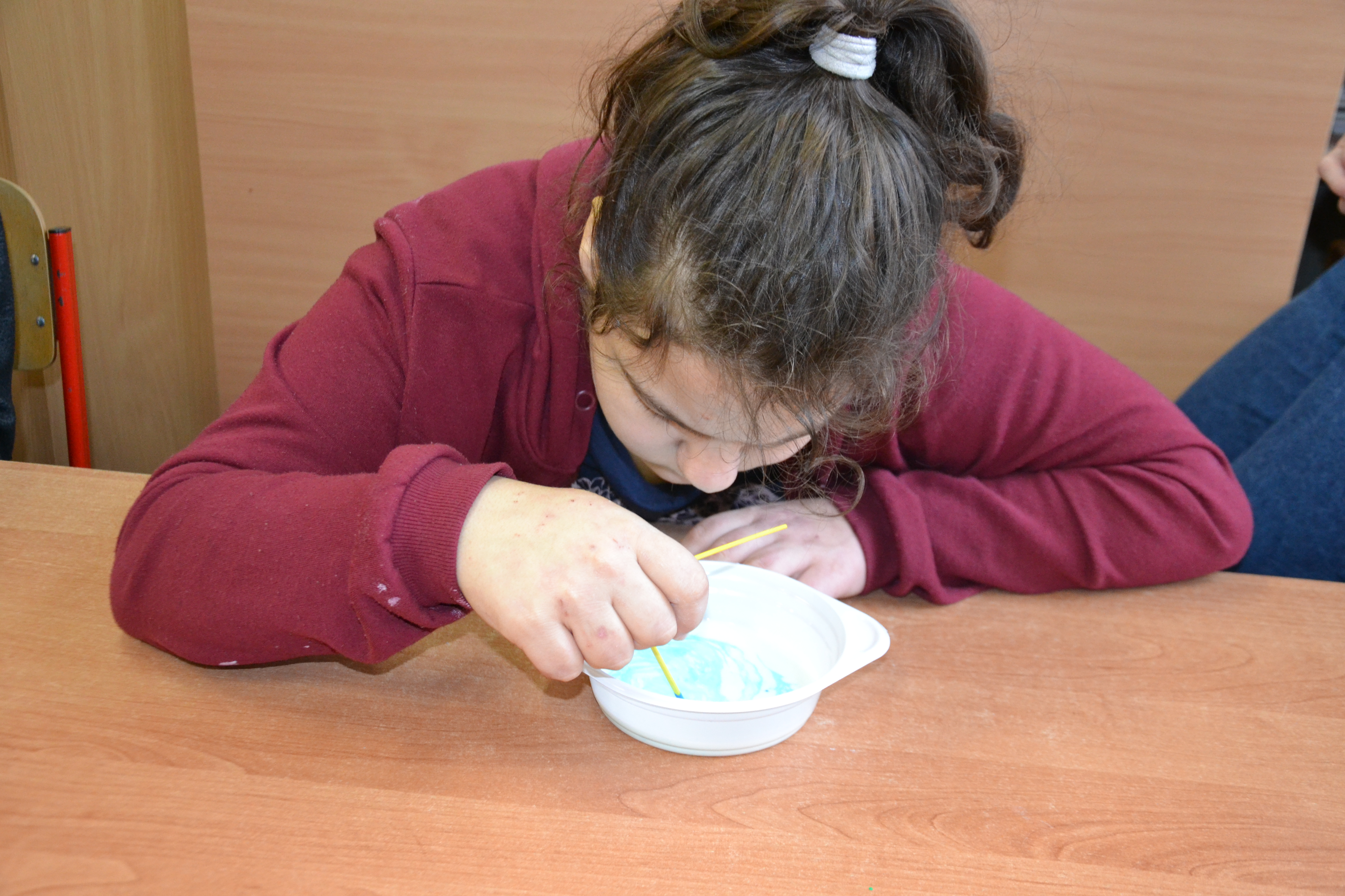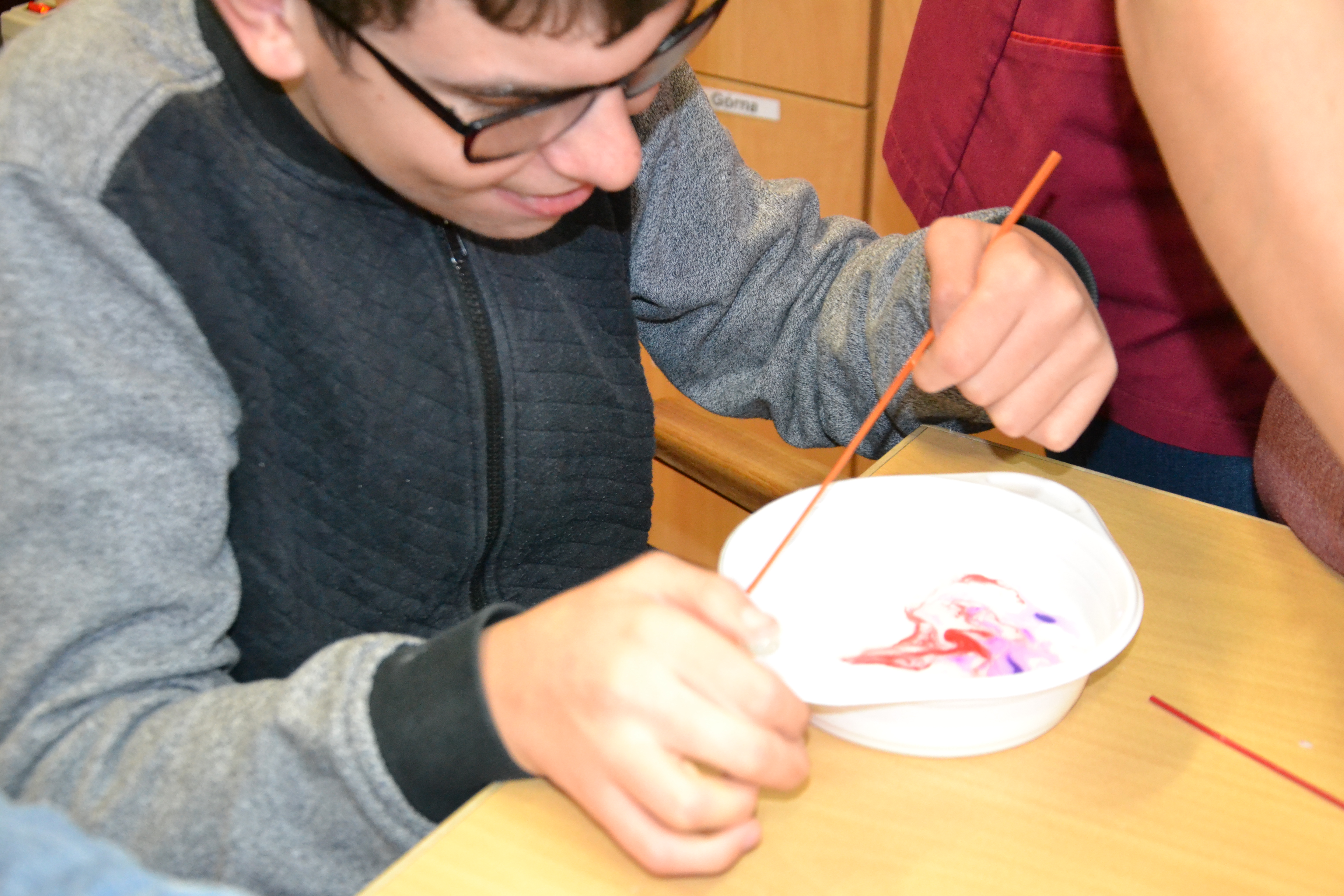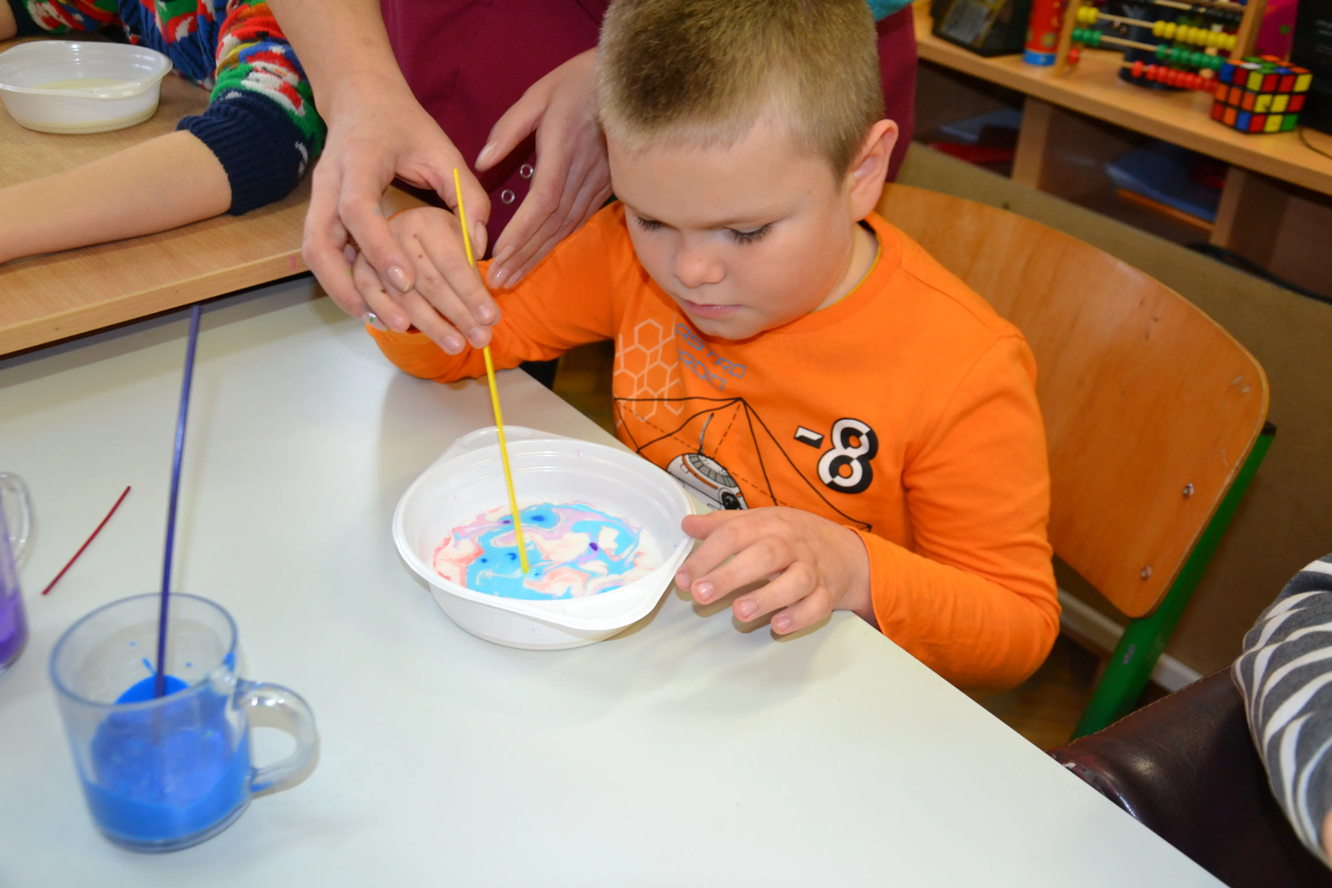 Dzieci z grup przedszkolnych edukacyjnych i rewalidacyjnych w ramach projektu wykonały Obraz Malowany Na Mleku.