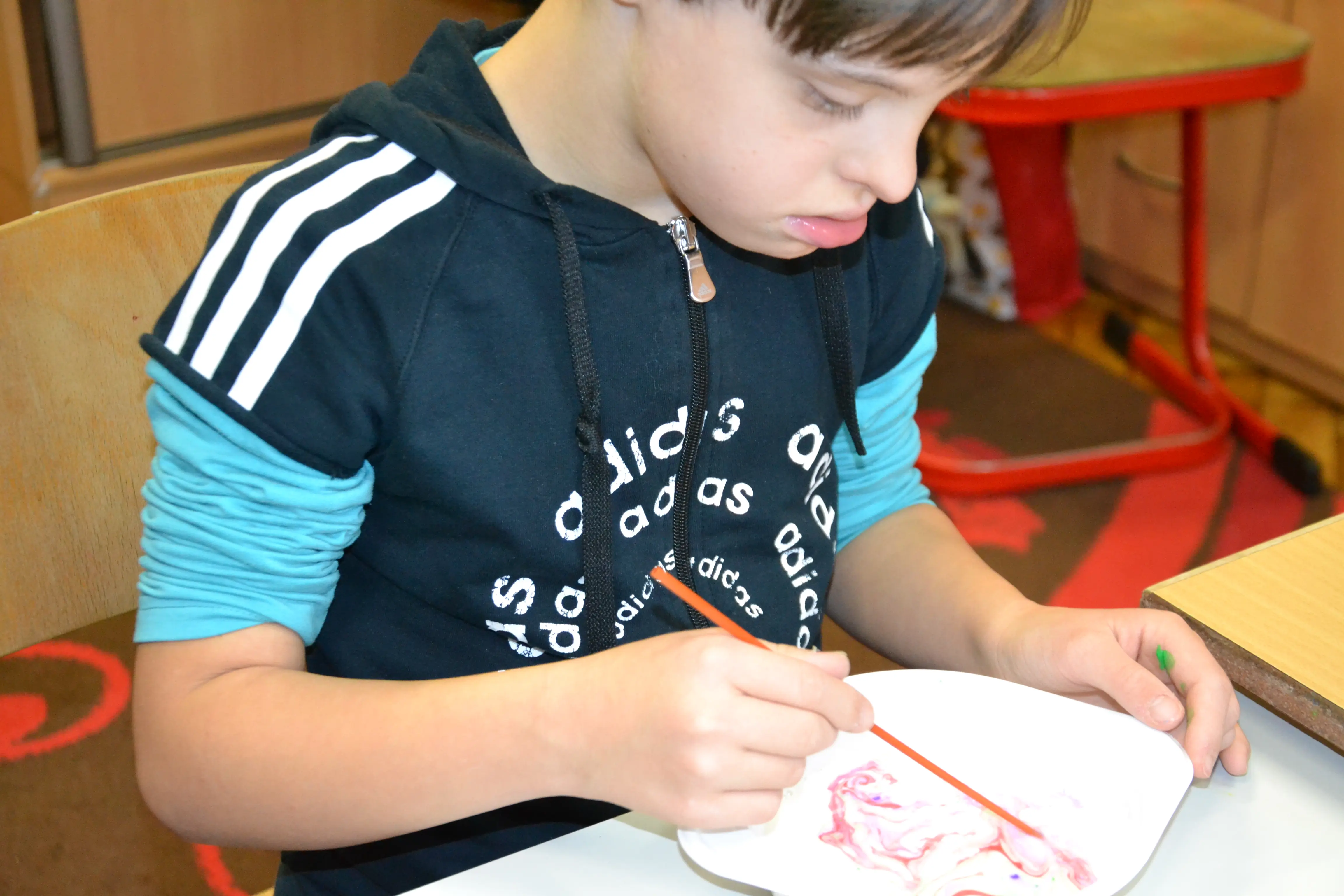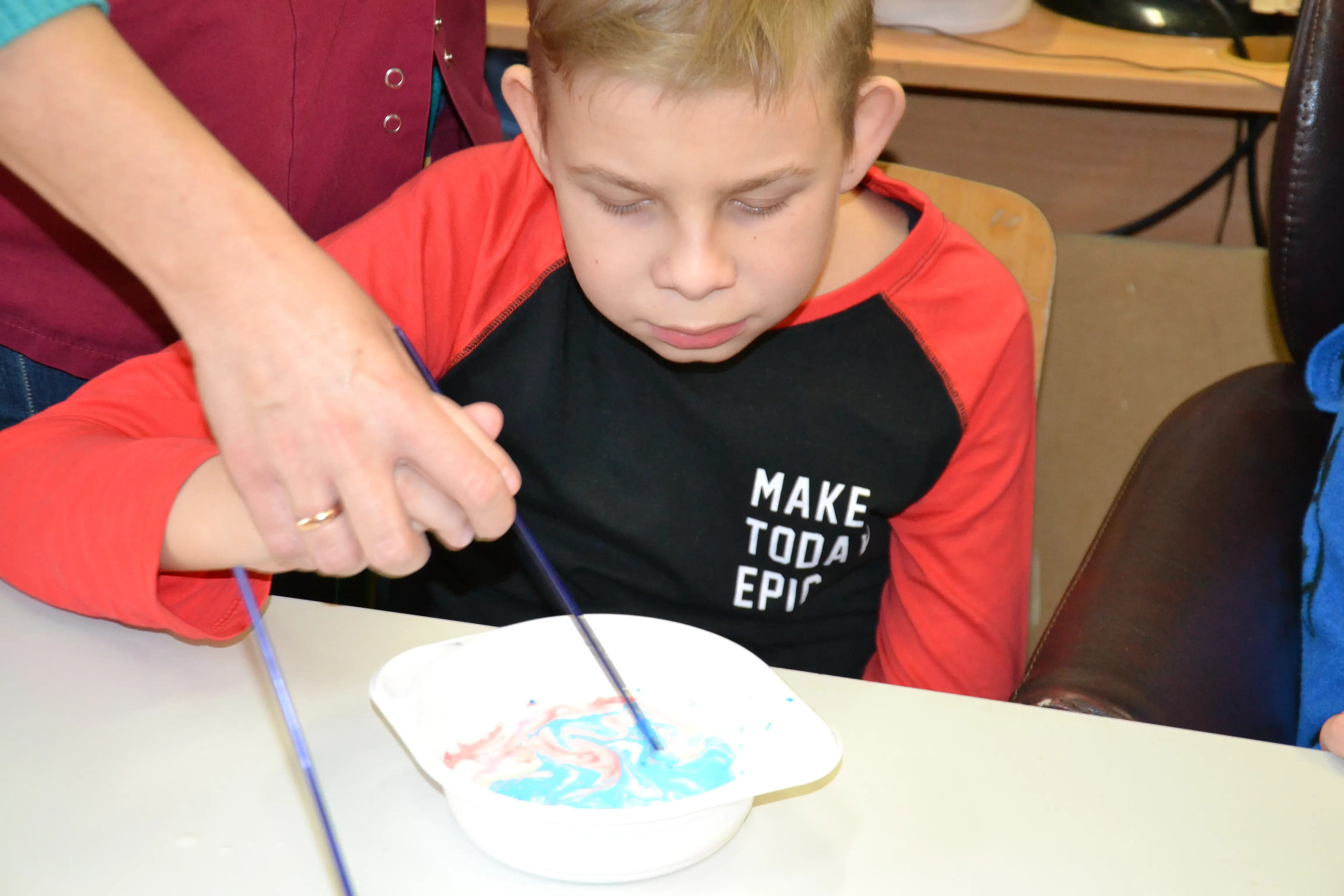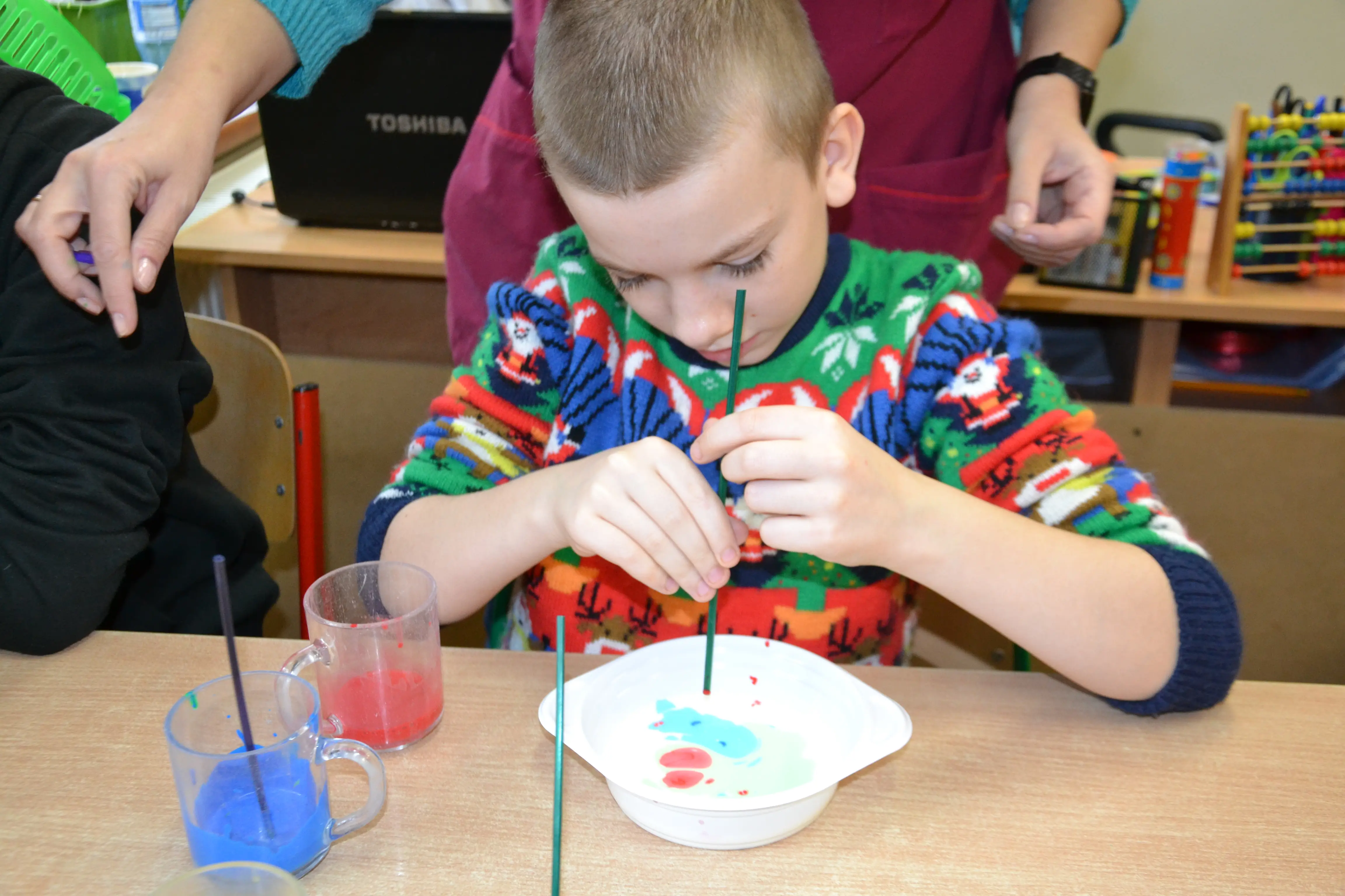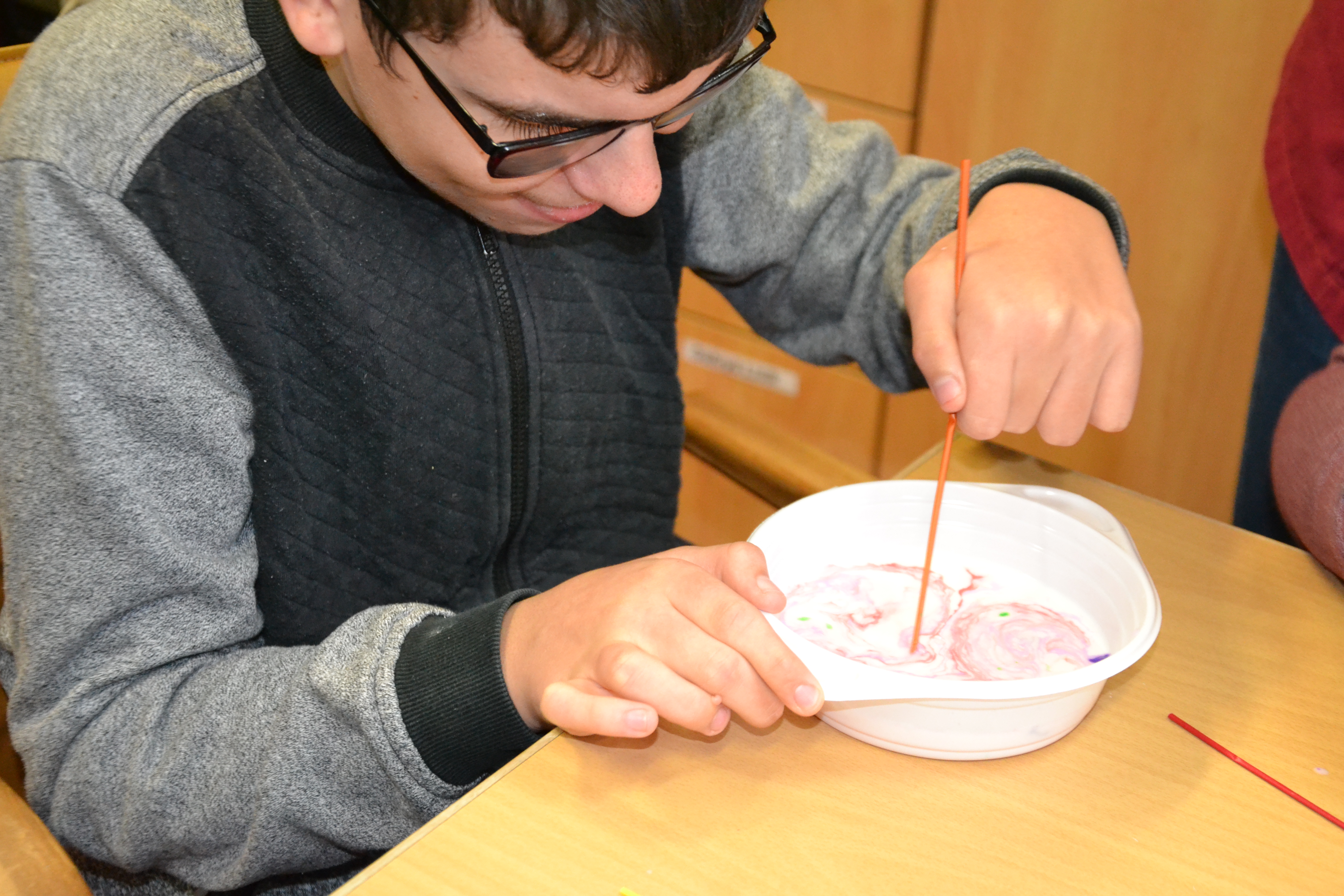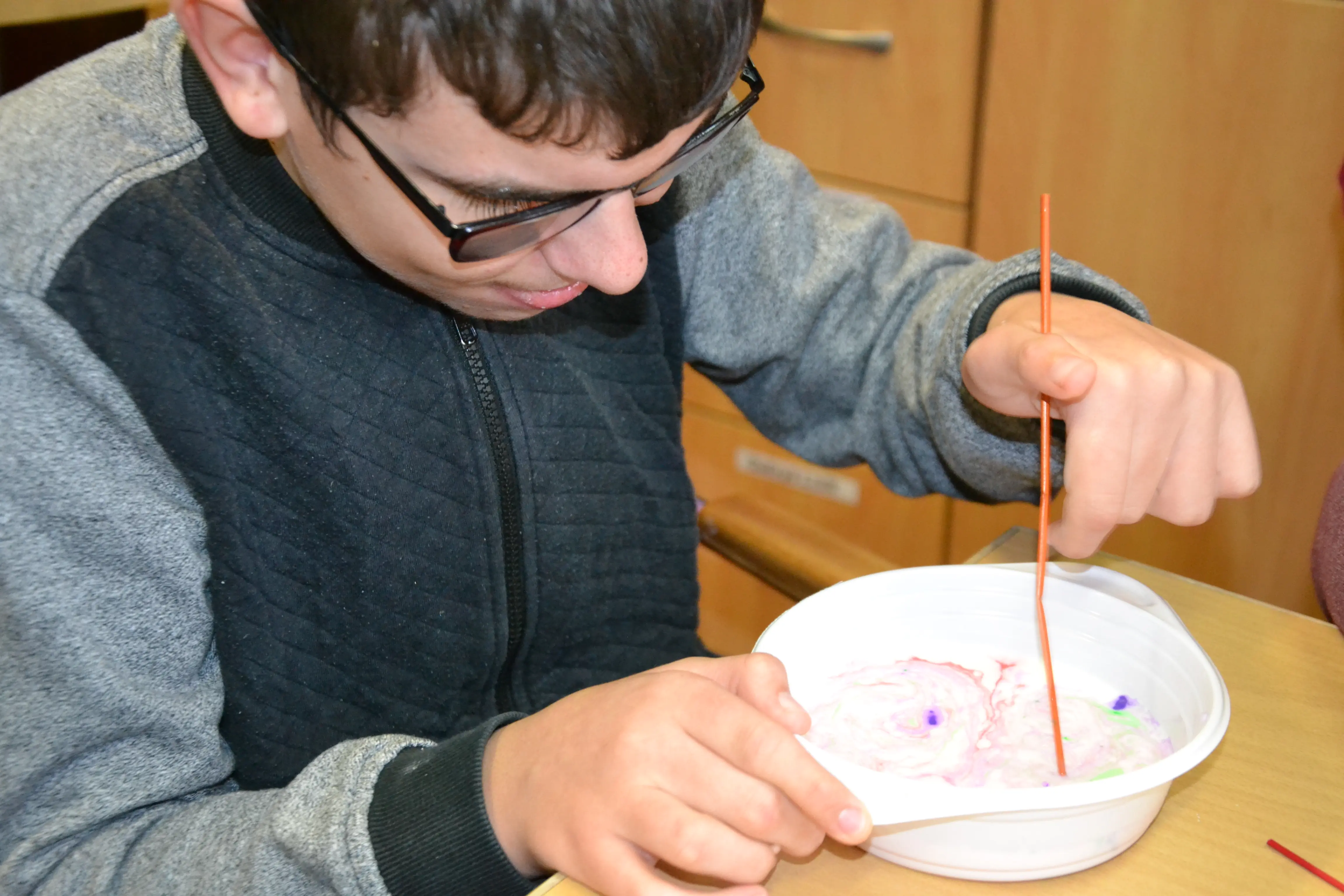 Dzieci z grup przedszkolnych edukacyjnych i rewalidacyjnych w ramach projektu wykonały Obraz Malowany Na Mleku.