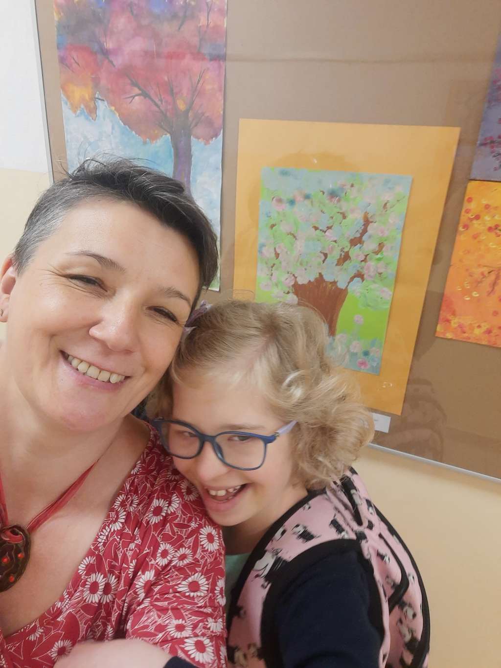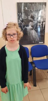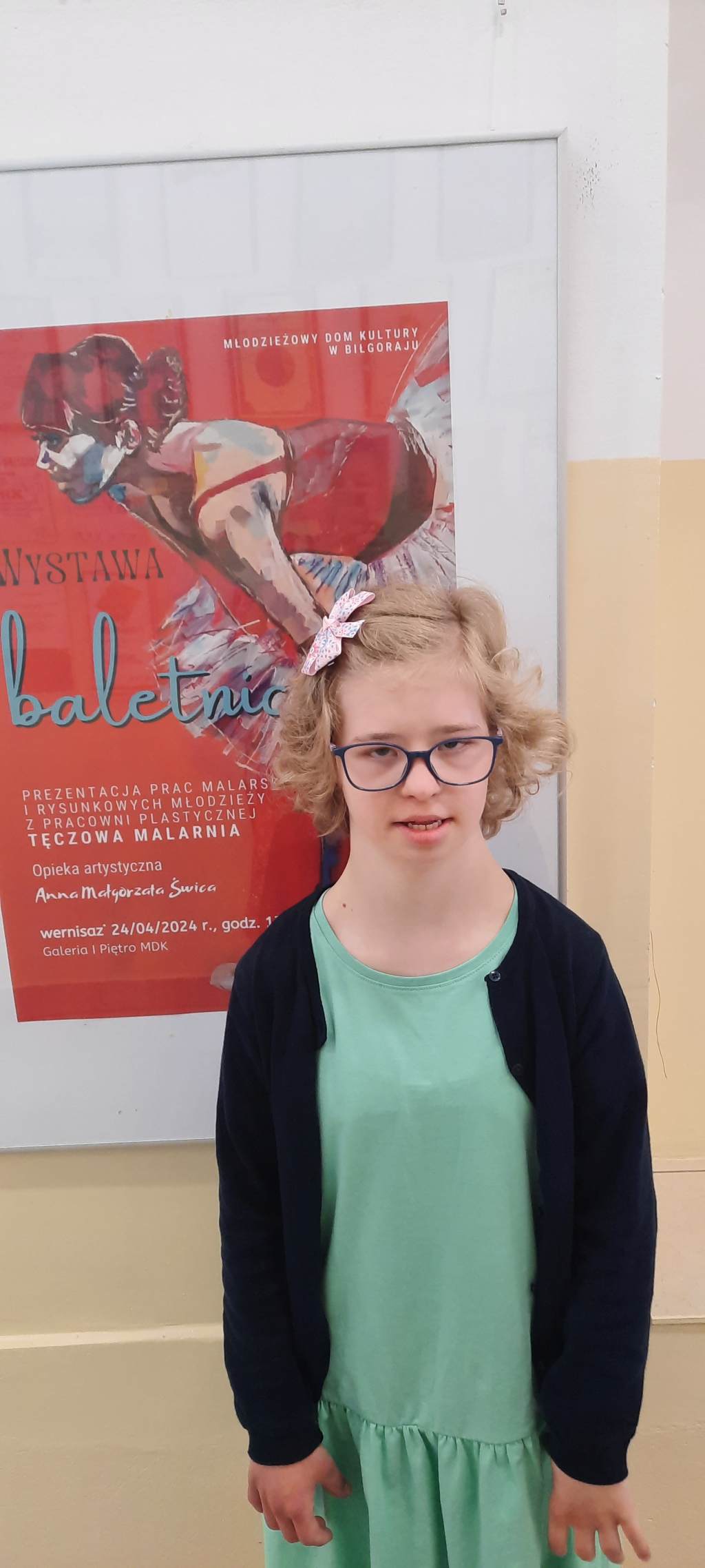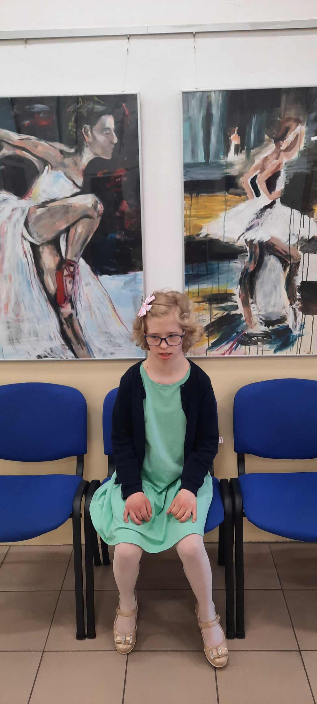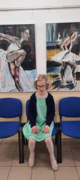 Po zakończeniu części oficjalnej brałyśmy udział w wernisażu prac wykonanych przez młodzież z Pracowni Plastycznej – Tęczowa Malarnia. Tematem przewodnim były „Baletnice”.