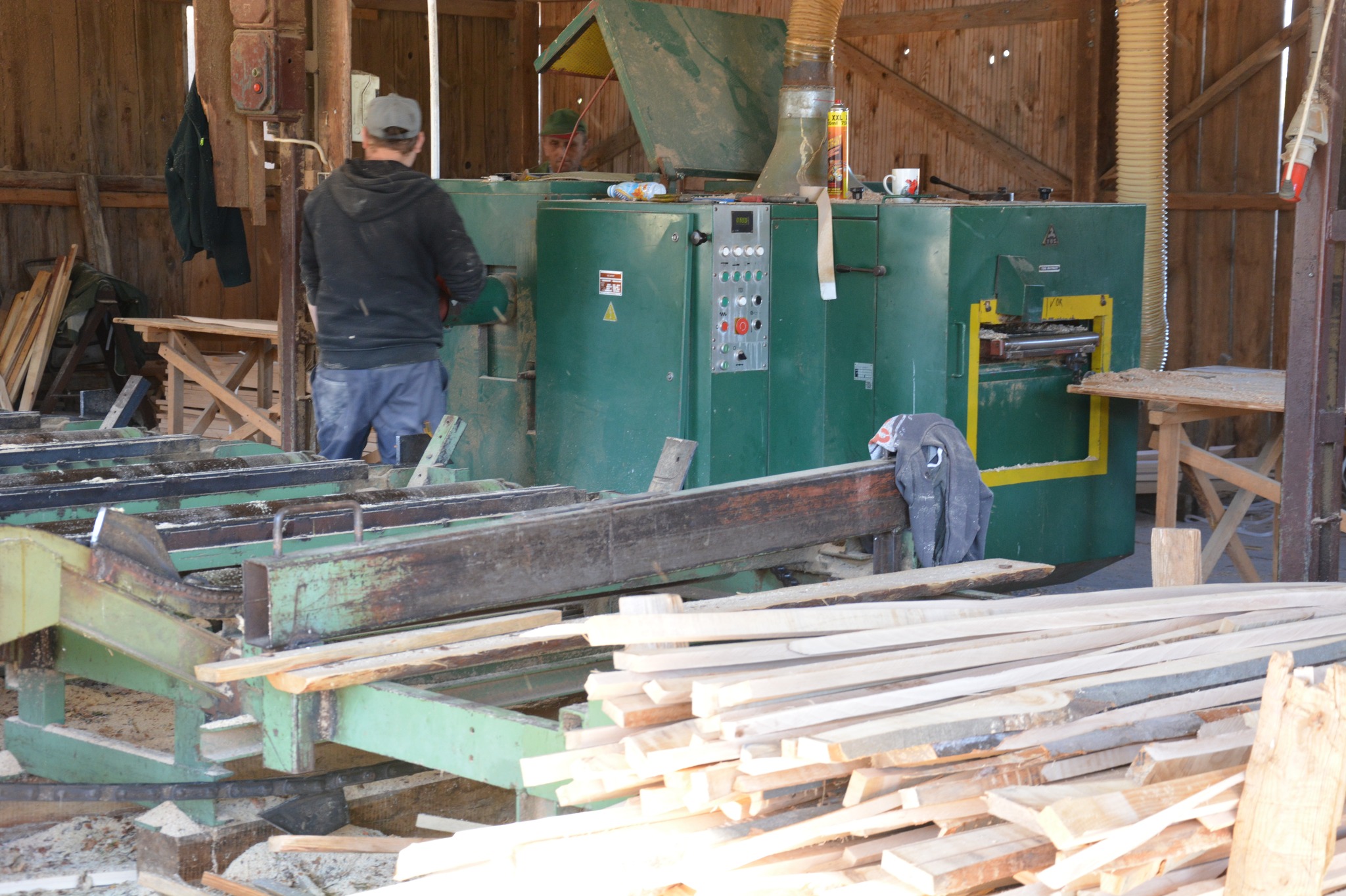 - cięcie wzdłużne i poziome bali drewnianych na deski,