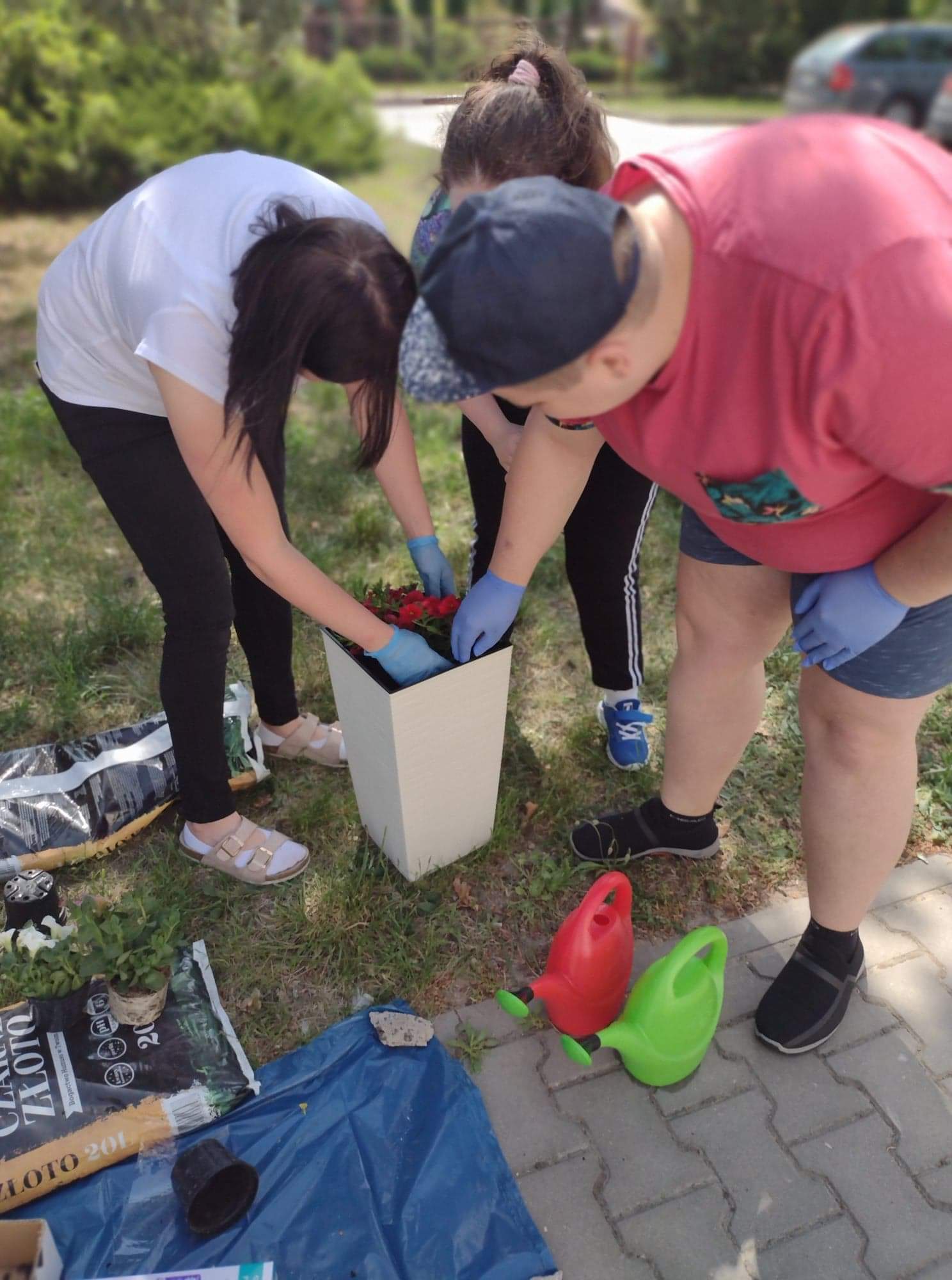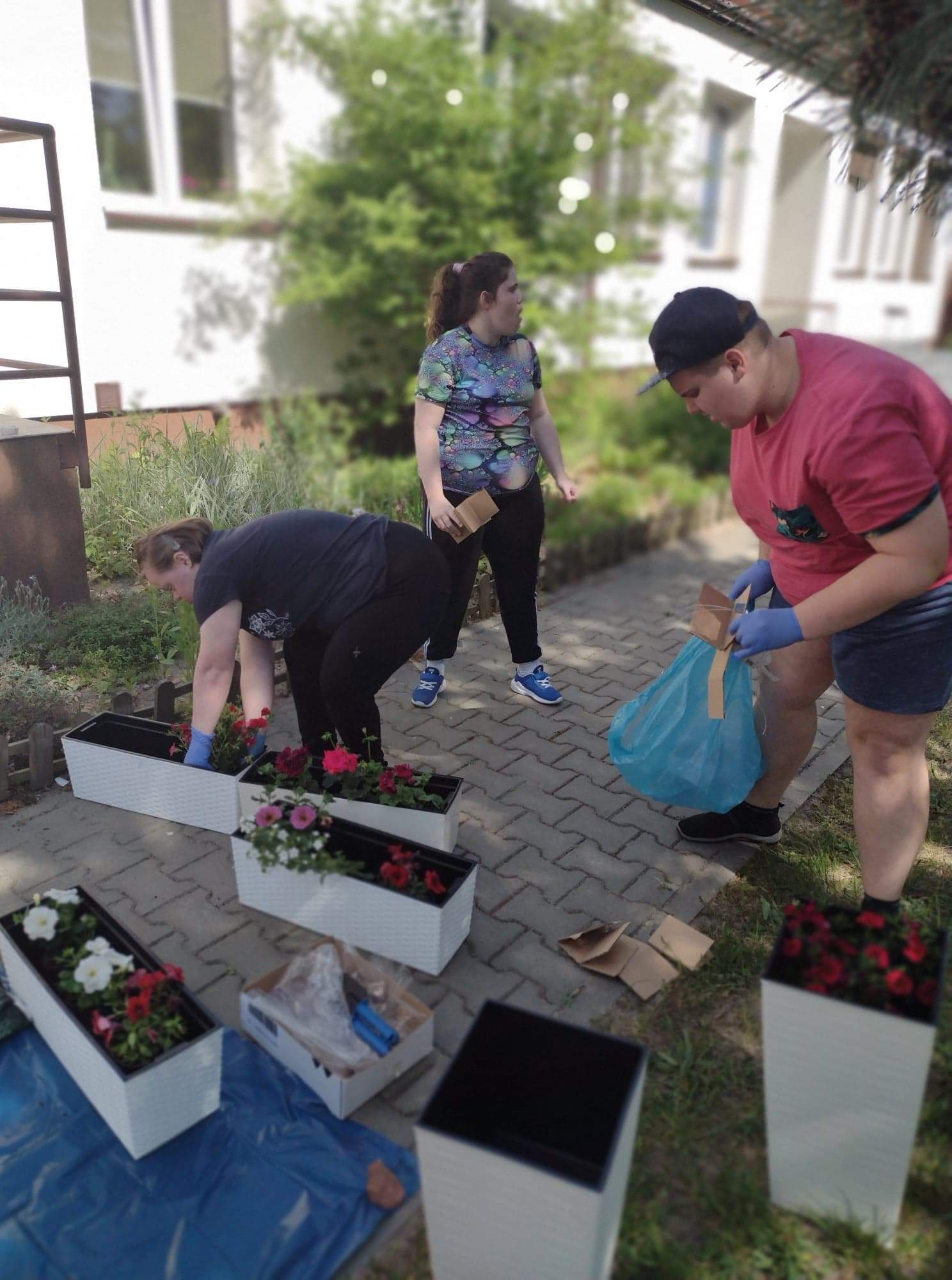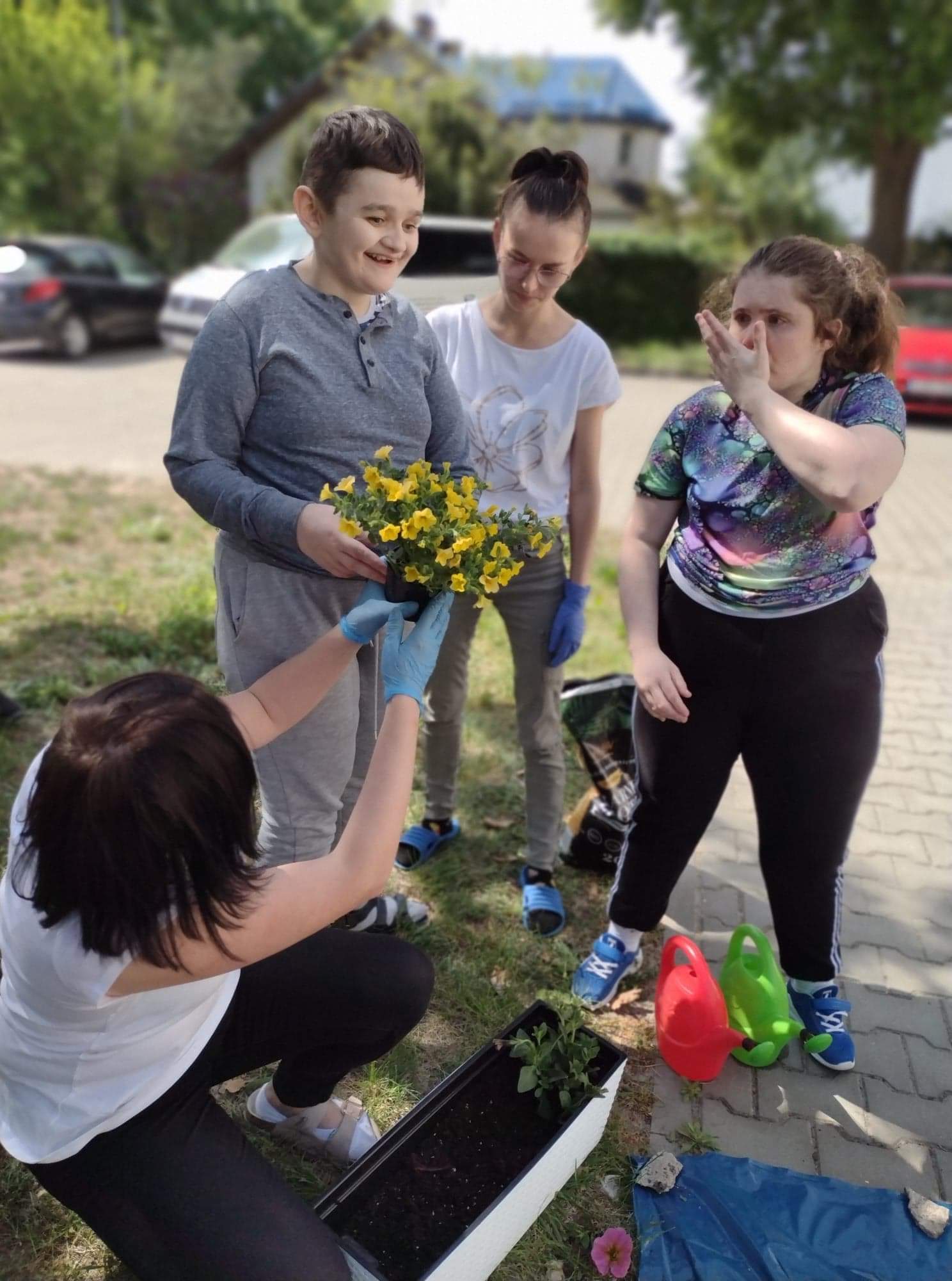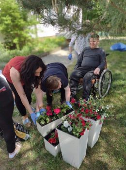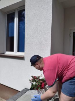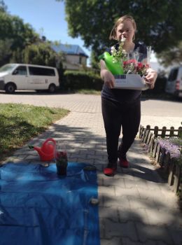 Dzisiejsze przedpołudnie spędziliśmy bardzo aktywnie - posadziliśmy kolorowe kwiaty, które będą cieszyć nasze oczy przy wejściu do budynku Świetlicy.