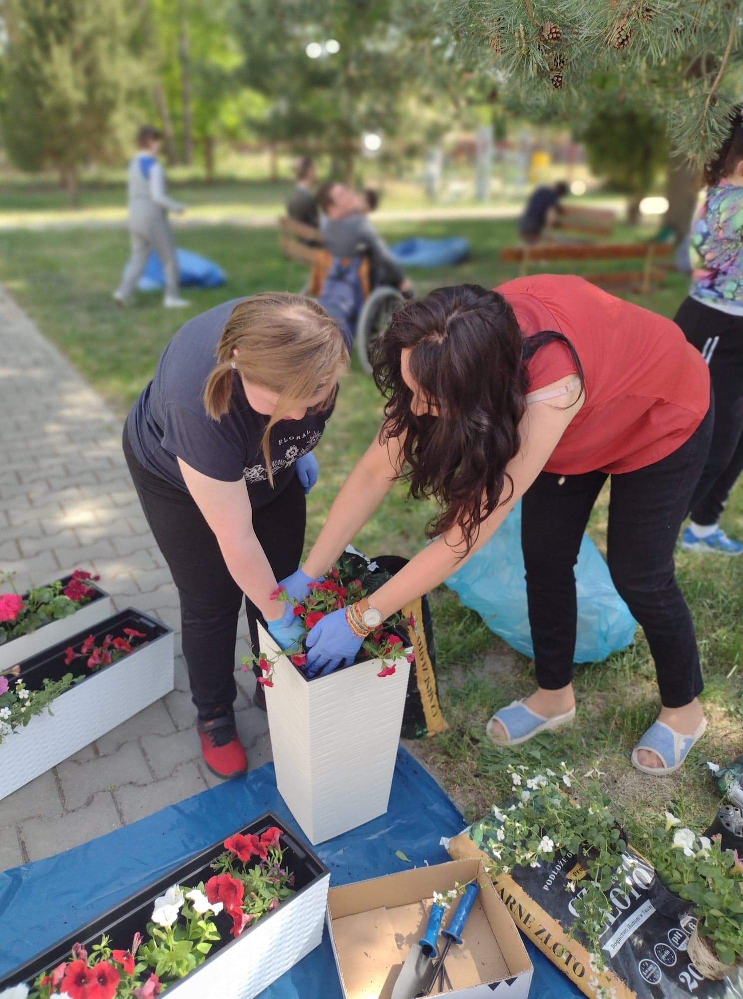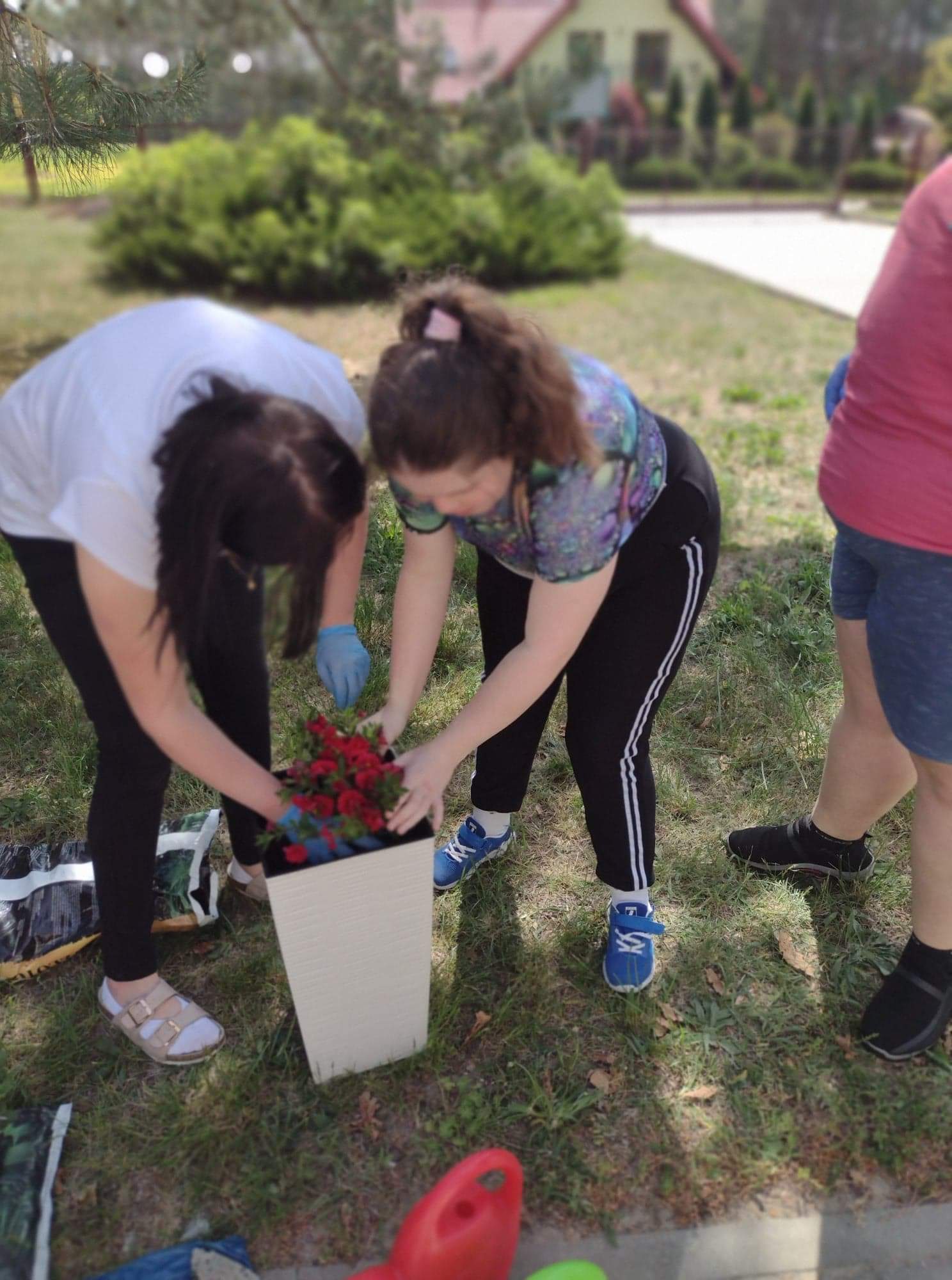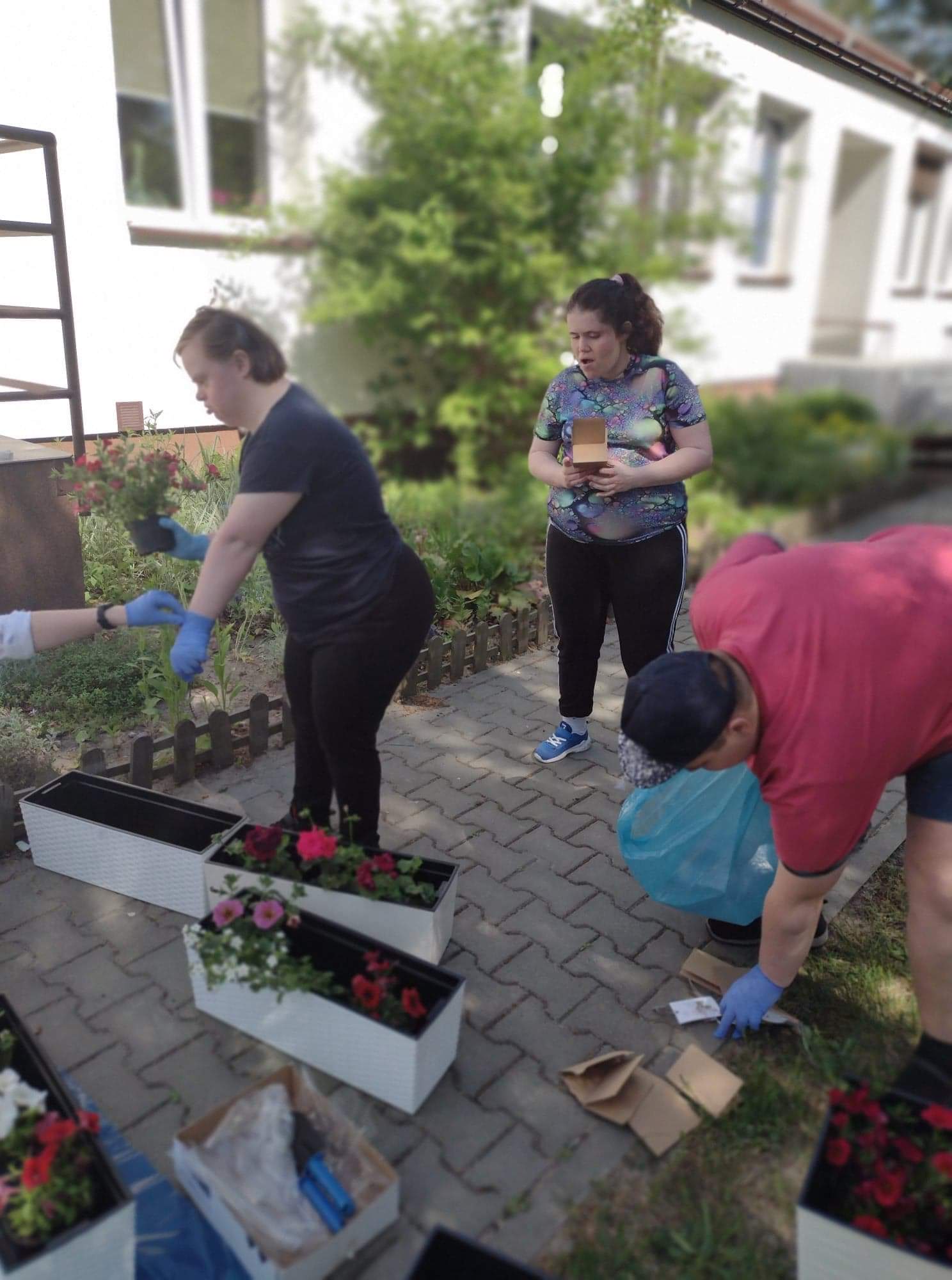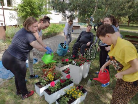 Dzisiejsze przedpołudnie spędziliśmy bardzo aktywnie - posadziliśmy kolorowe kwiaty, które będą cieszyć nasze oczy przy wejściu do budynku Świetlicy.