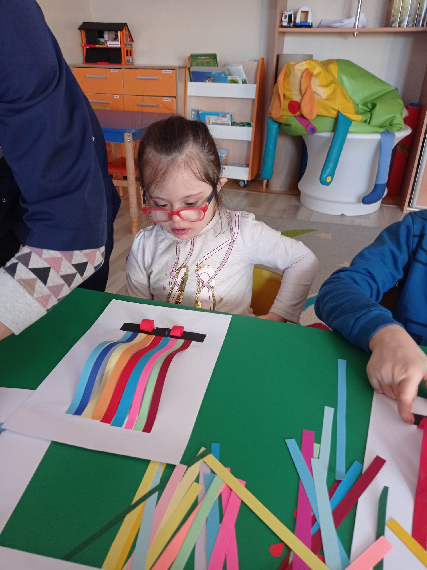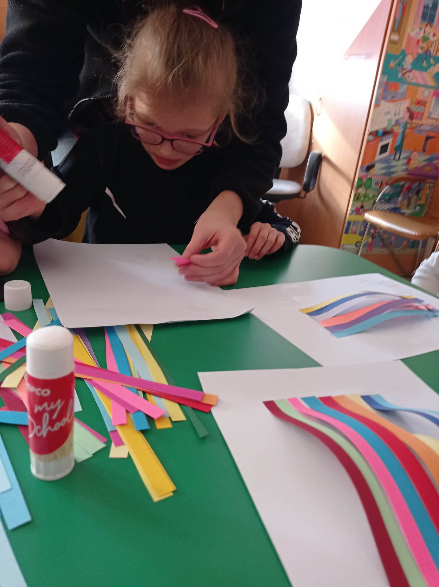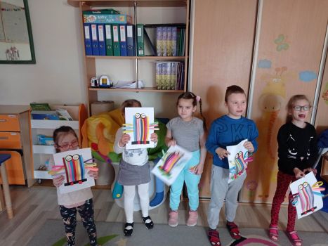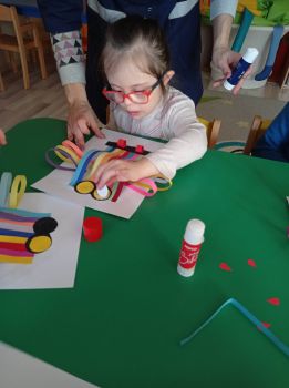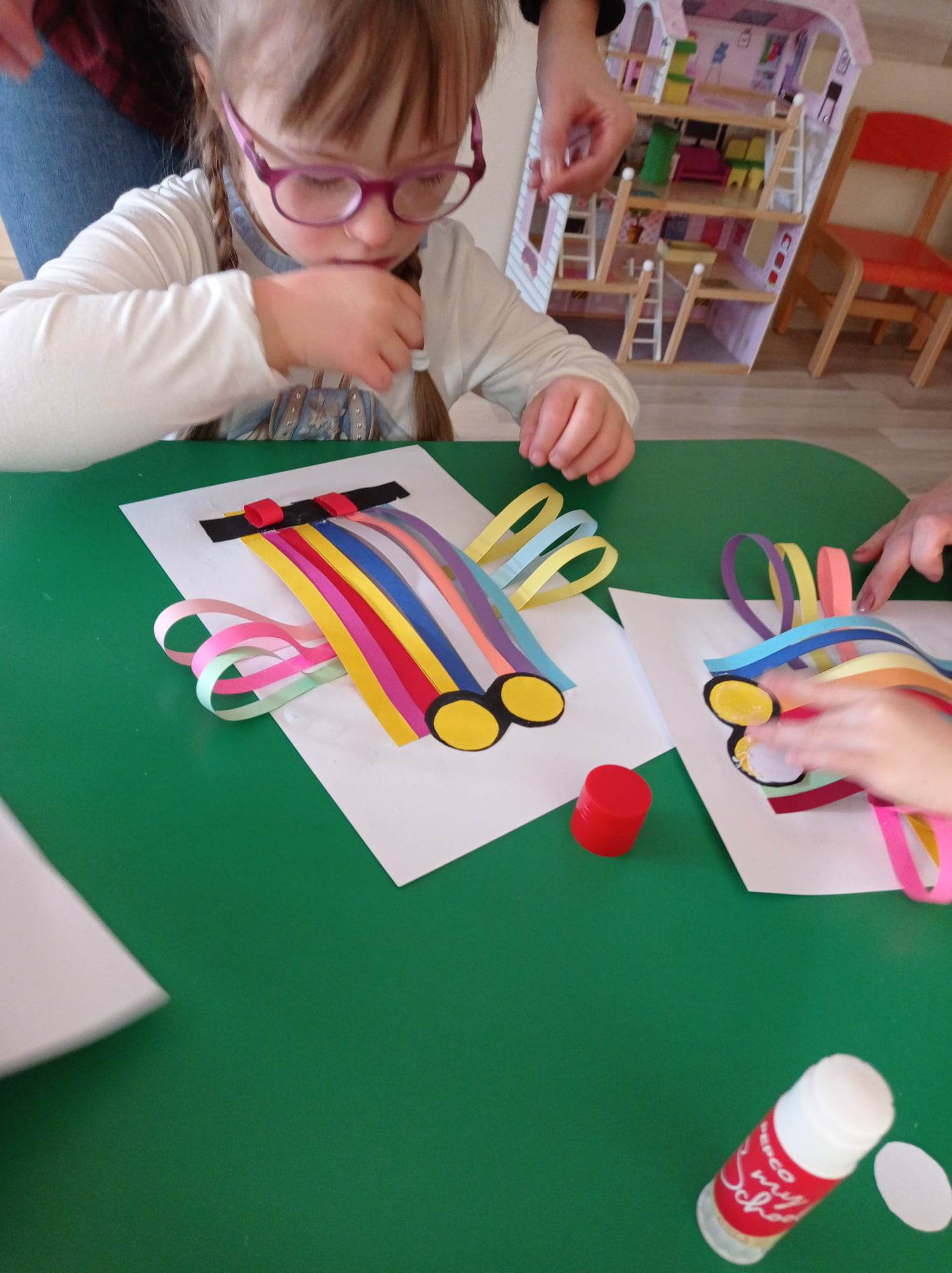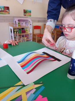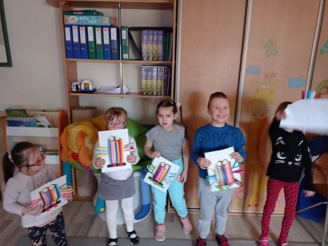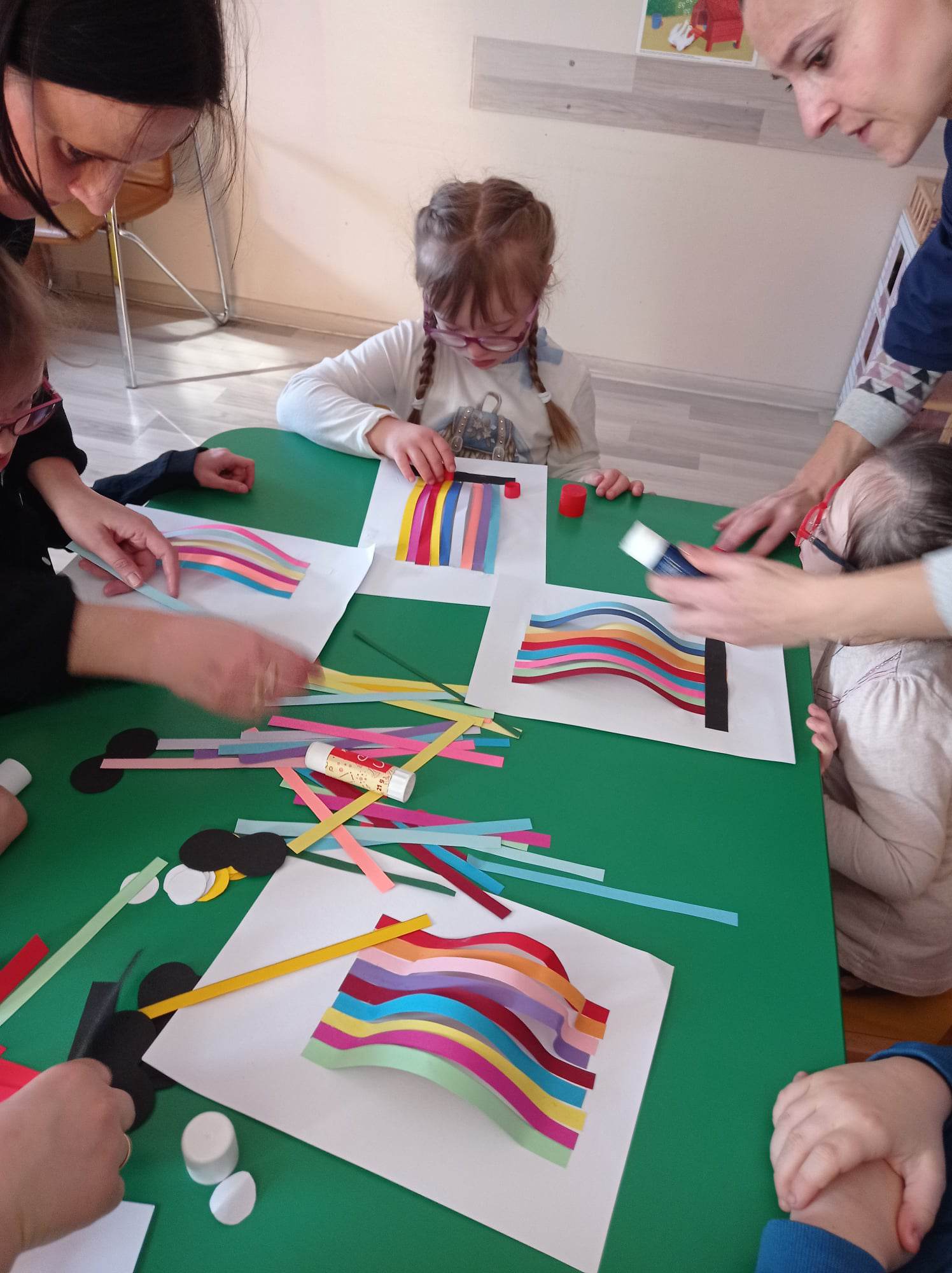 Dzieci wykonały sowy z kolorowych pasków.