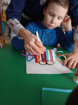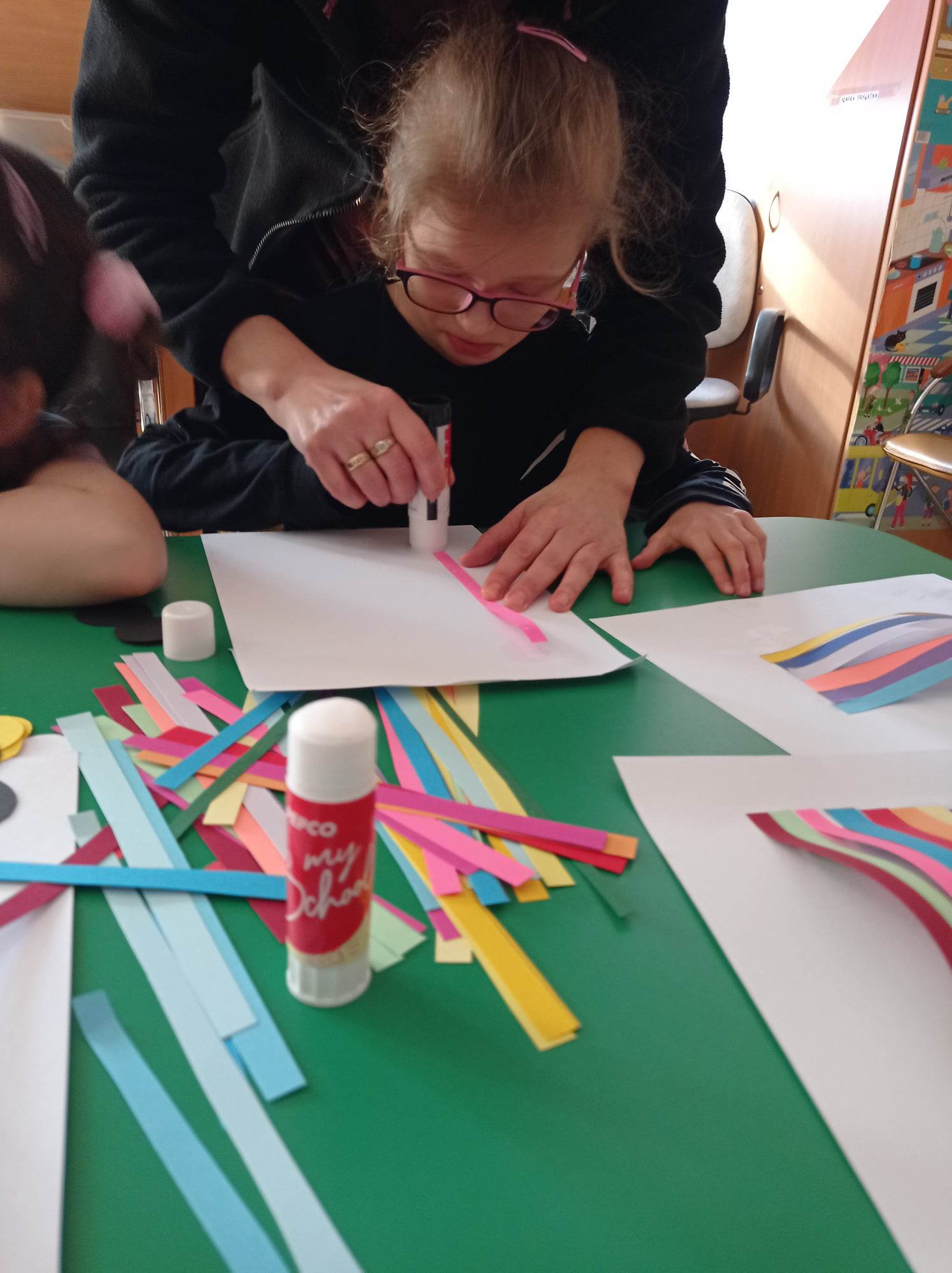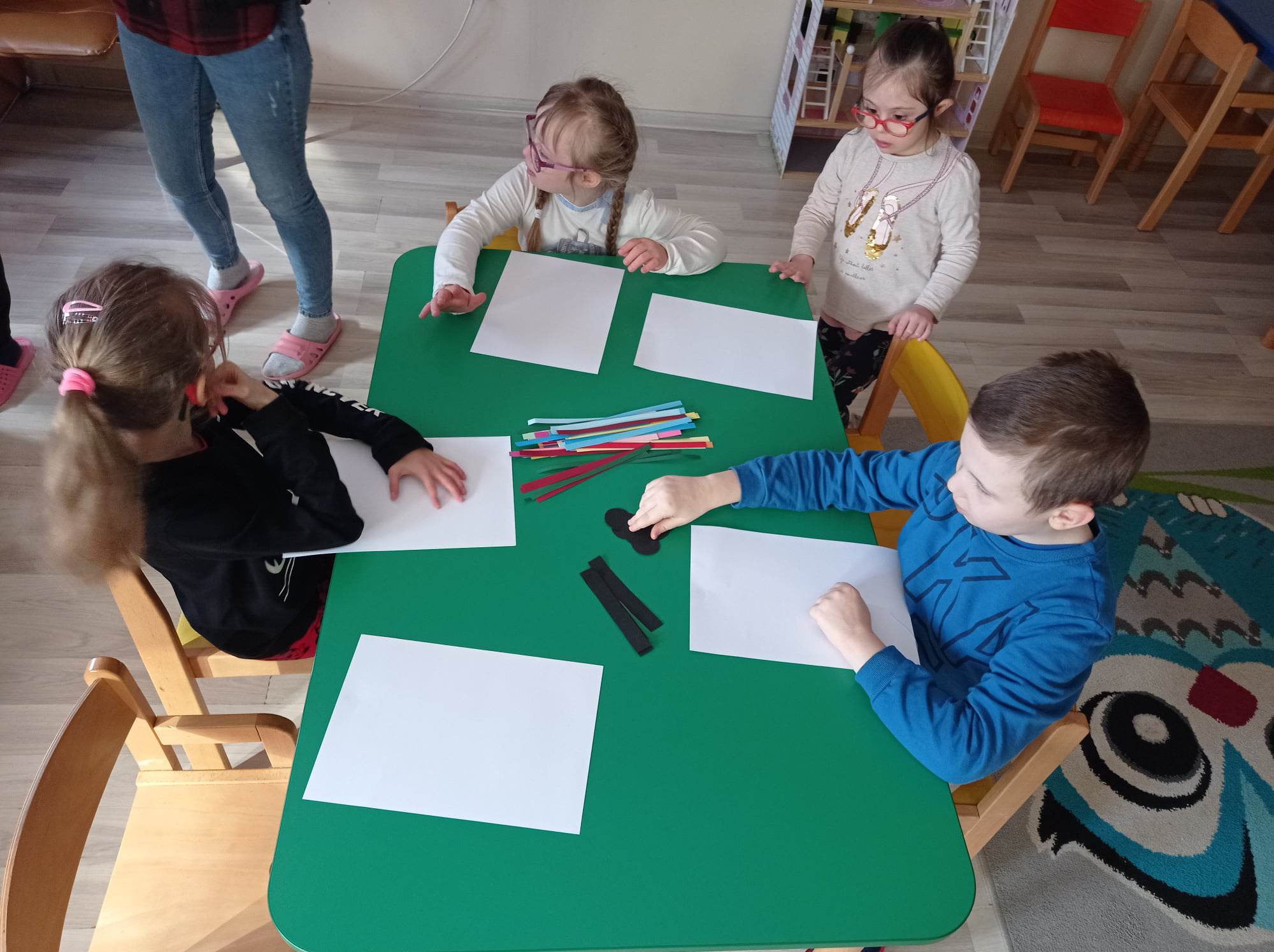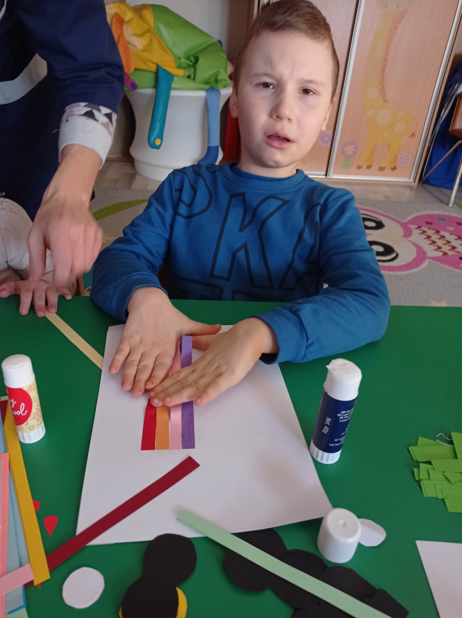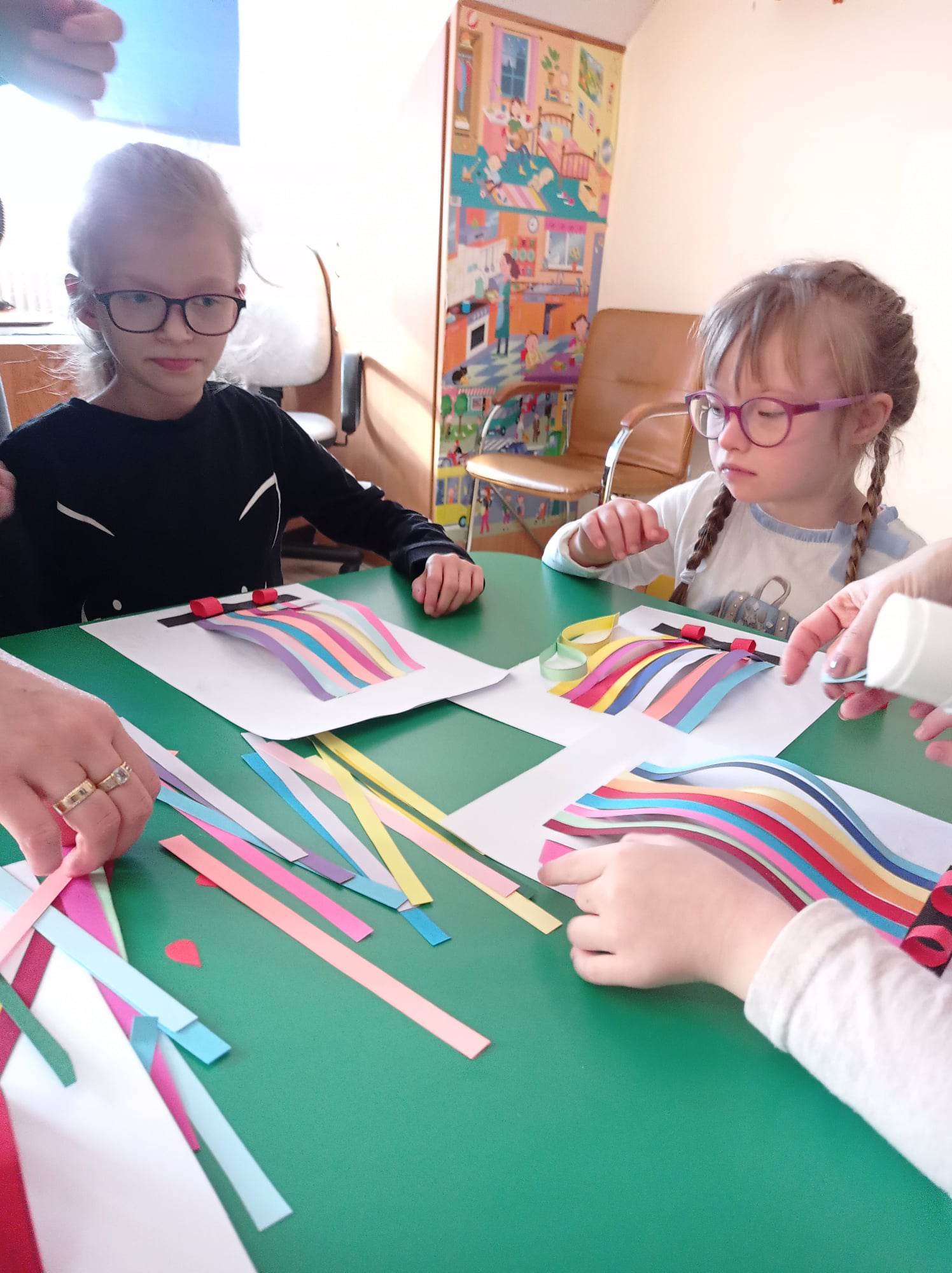 Dzieci wykonały sowy z kolorowych pasków.