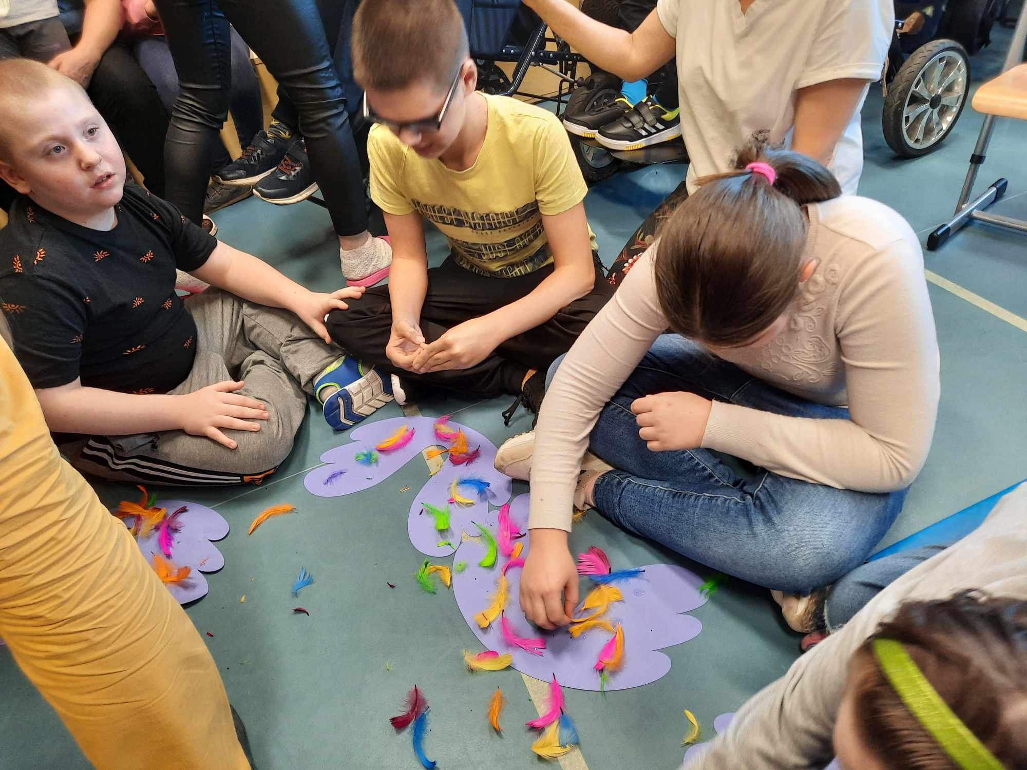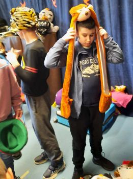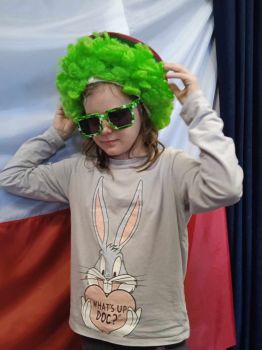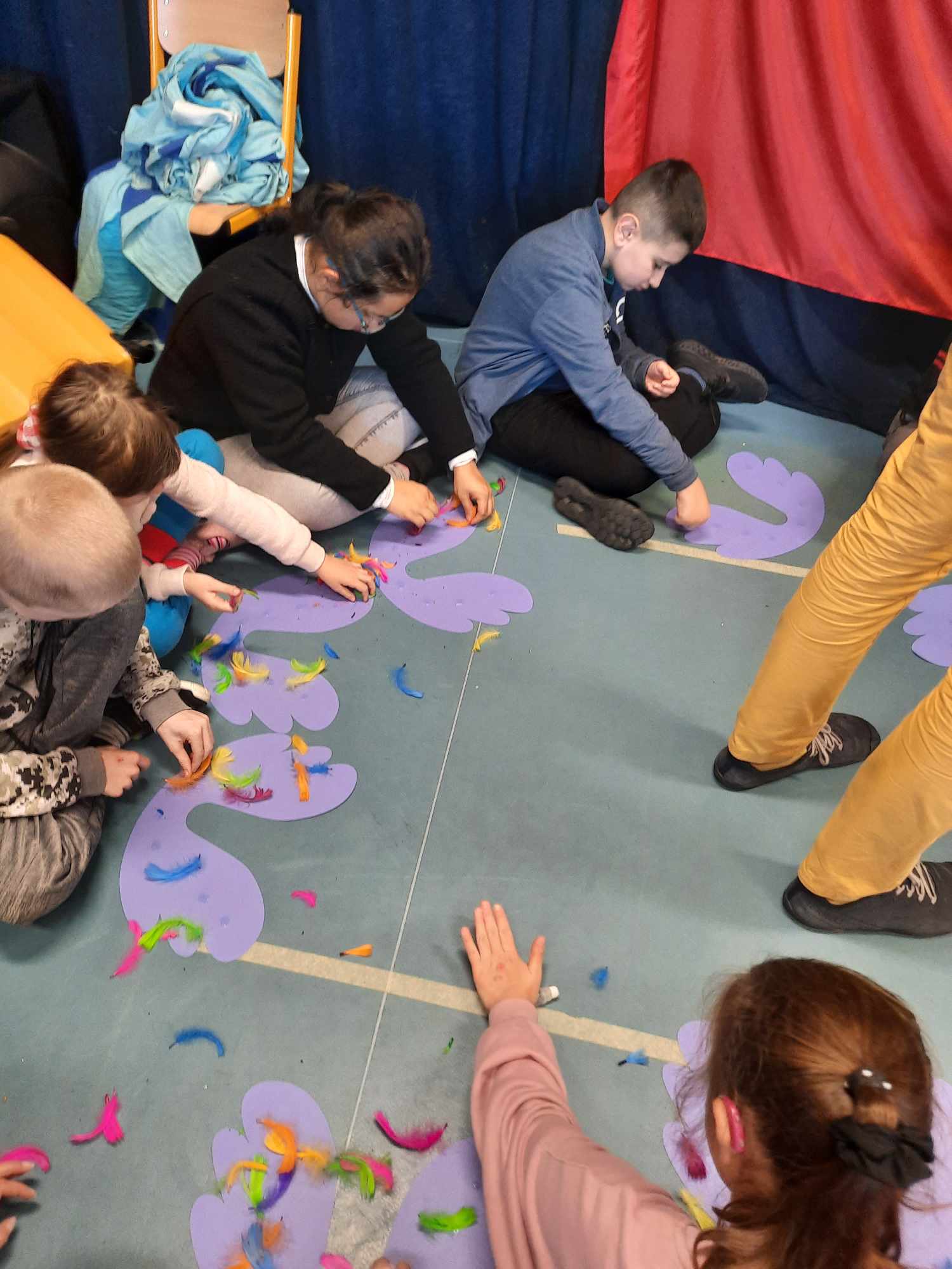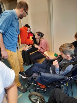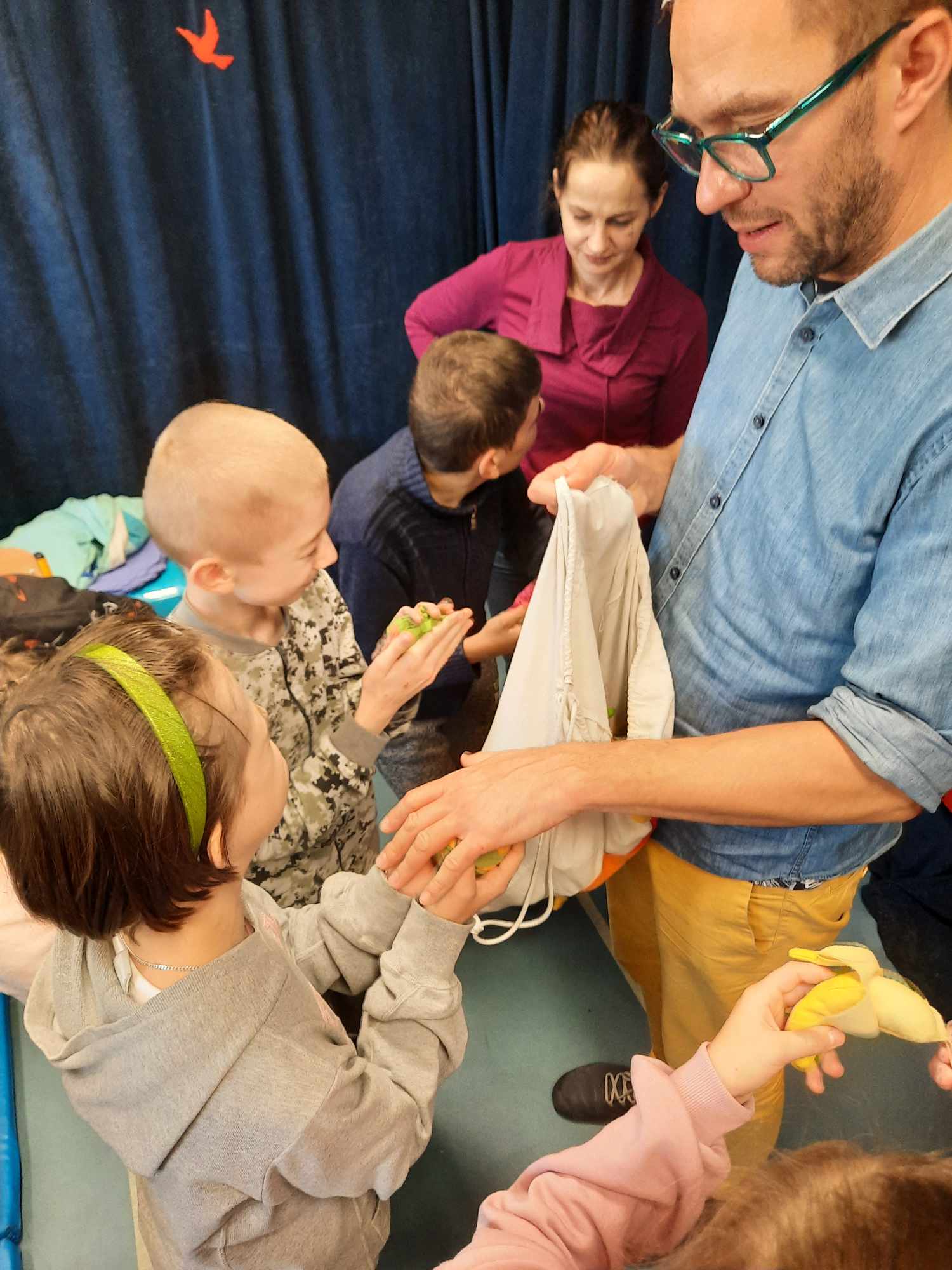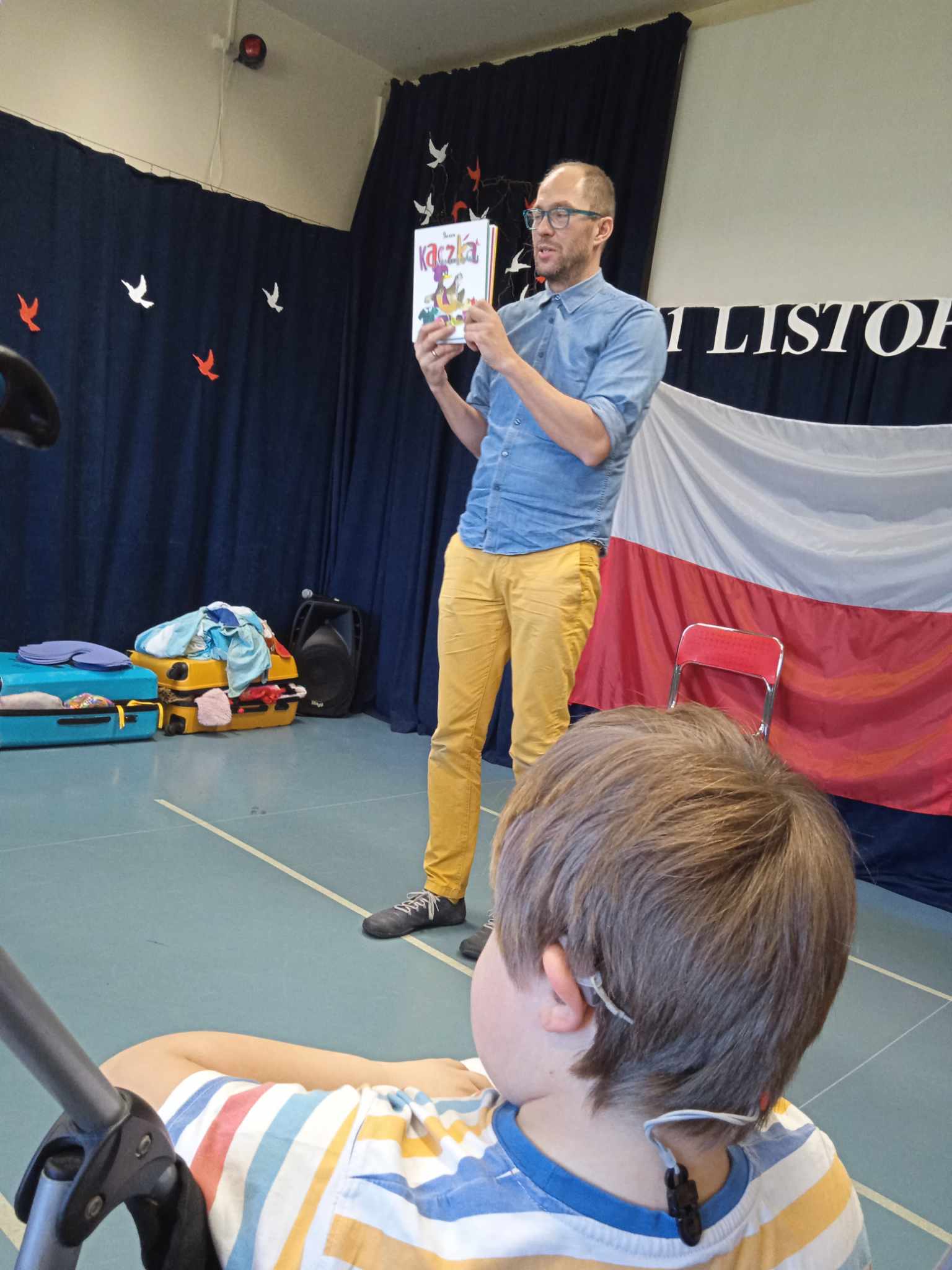 Spotkanie autorskie było pełne wrażeń, radości i zabaw. Fruwały piórka i balony. Było bardzo kolorowo bo modowo. Dzieci karmiły kurę samymi zdrowymi produktami - warzywami i owocami.