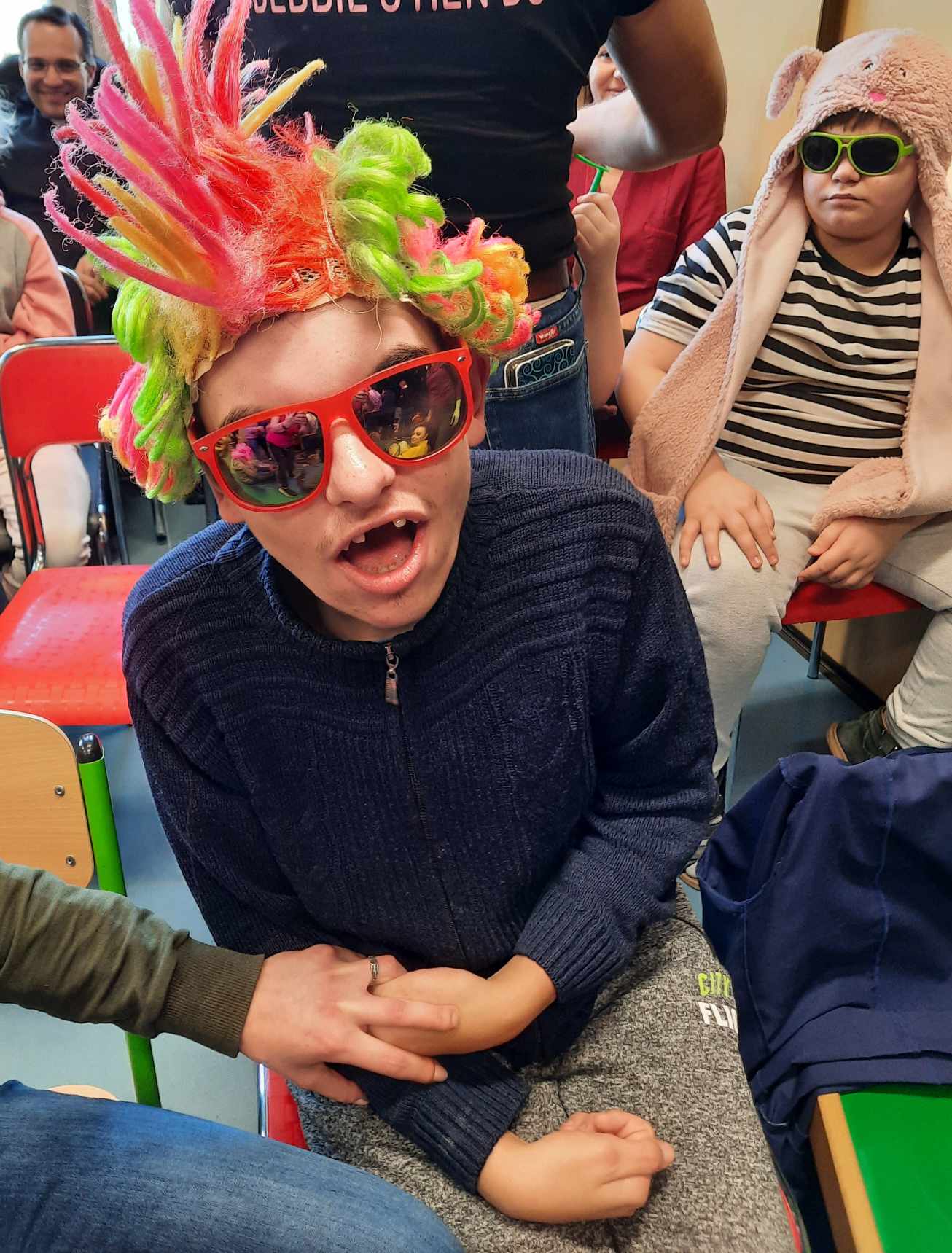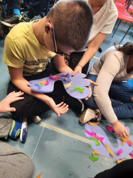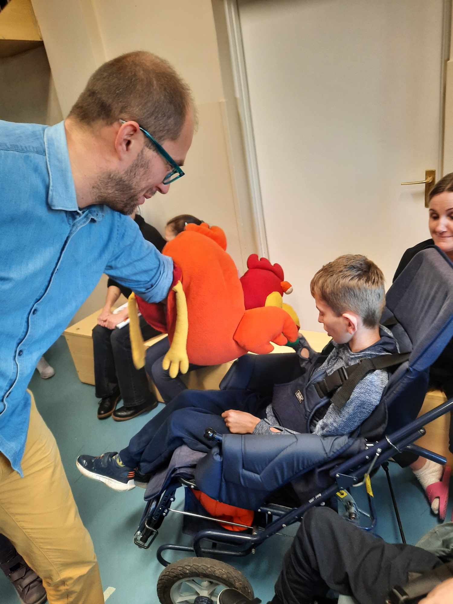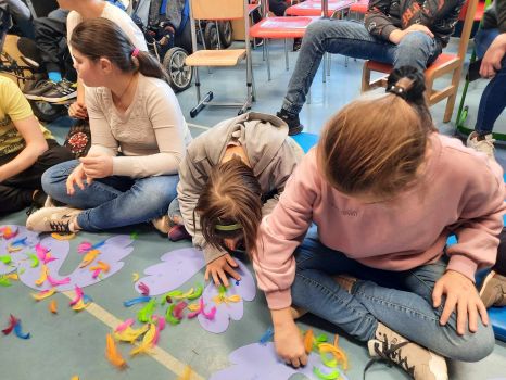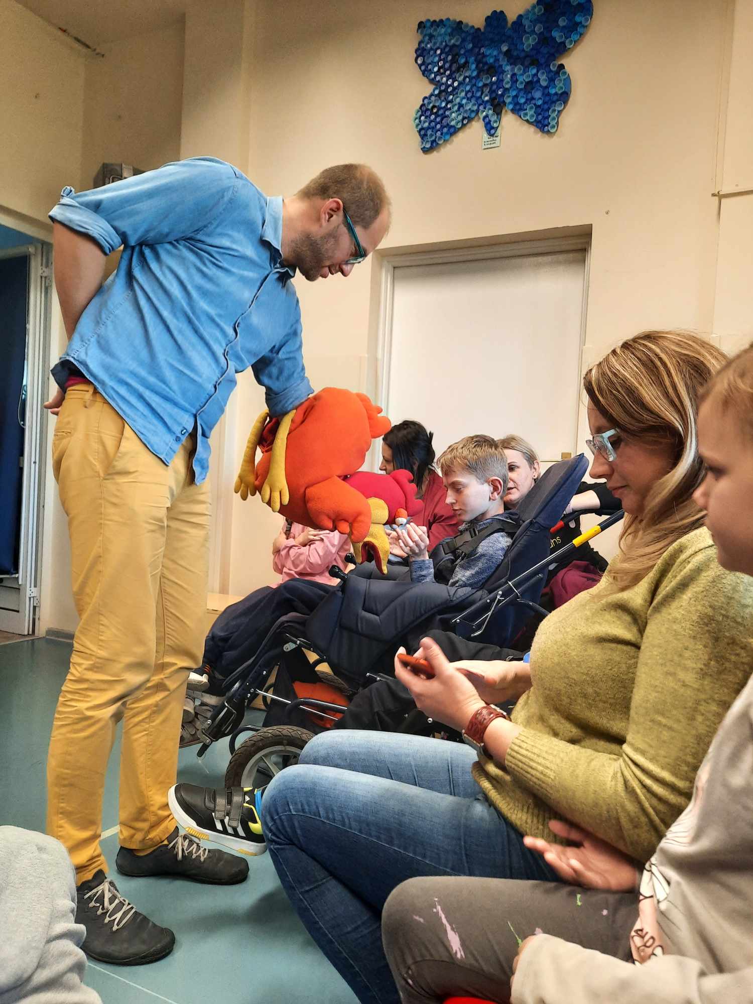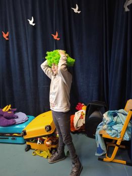 Spotkanie autorskie było pełne wrażeń, radości i zabaw. Fruwały piórka i balony. Było bardzo kolorowo bo modowo. Dzieci karmiły kurę samymi zdrowymi produktami - warzywami i owocami.