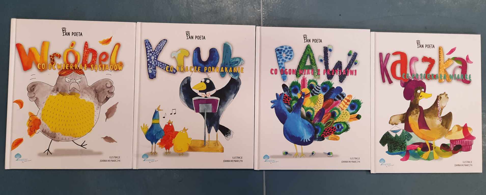 "Kura, co tyła na dziecie", "Wróbel, co oćwierkał sąsiadów", "Kaczka co przebrała miarkę", "Paw, co ogon miał z przyjaźni", "Sowa, co bałagan ma w porządku".
