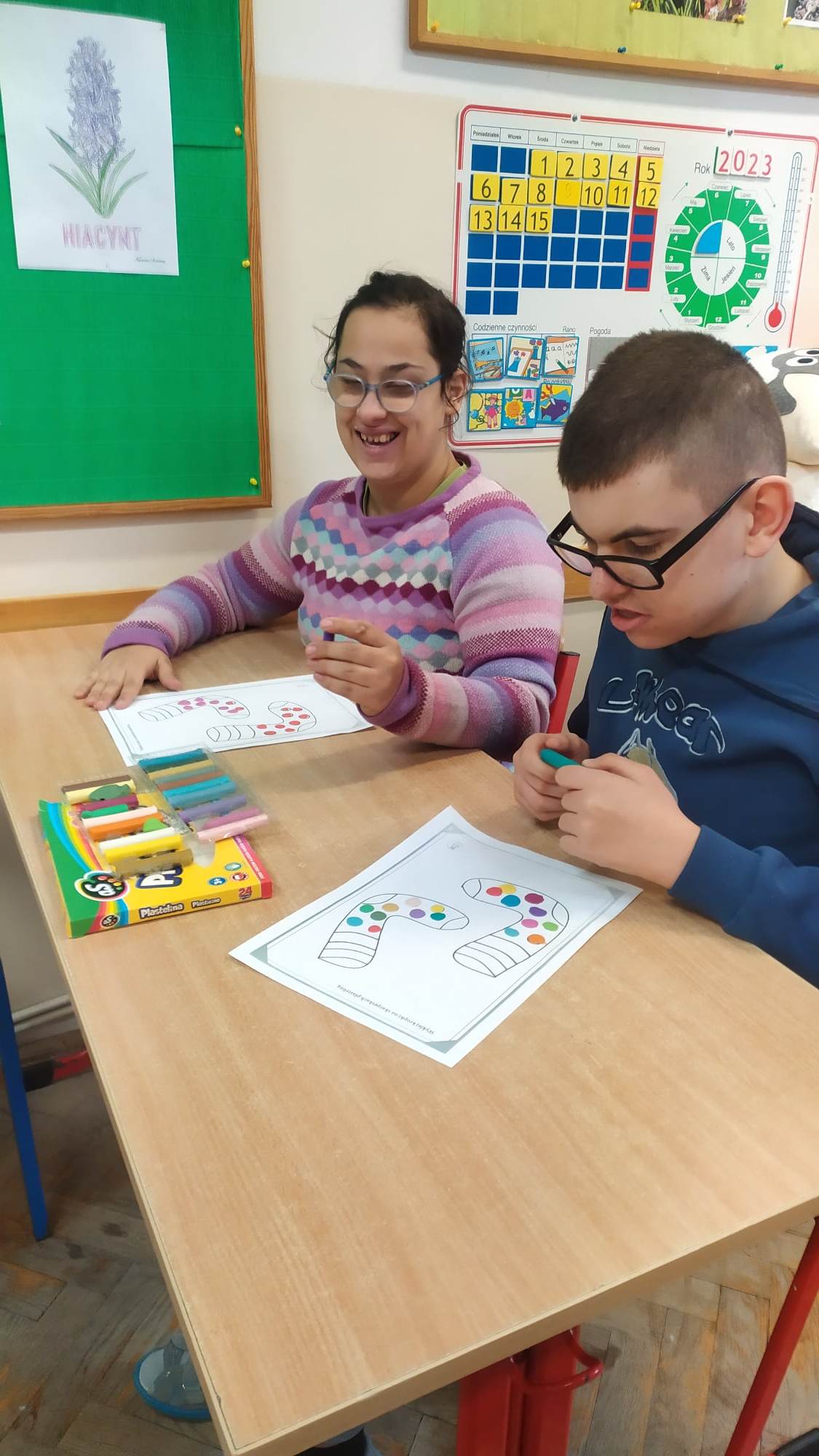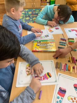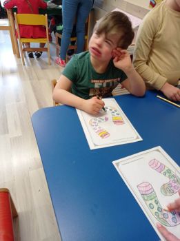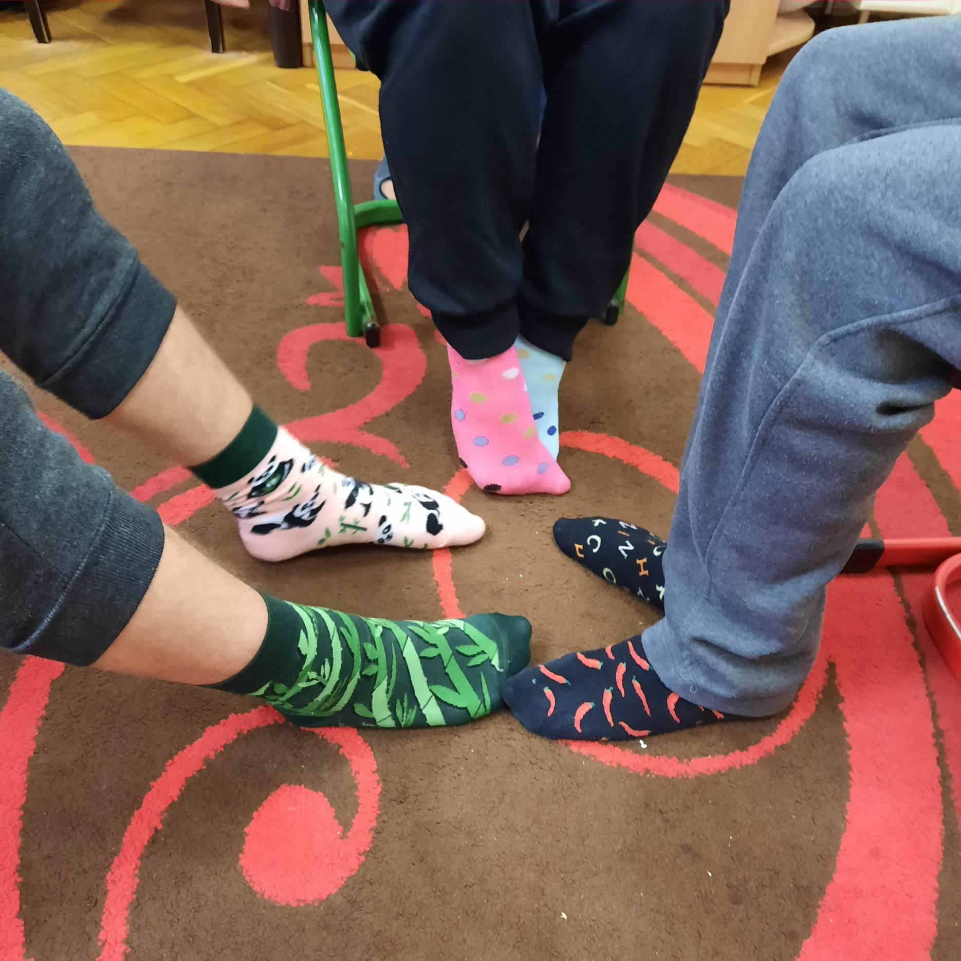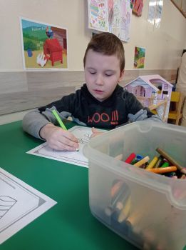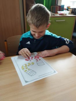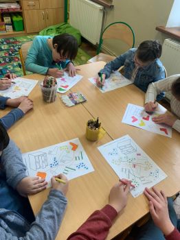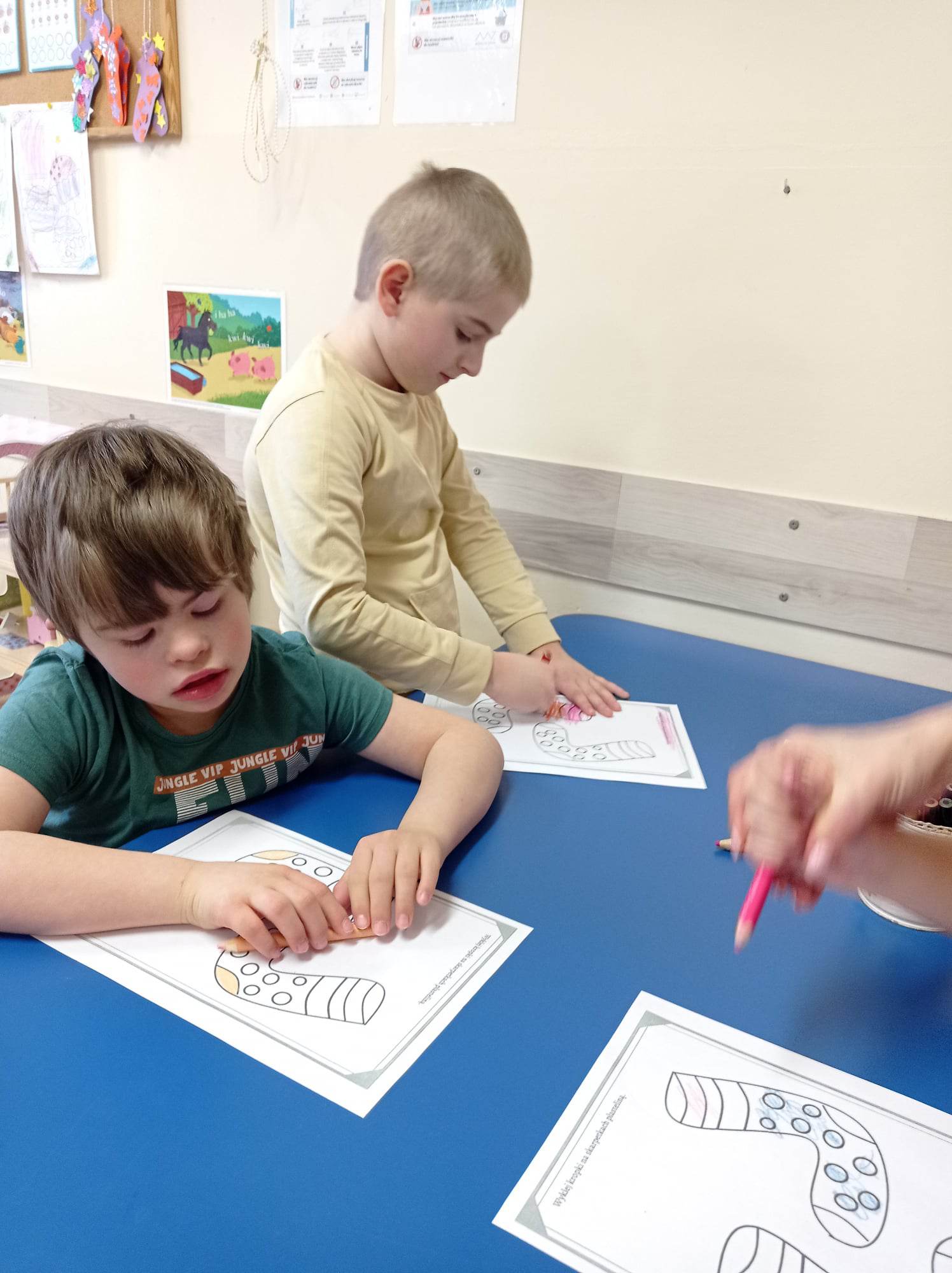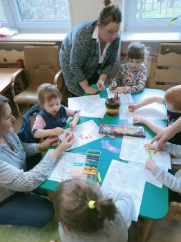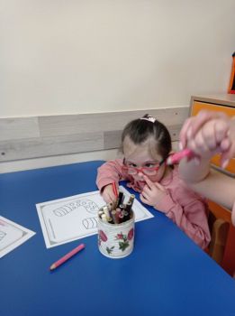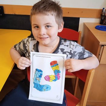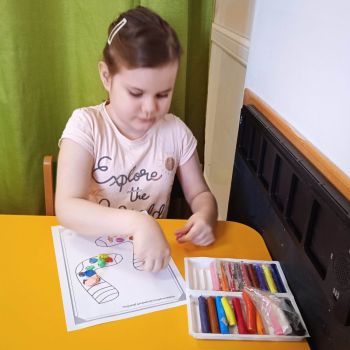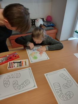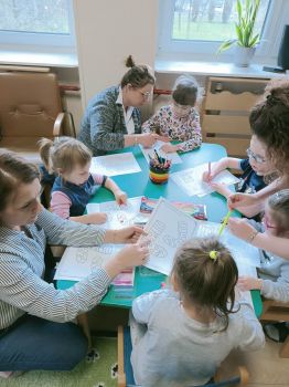 Dzieci pokolorowały skarpety nie do pary i zaprezentowały w ramach solidarności swoje skarpety nie do pary.