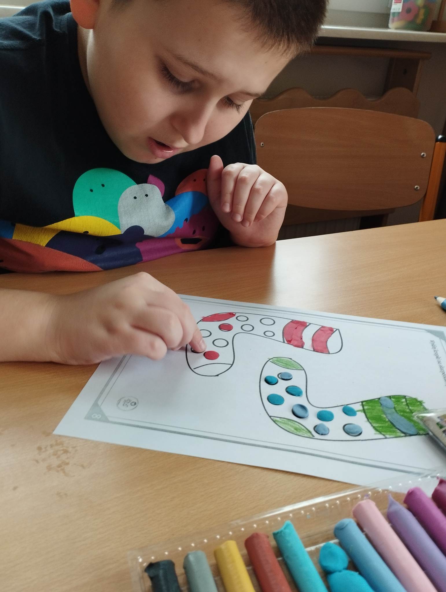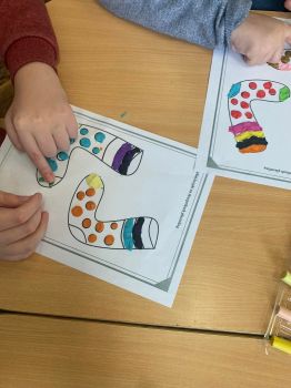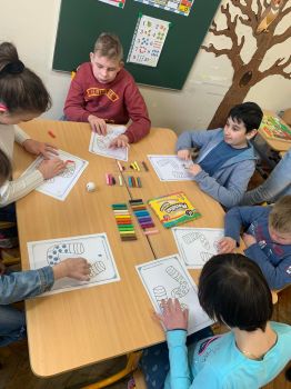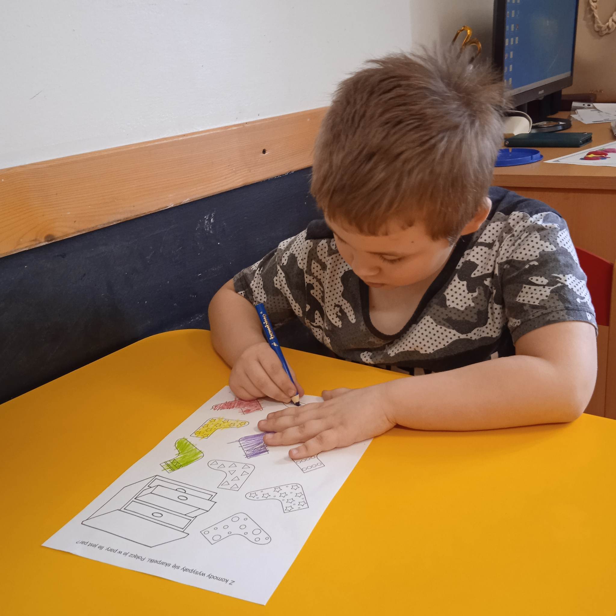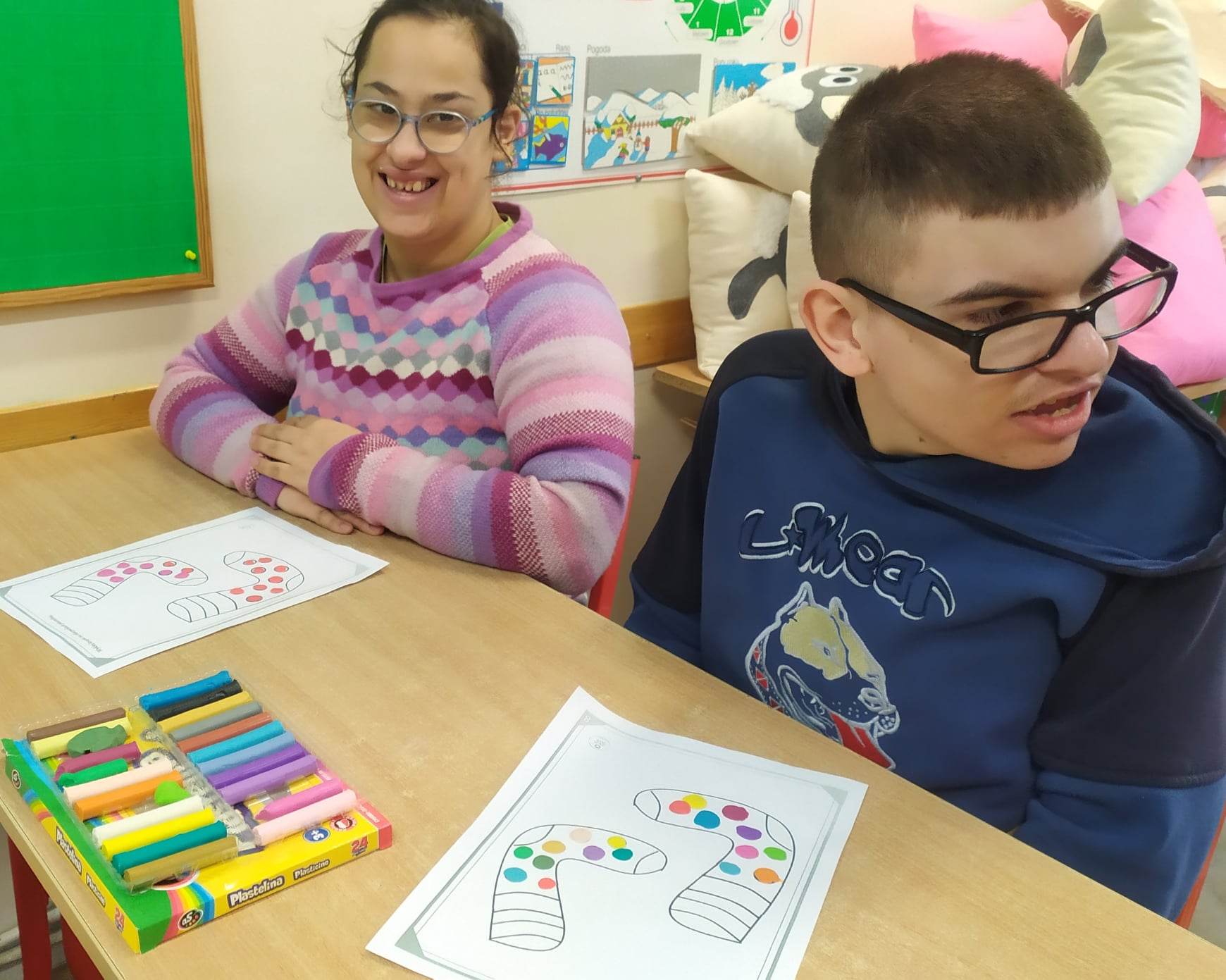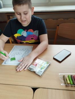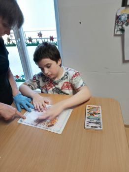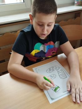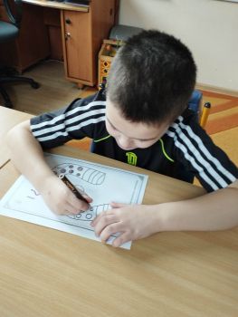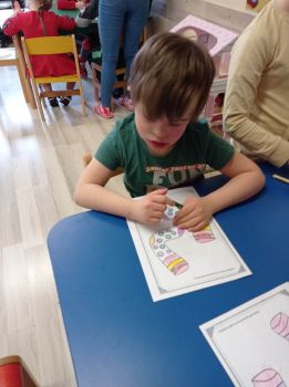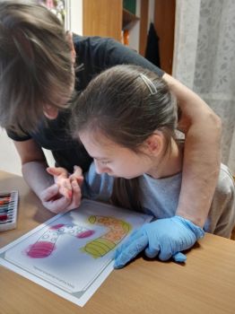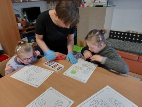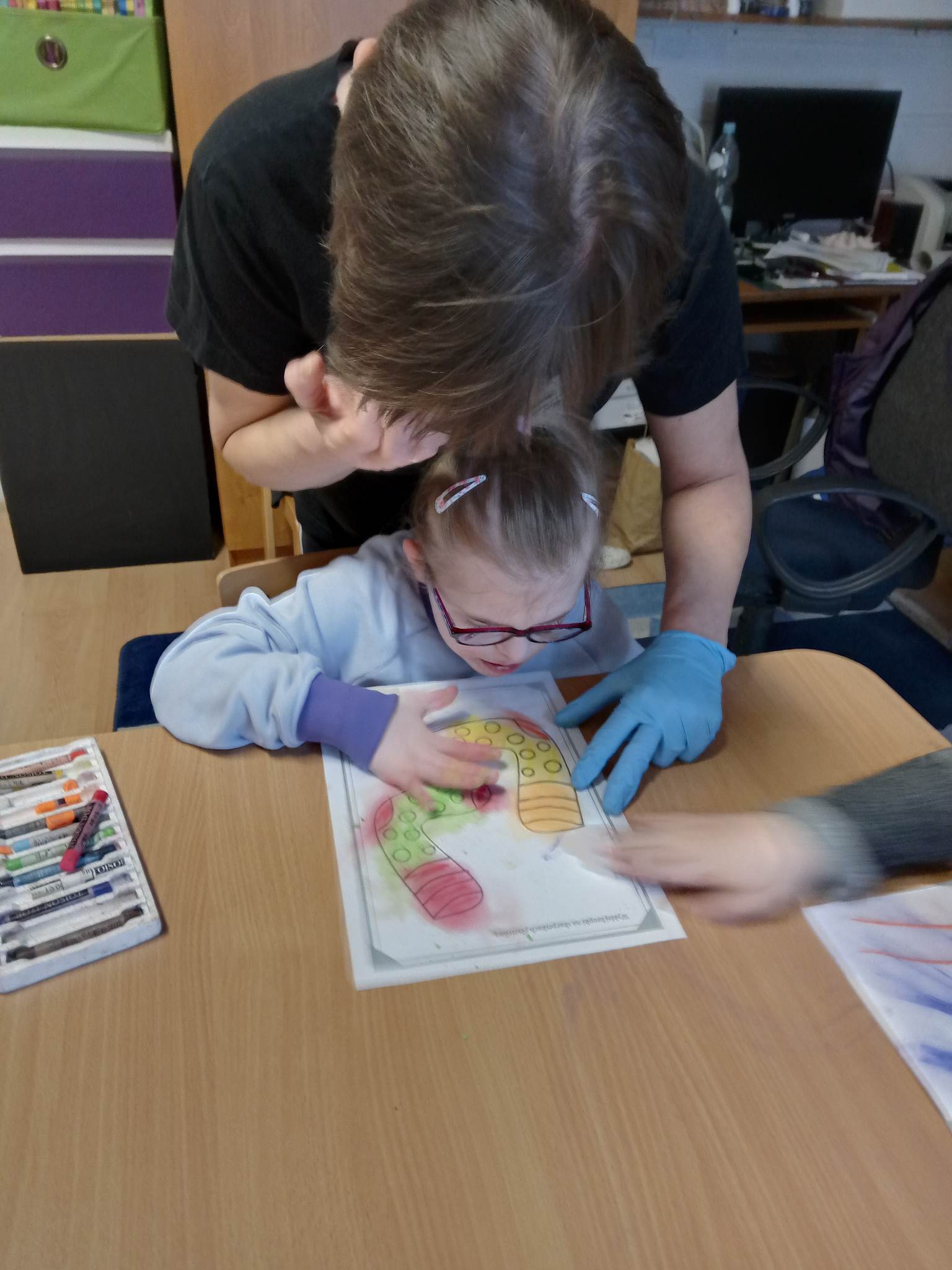 Dzieci pokolorowały skarpety nie do pary i zaprezentowały w ramach solidarności swoje skarpety nie do pary.
