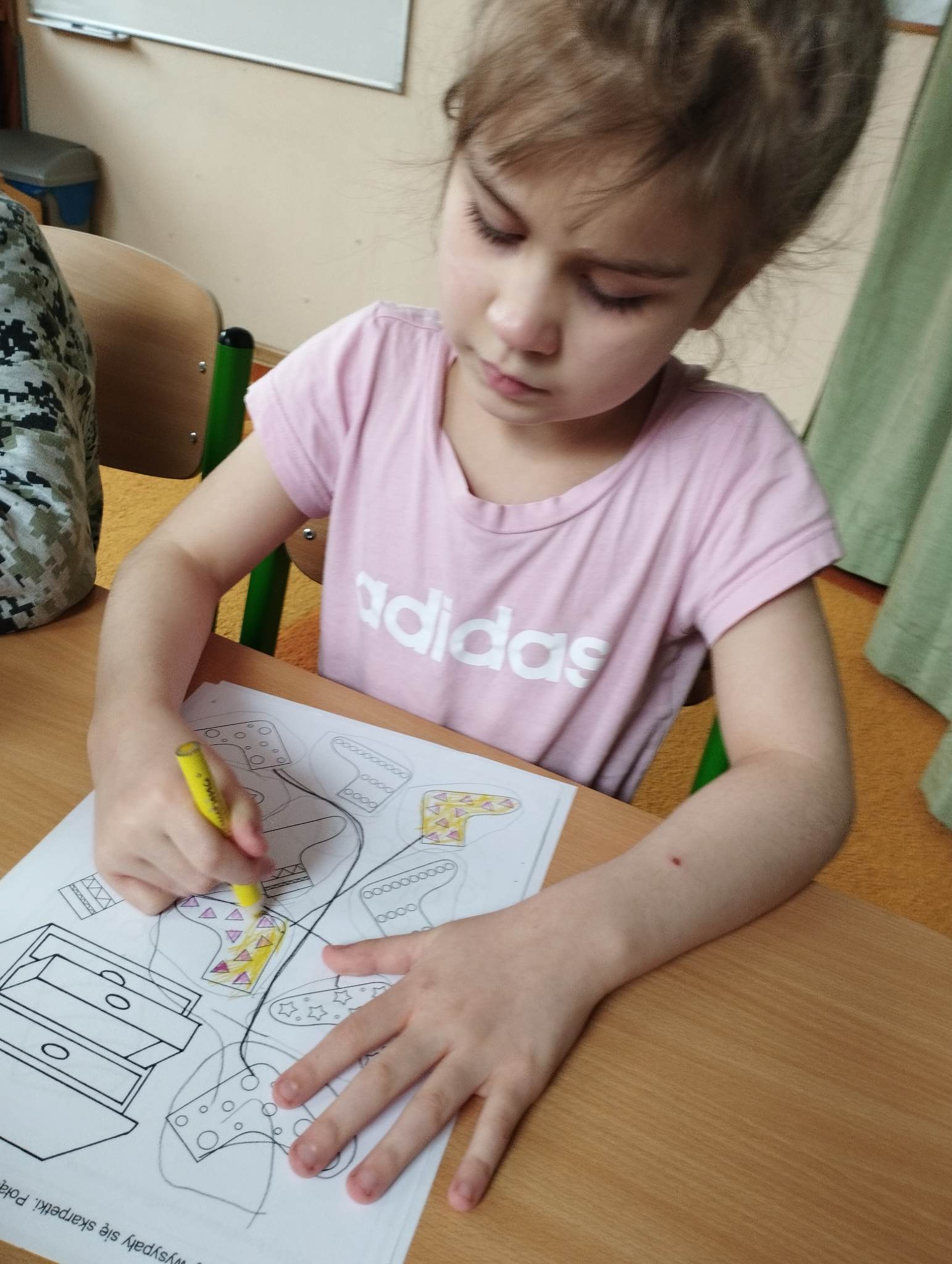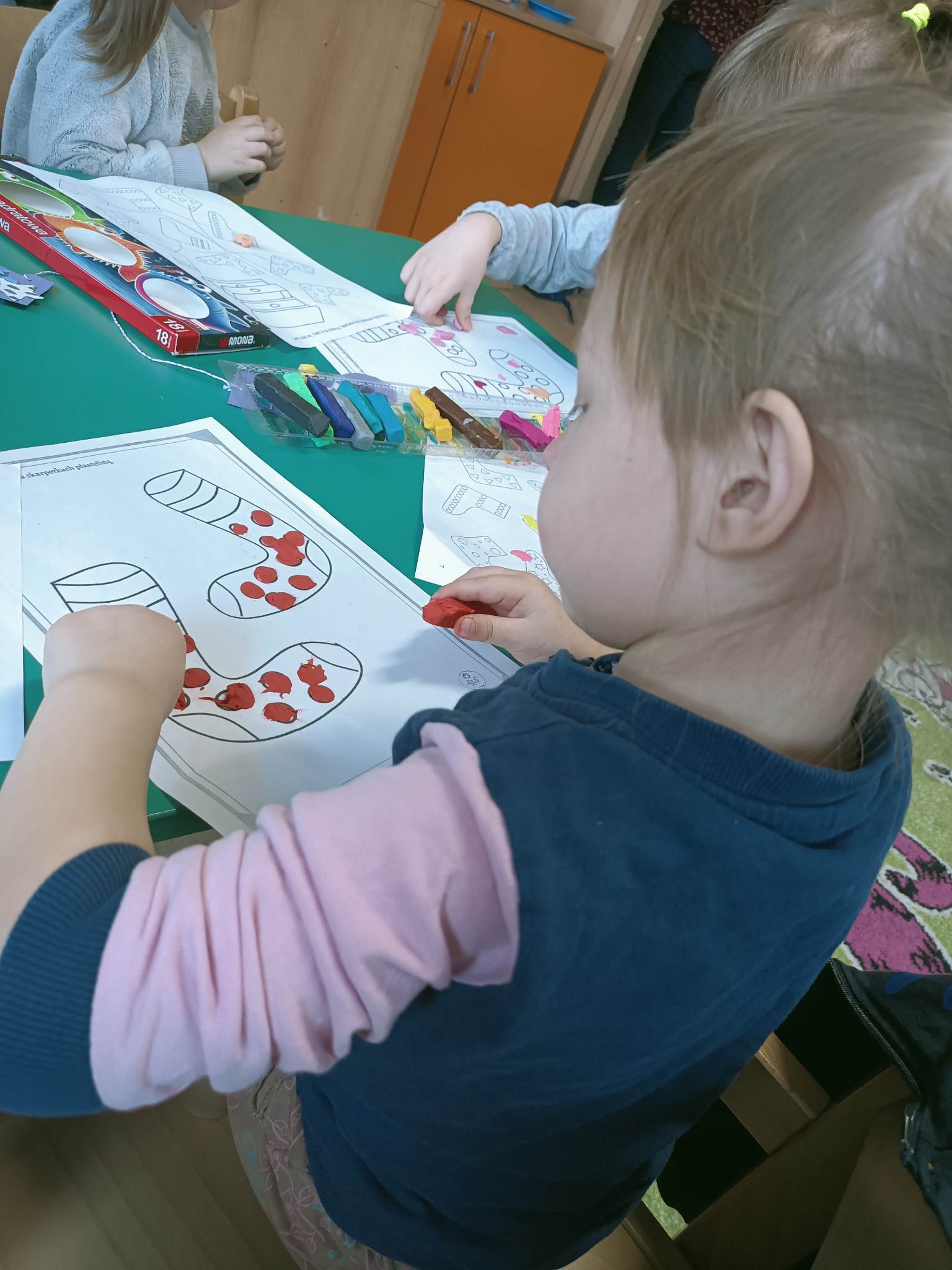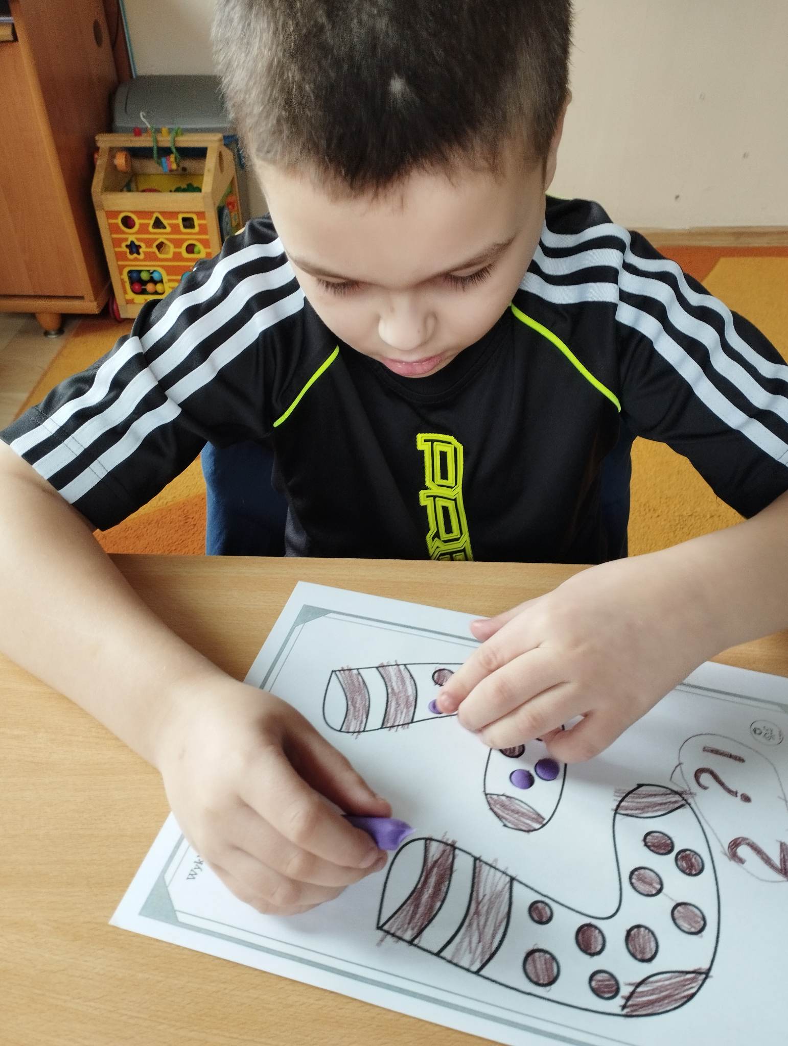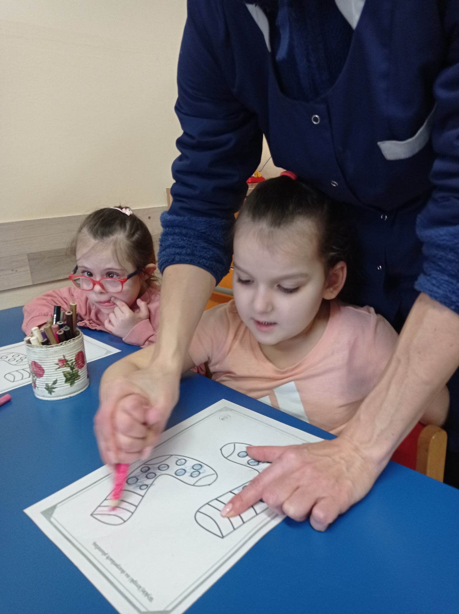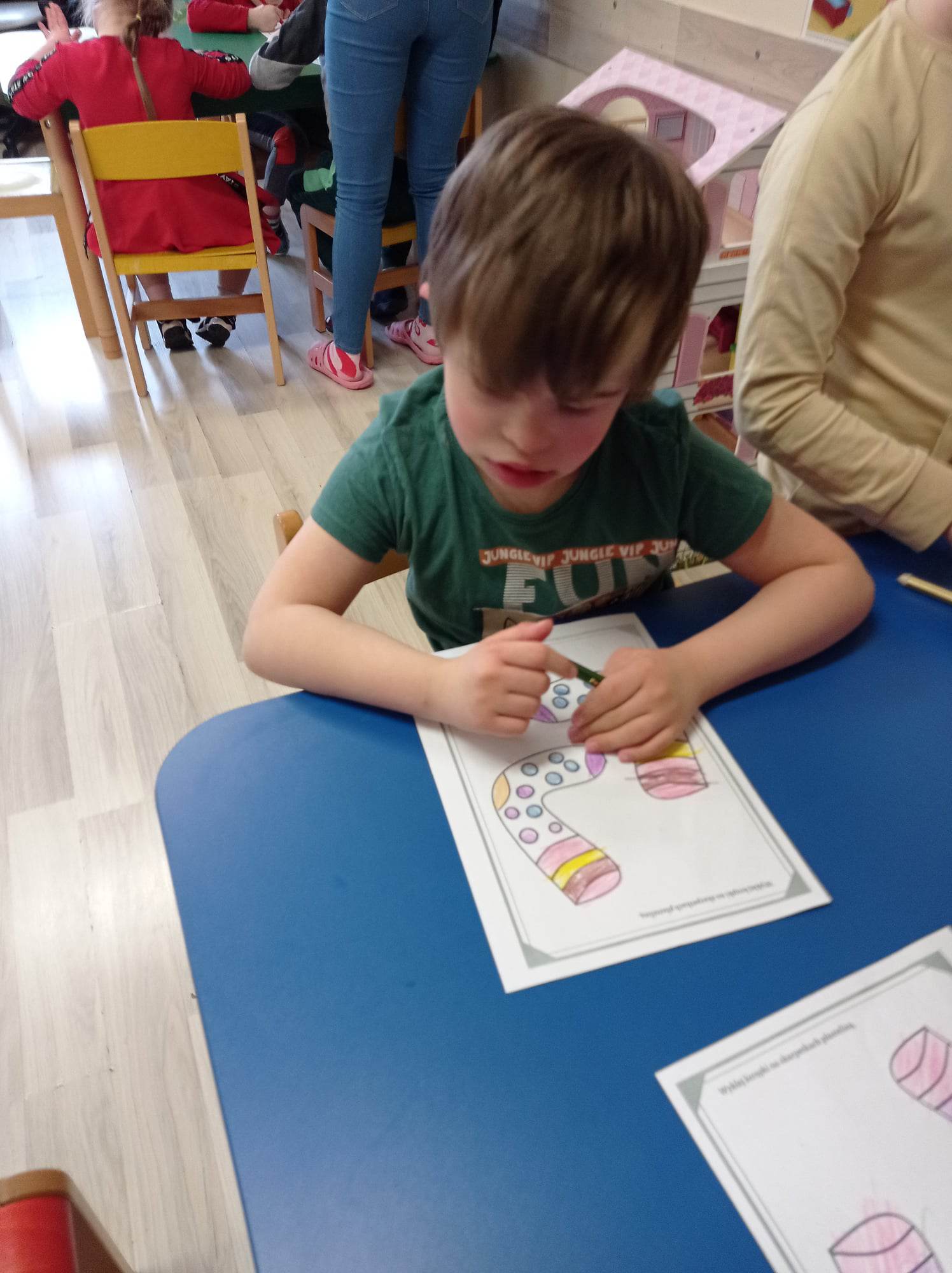 Dzieci pokolorowały skarpety nie do pary i zaprezentowały w ramach solidarności swoje skarpety nie do pary.
