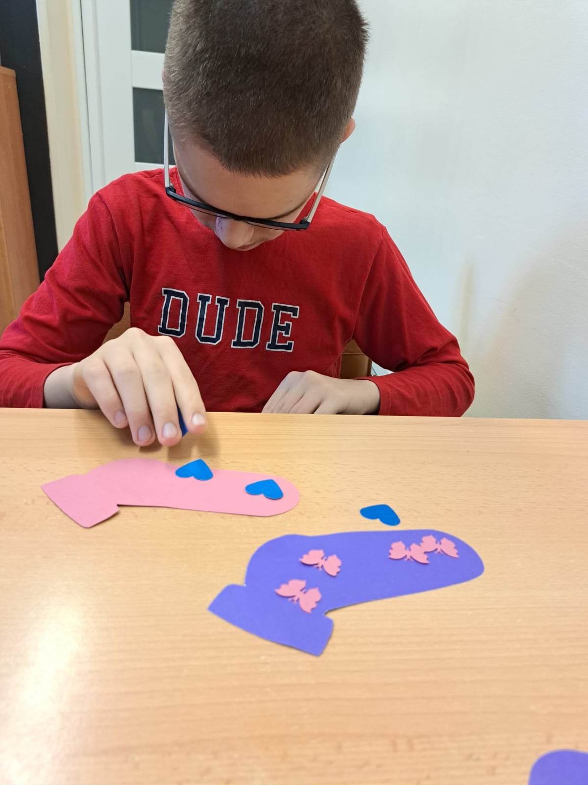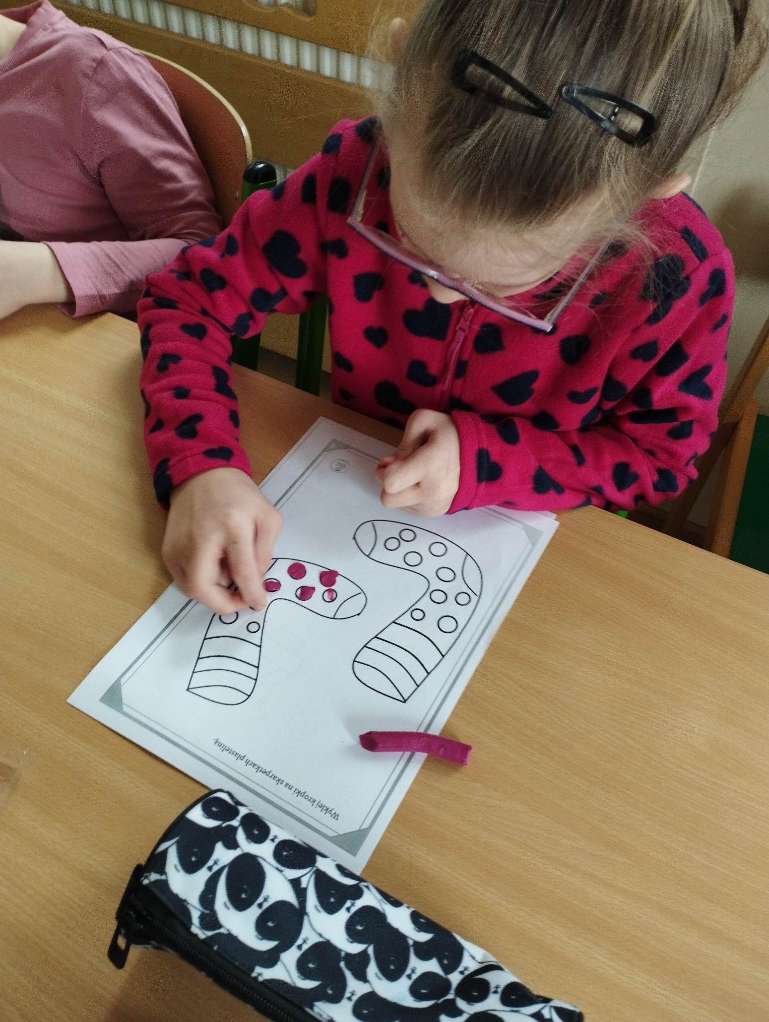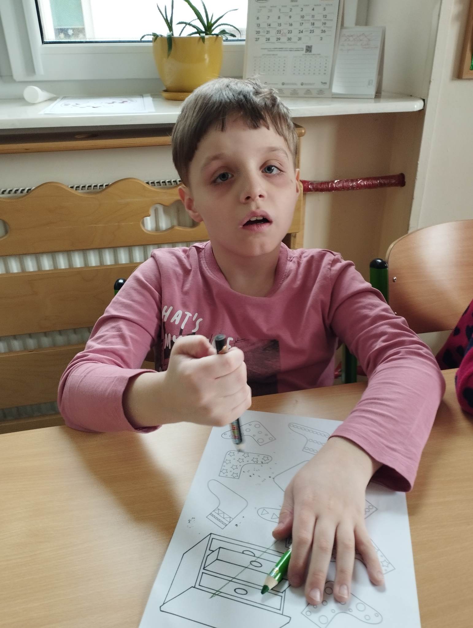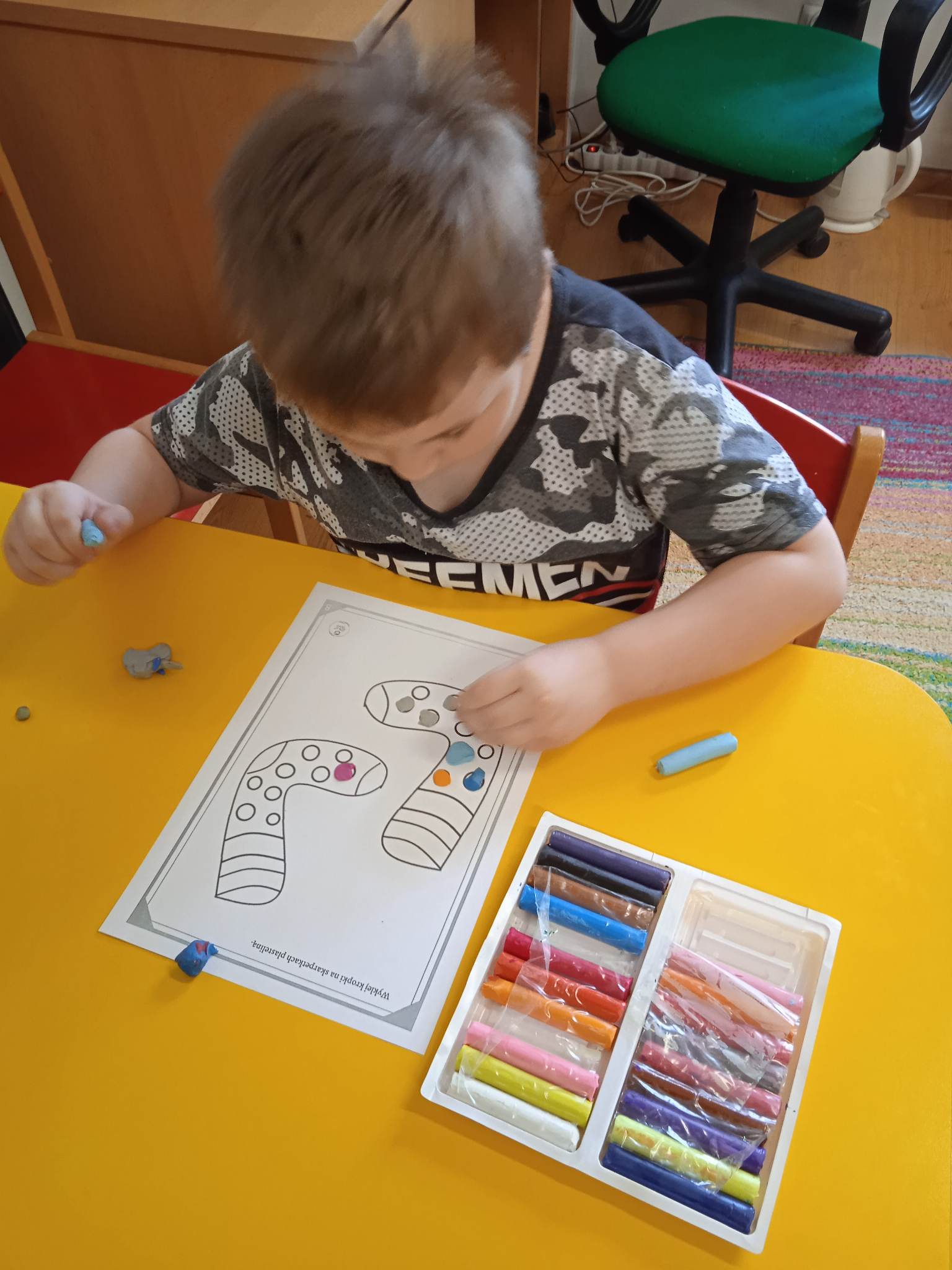 Dzieci pokolorowały skarpety nie do pary i zaprezentowały w ramach solidarności swoje skarpety nie do pary.