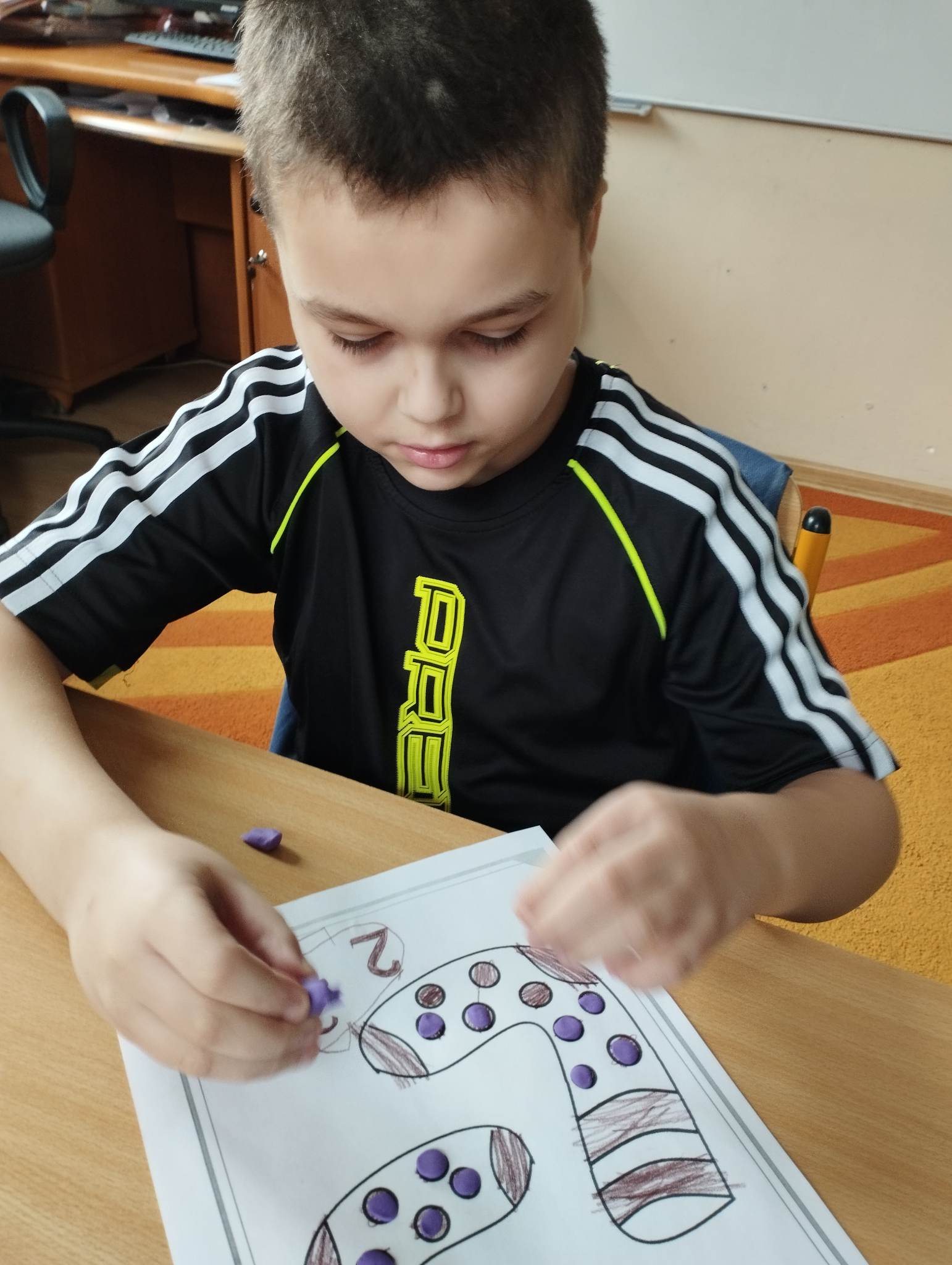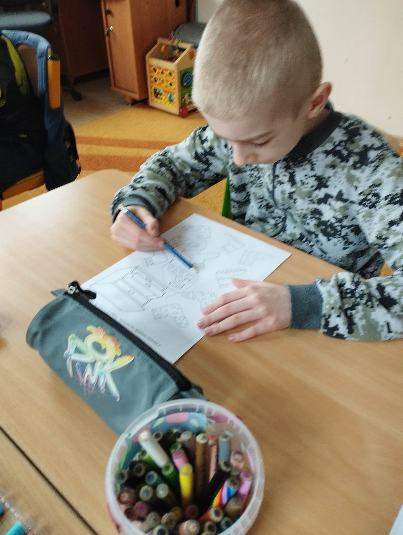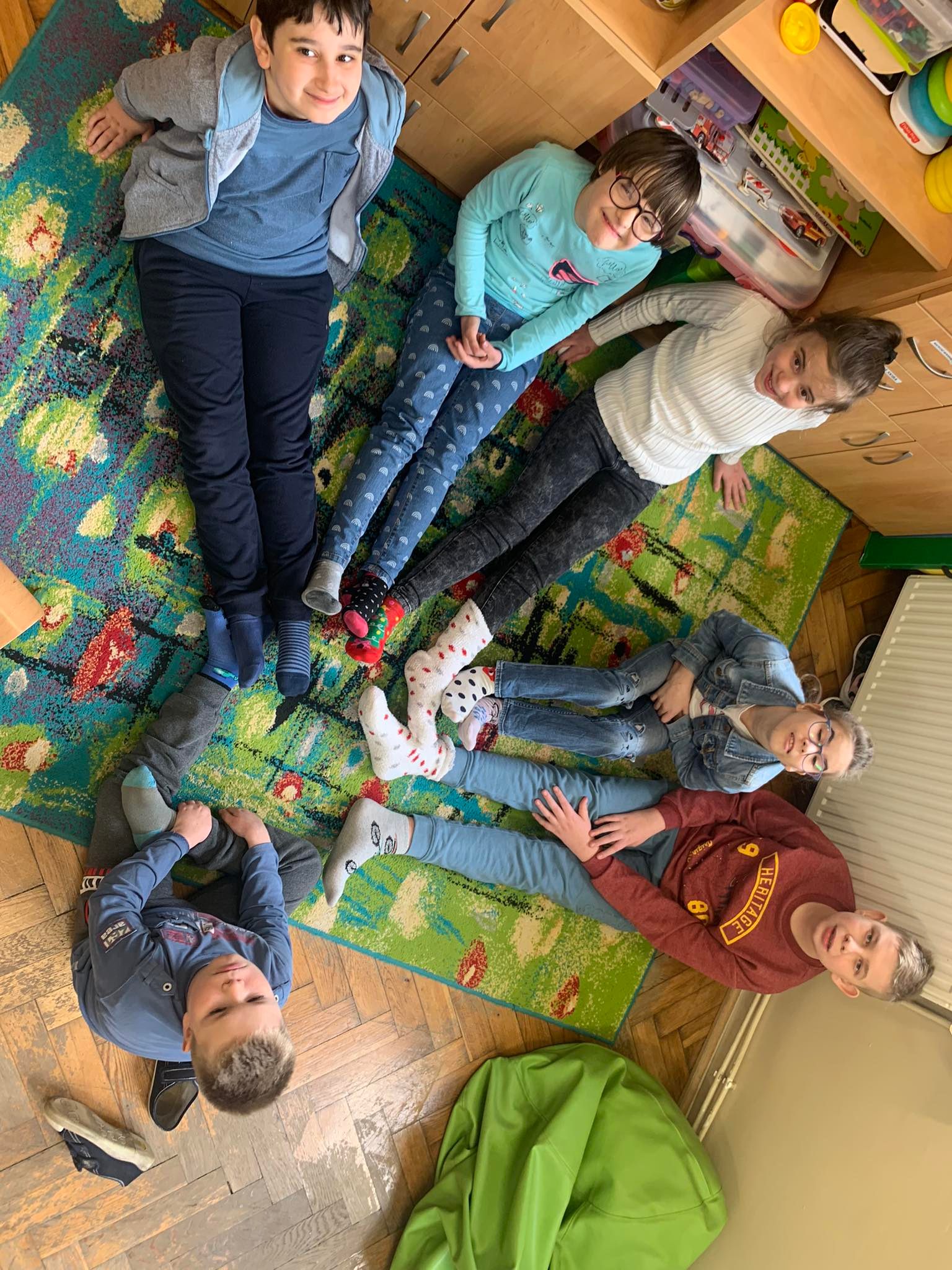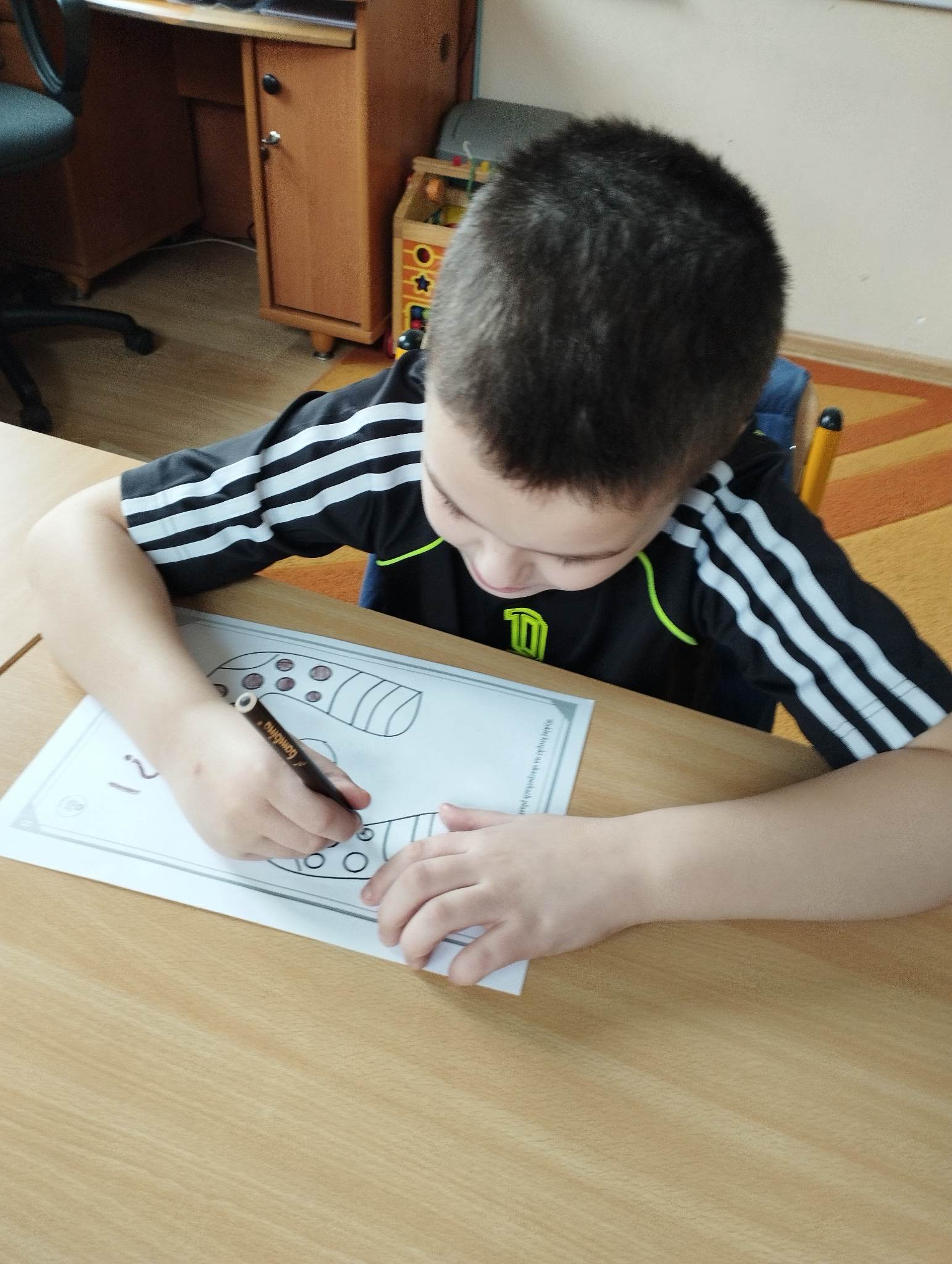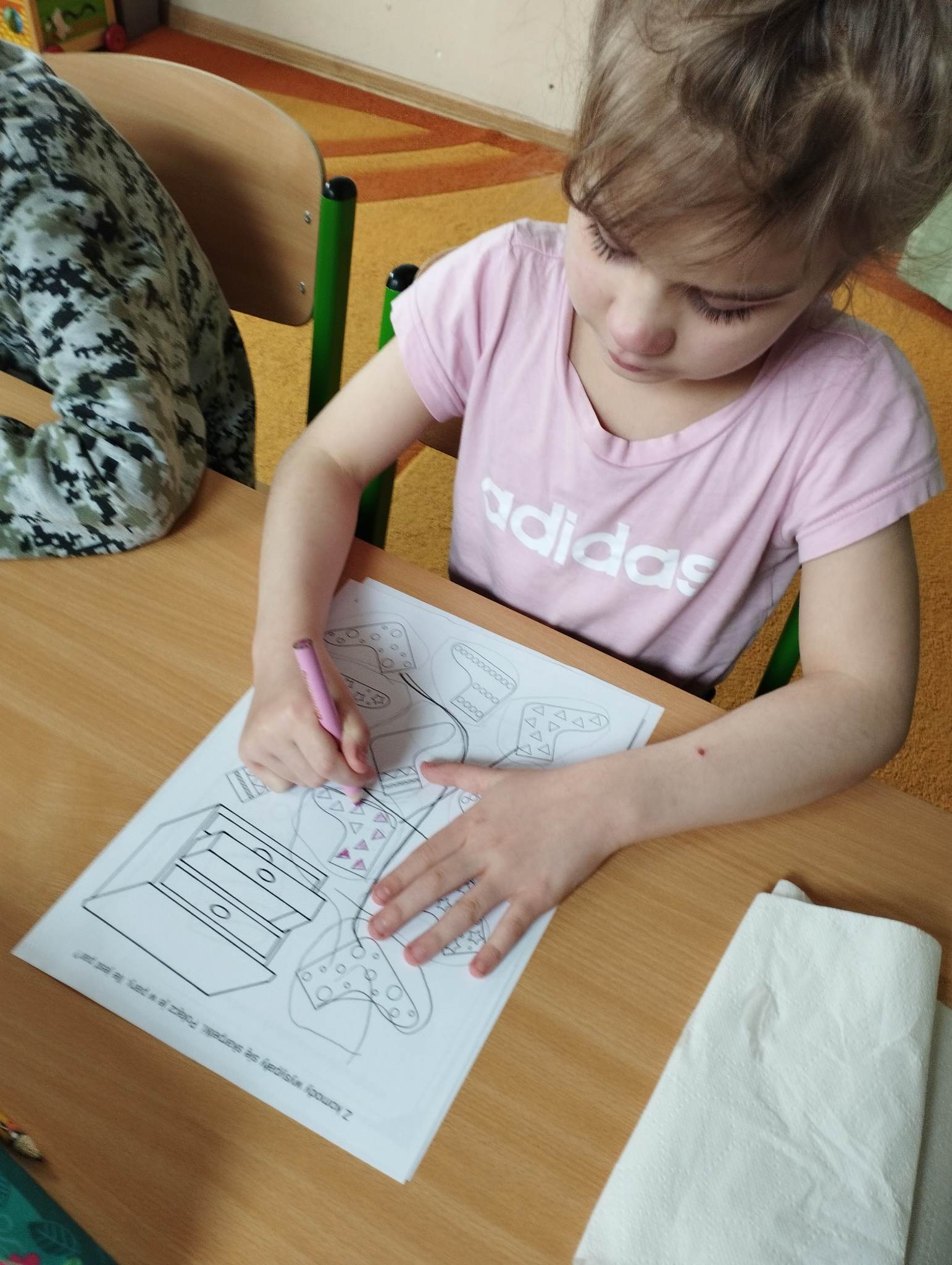 Dzieci pokolorowały skarpety nie do pary i zaprezentowały w ramach solidarności swoje skarpety nie do pary.