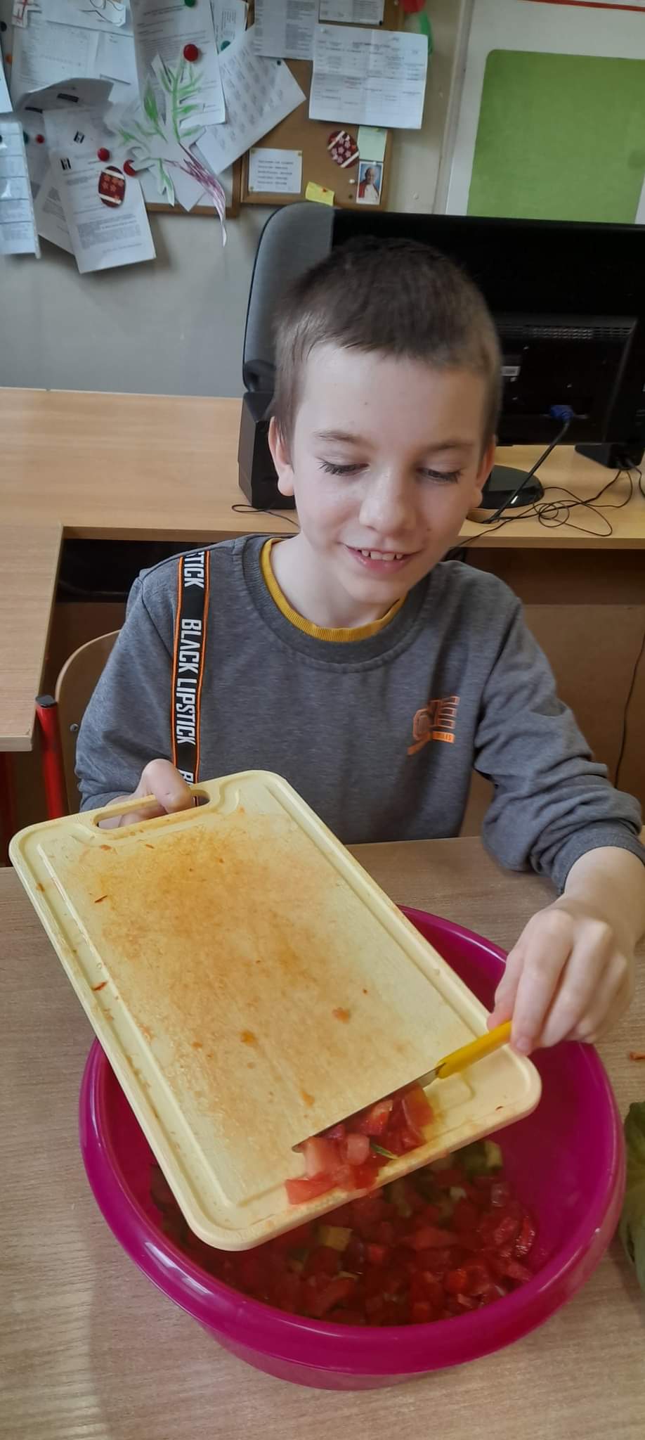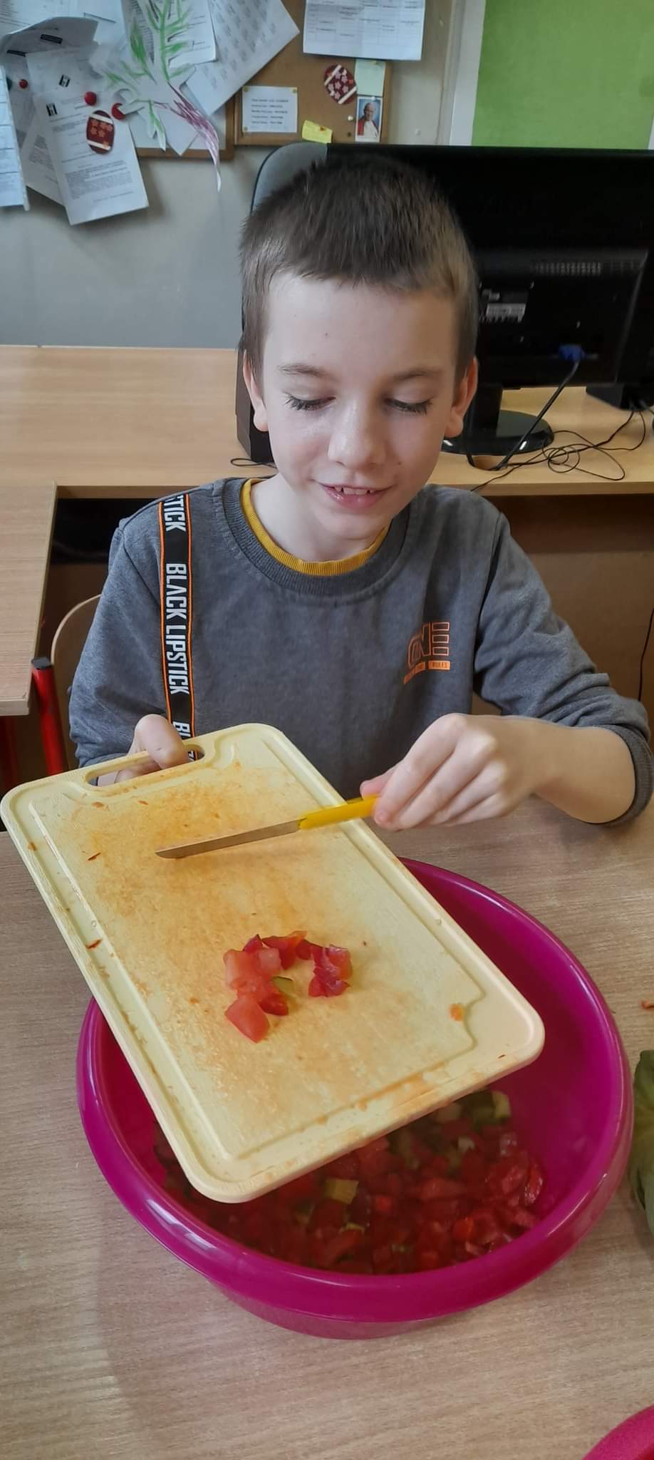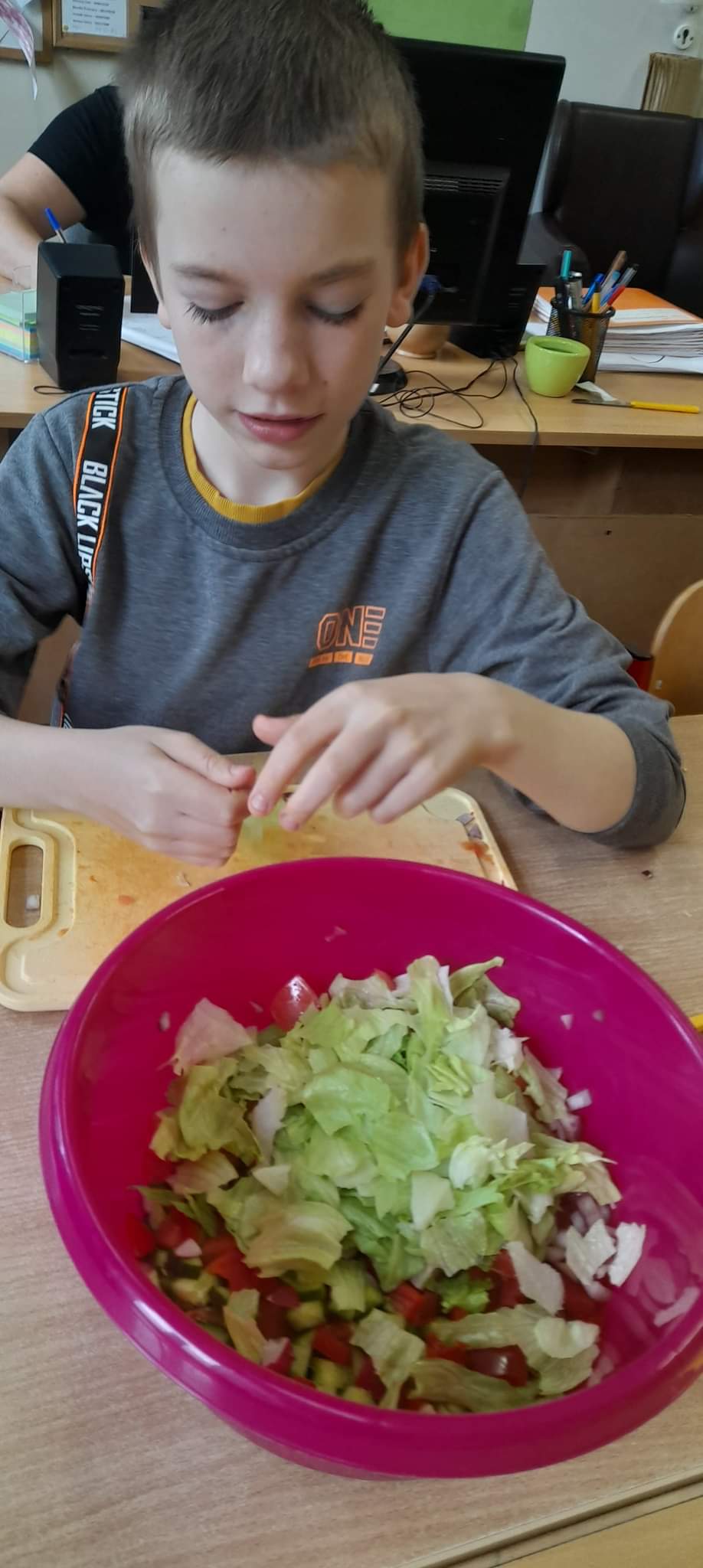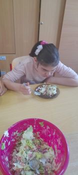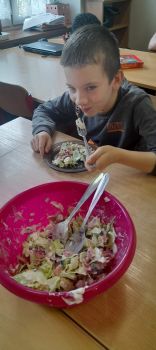 Uczniowie kl. 4 i 5 przygotowywali sałątkę wiosenną.