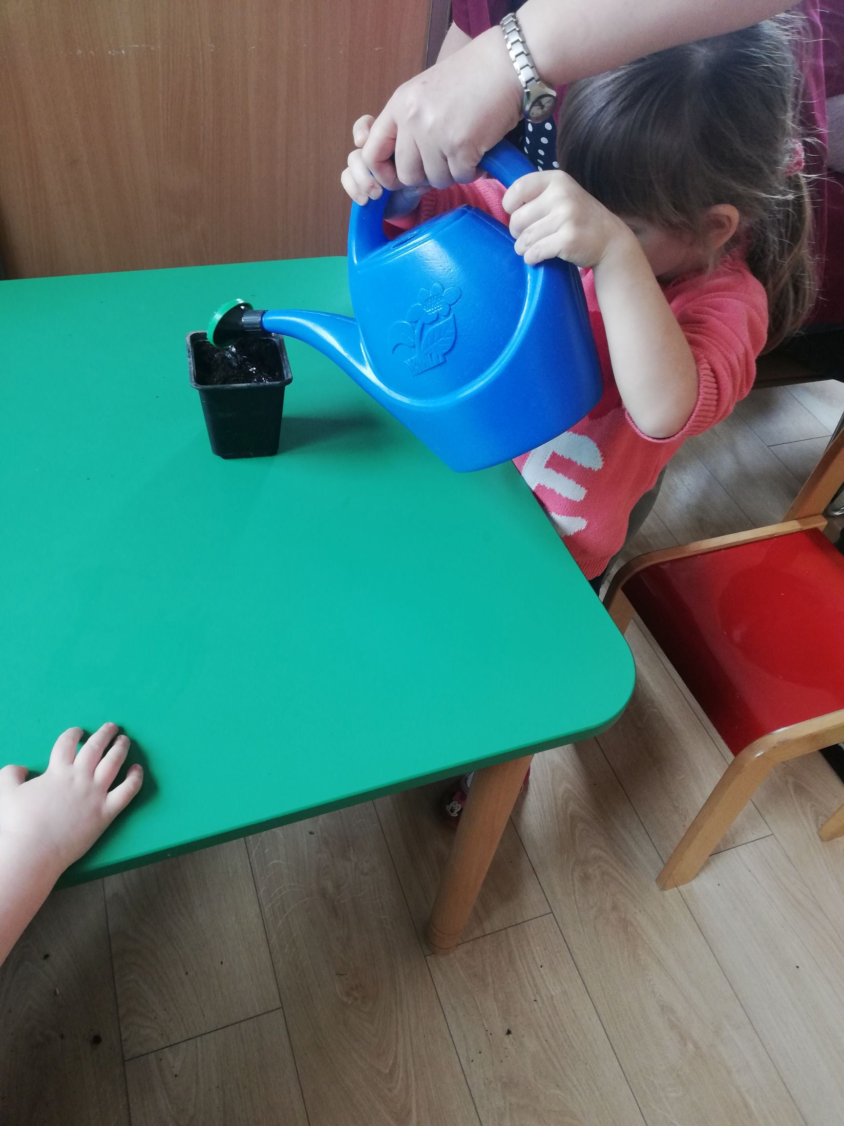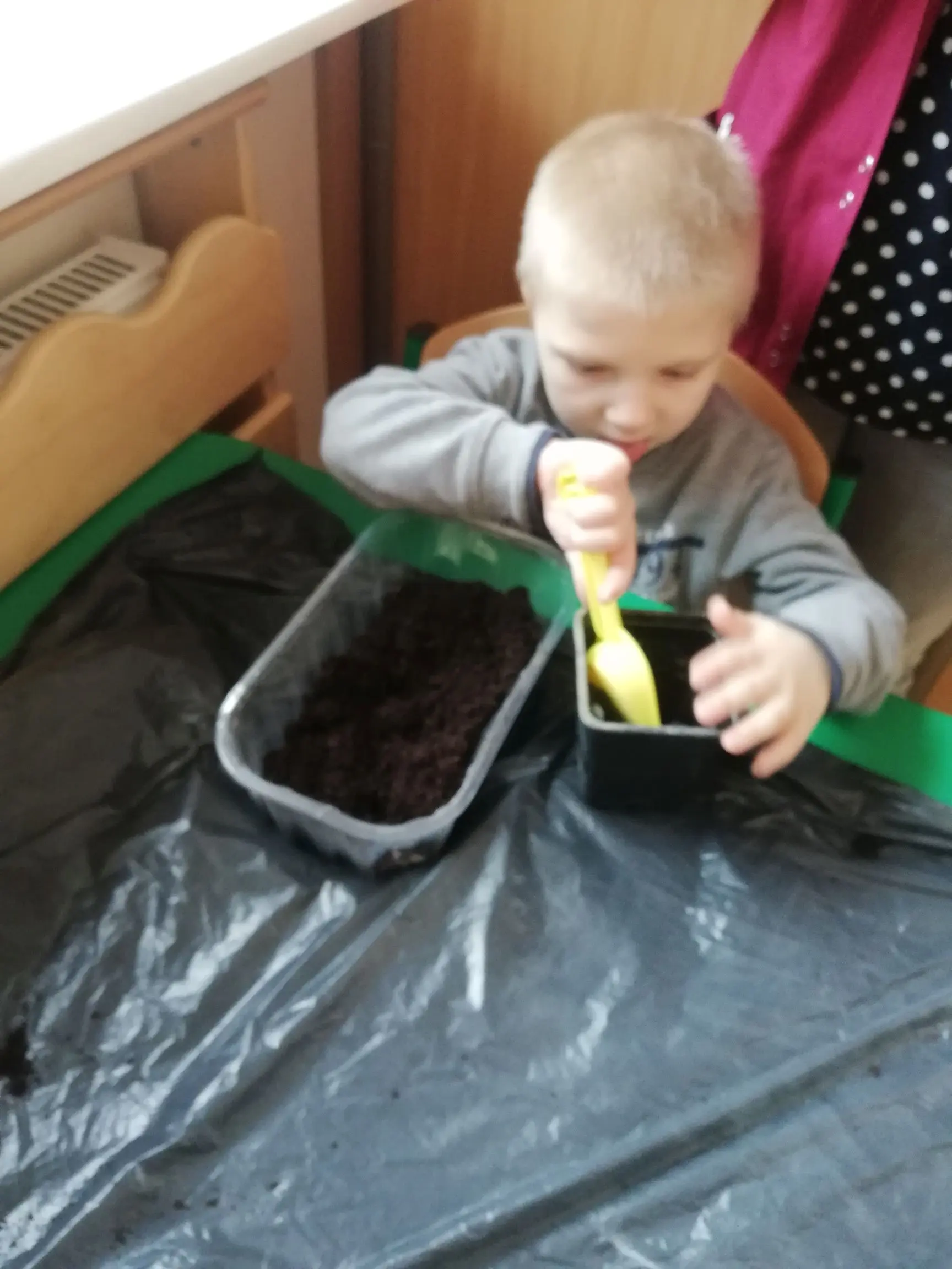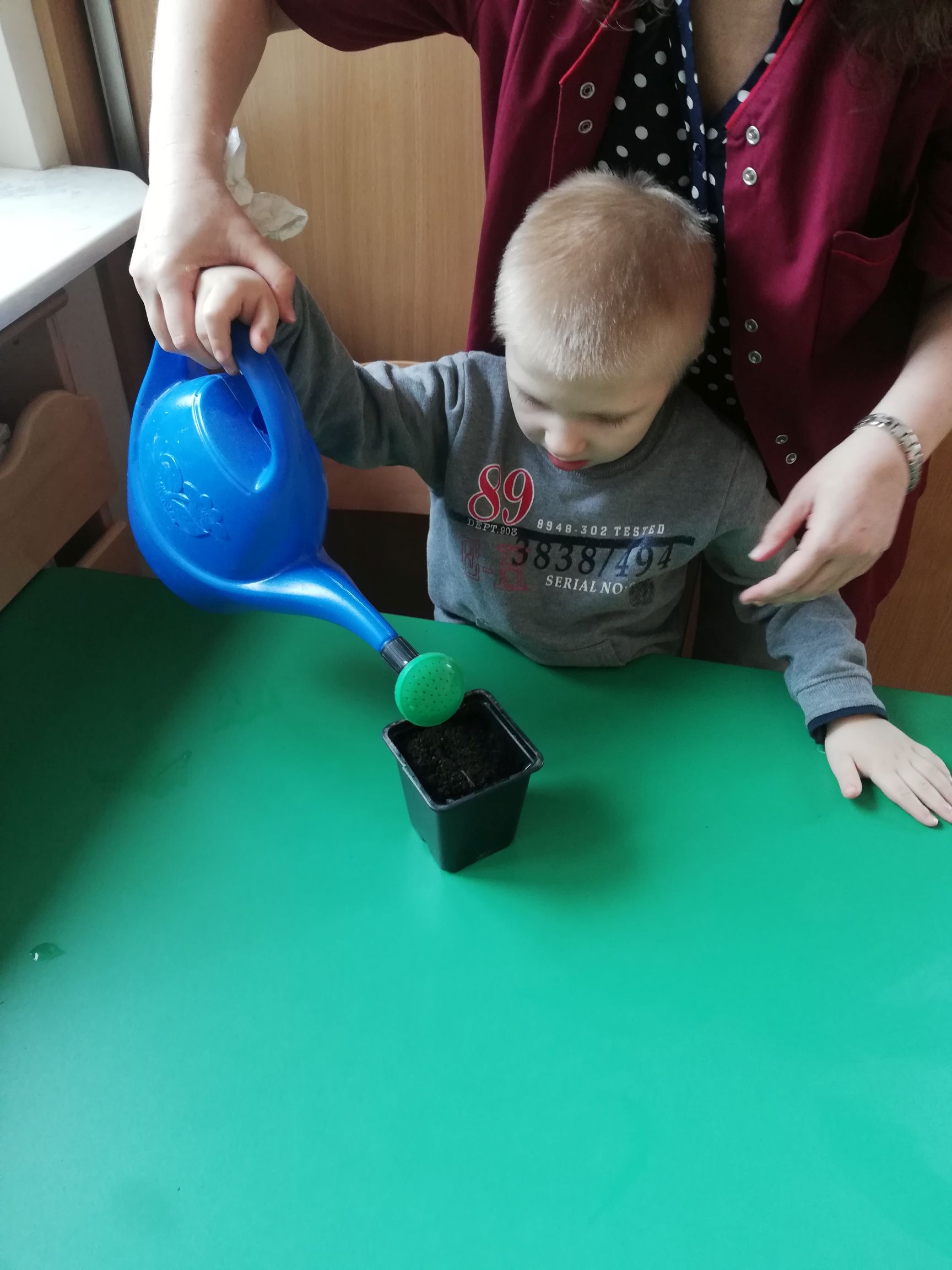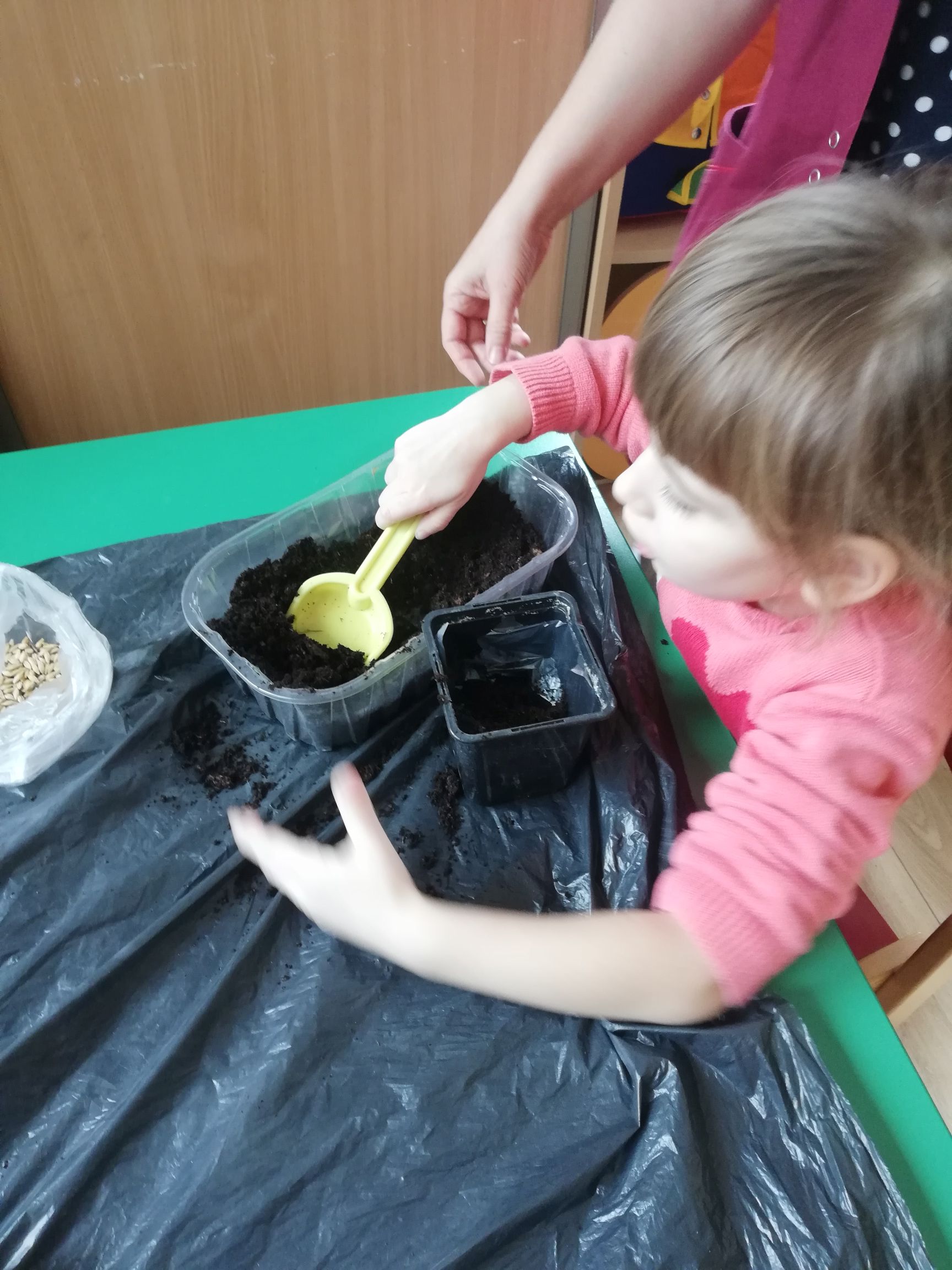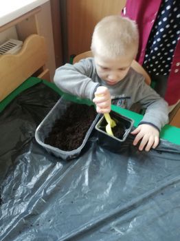 Oprócz owsa, do doniczek posadziliśmy dziś również rzeżuchę. Umieściliśmy je w kąciku przyrody, będziemy podlewać i codziennie obserwować wzrost, a na koniec wspólnie zjemy jako dodatek do porannego śniadania.