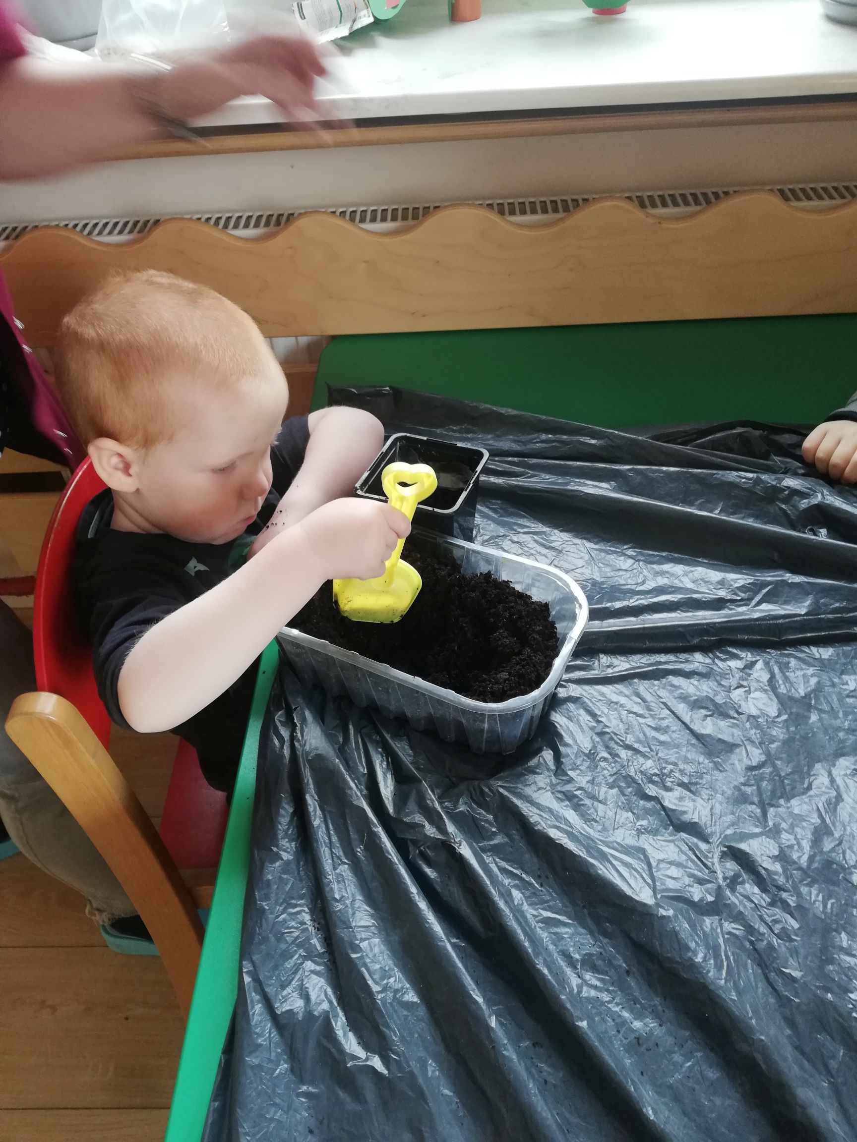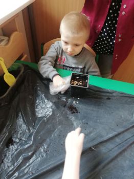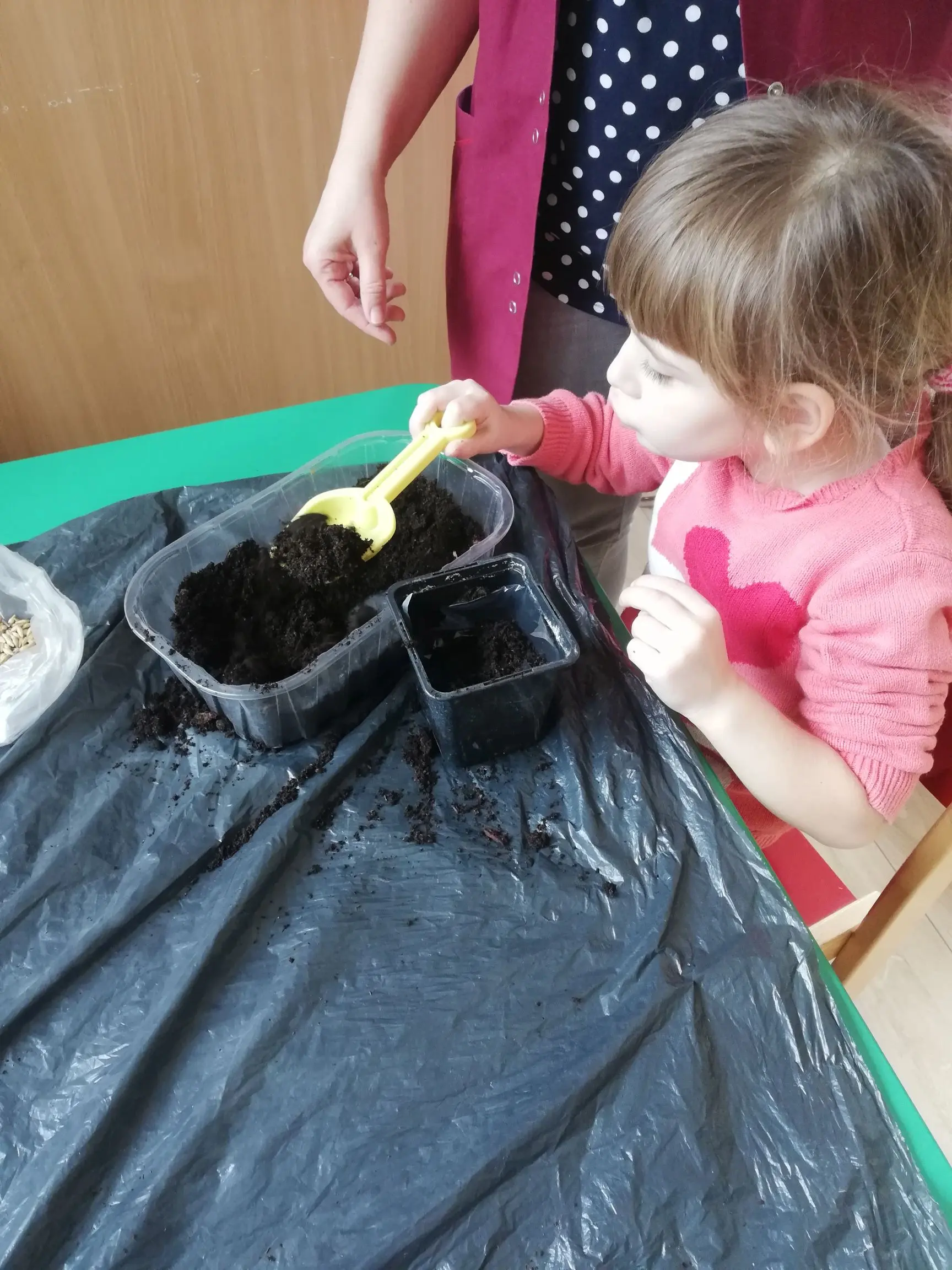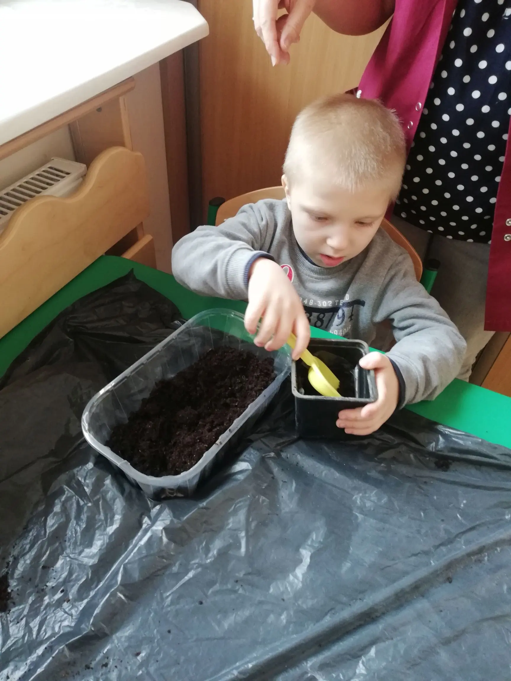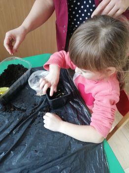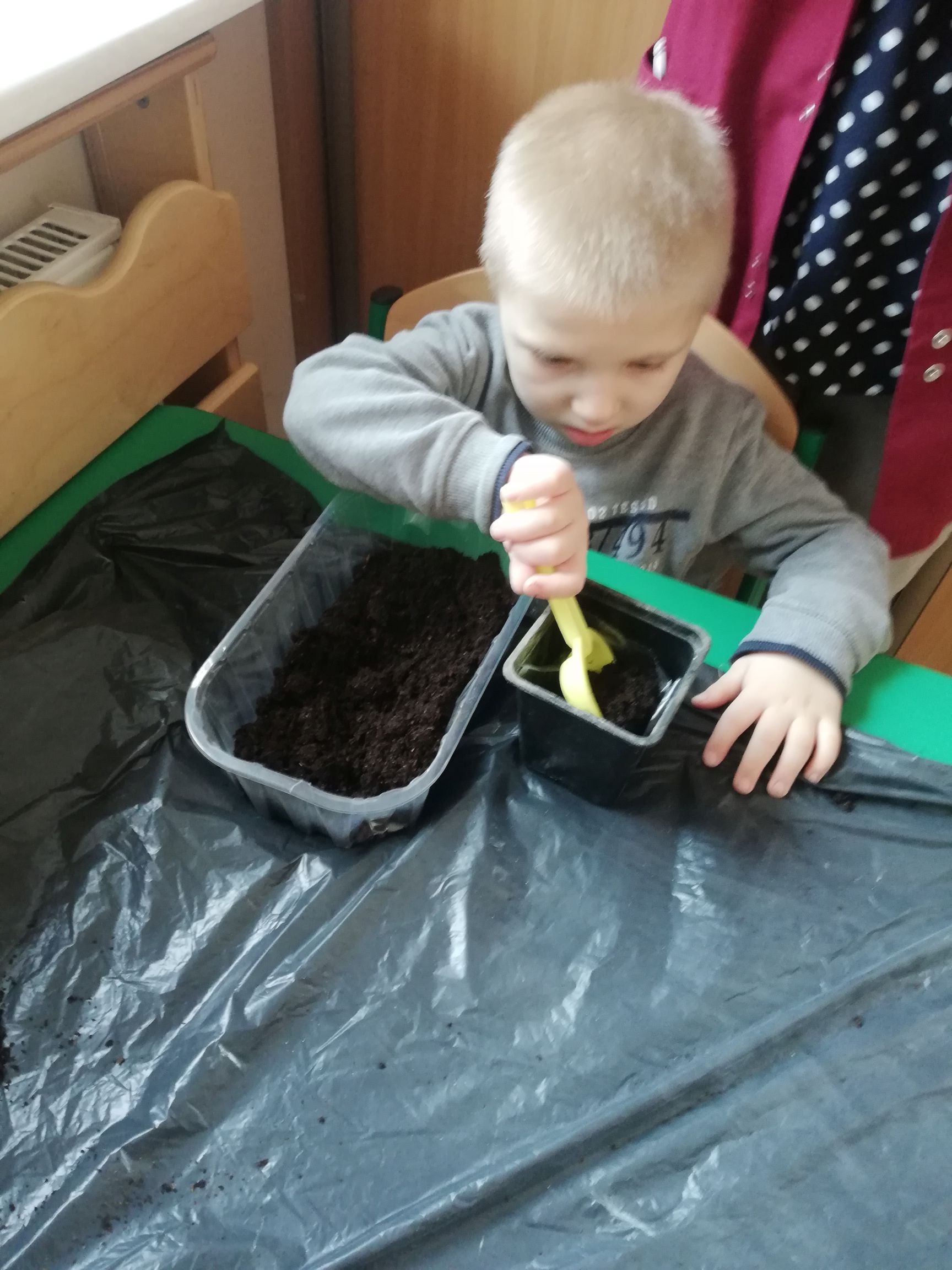 Oprócz owsa, do doniczek posadziliśmy dziś również rzeżuchę. Umieściliśmy je w kąciku przyrody, będziemy podlewać i codziennie obserwować wzrost, a na koniec wspólnie zjemy jako dodatek do porannego śniadania.