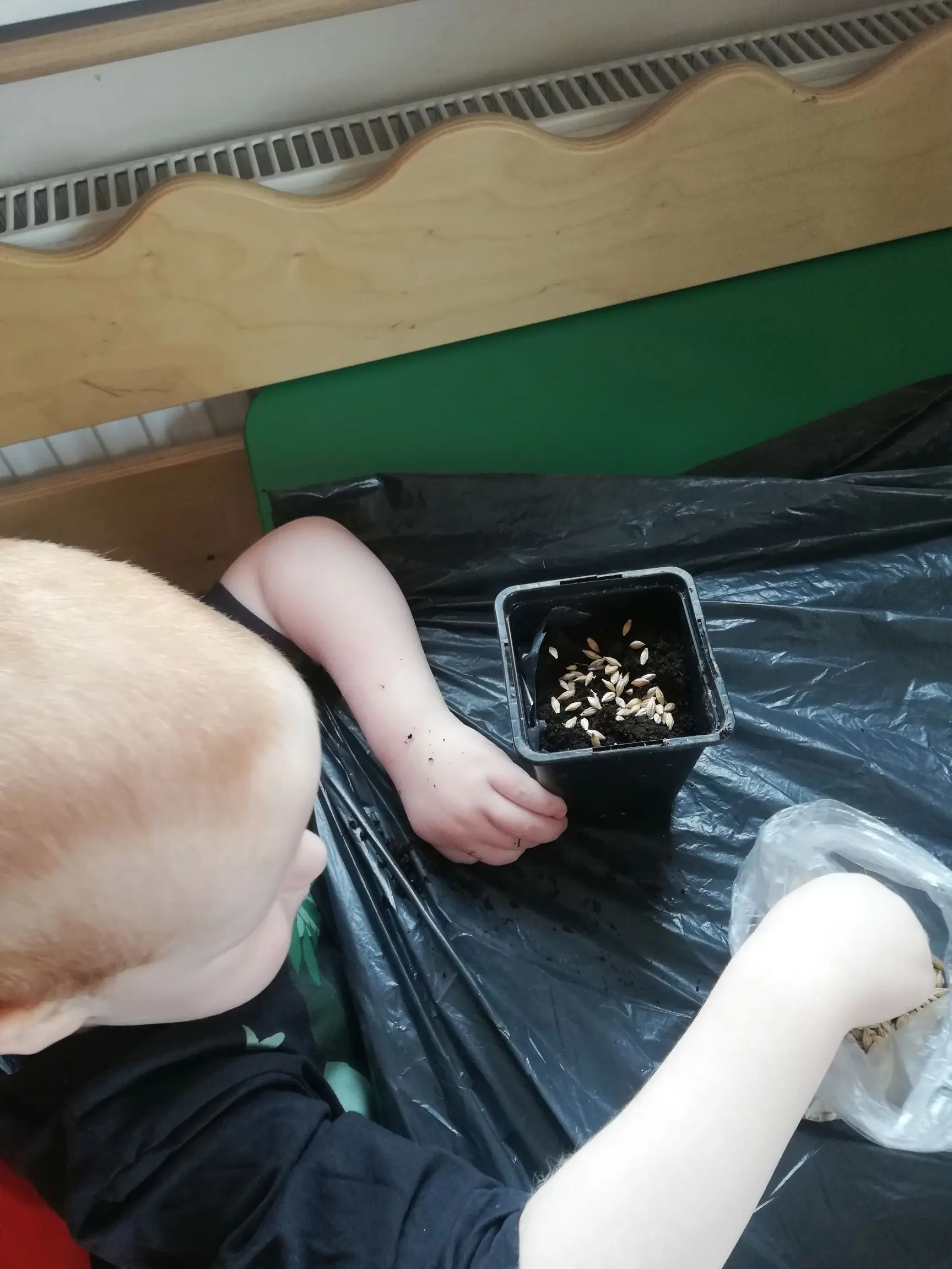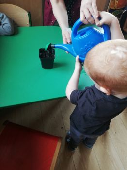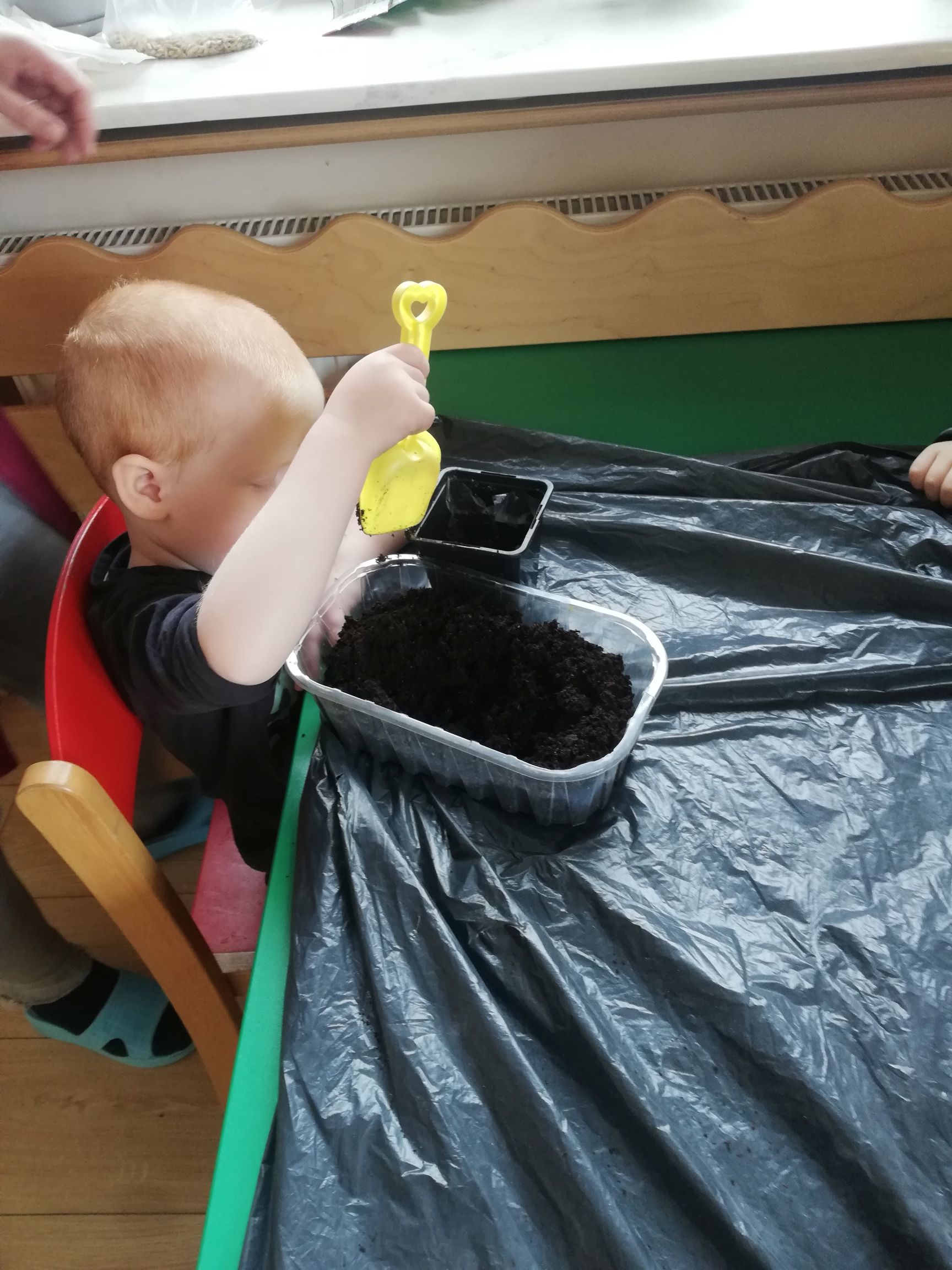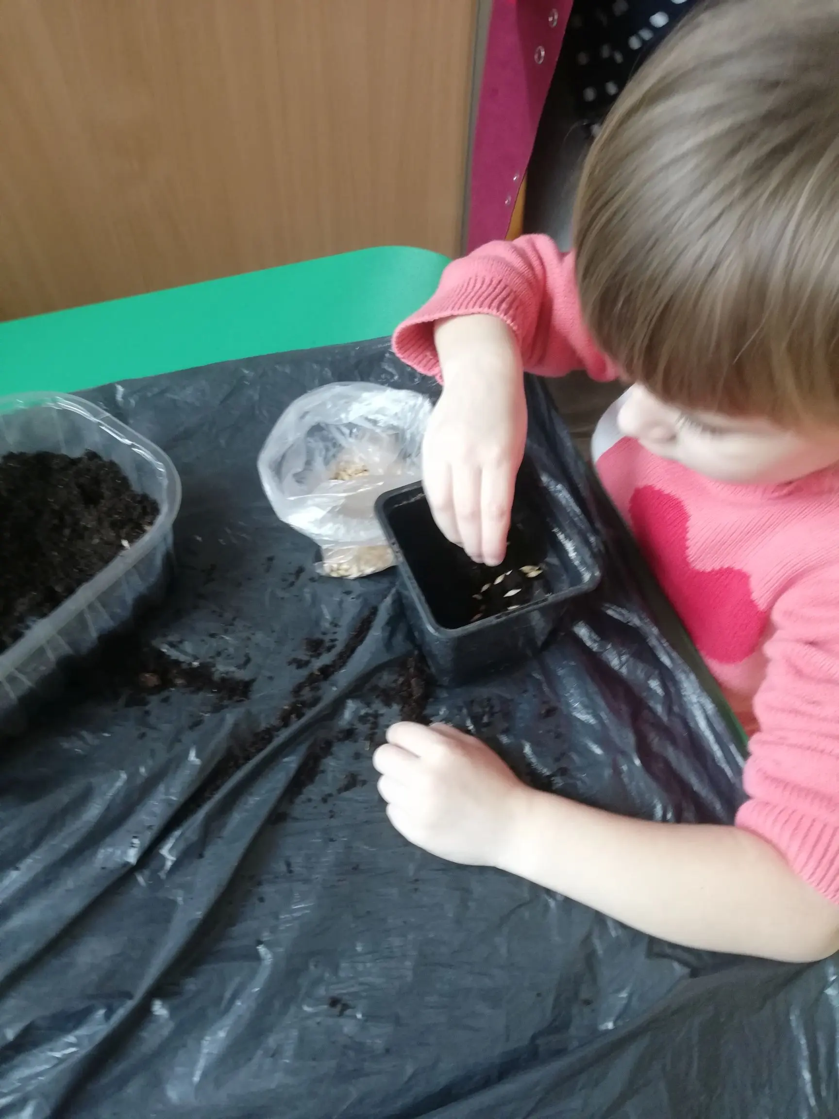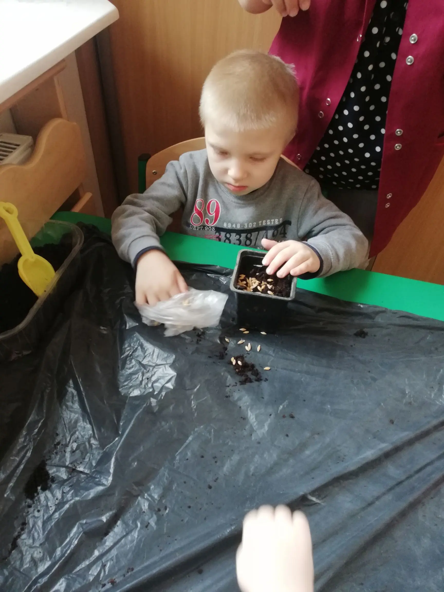 Oprócz owsa, do doniczek posadziliśmy dziś również rzeżuchę. Umieściliśmy je w kąciku przyrody, będziemy podlewać i codziennie obserwować wzrost, a na koniec wspólnie zjemy jako dodatek do porannego śniadania.