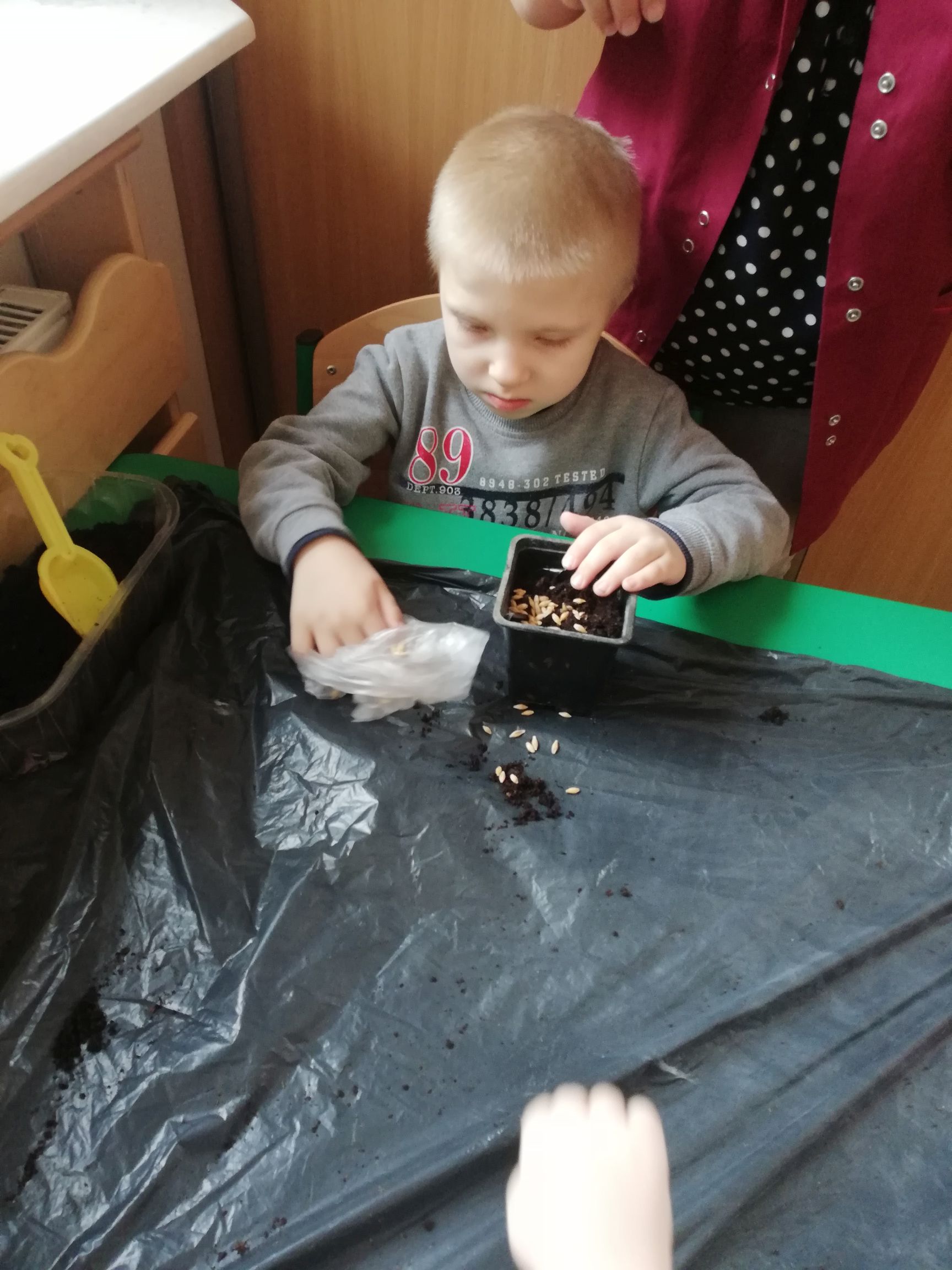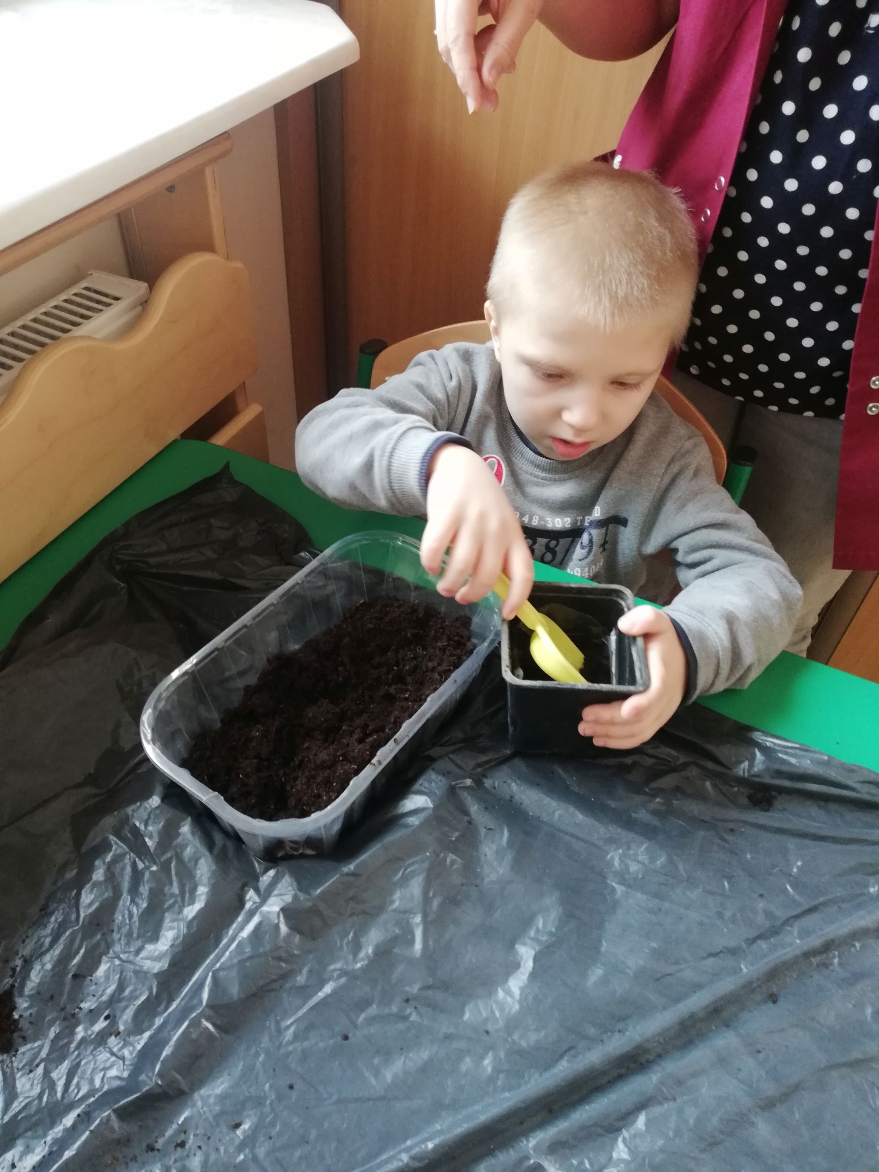 Kalendarzowa wiosna zaczęła już na dobre, a to jest znak, że wkrótce nadejdą Święta Wielkanocne. Powoli przygotowujemy się do nich na wiele sposobów. Dziś na przykład do doniczek wysiewaliśmy owies. Jest to symbol zdrowia, szczęścia, a przede wszystkim urodzaju. Każdy z przedszkolaków z grupy IV otrzymał swoją doniczkę, którą należało napełnić ziemią, nasypać ziarenek owsa, podlać konewką, a następnie postawić na parapecie, gdzie dochodzą promienie słońca.