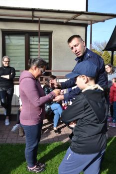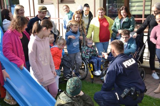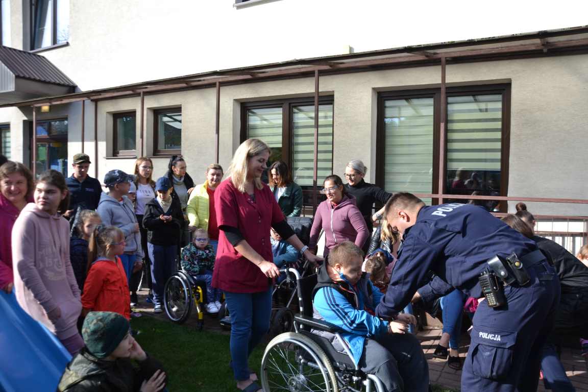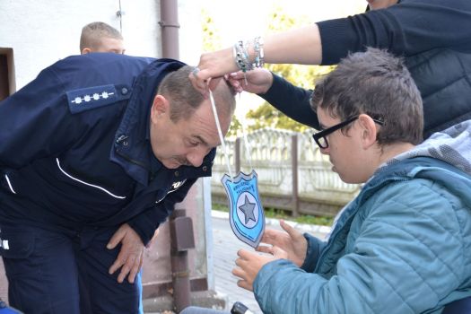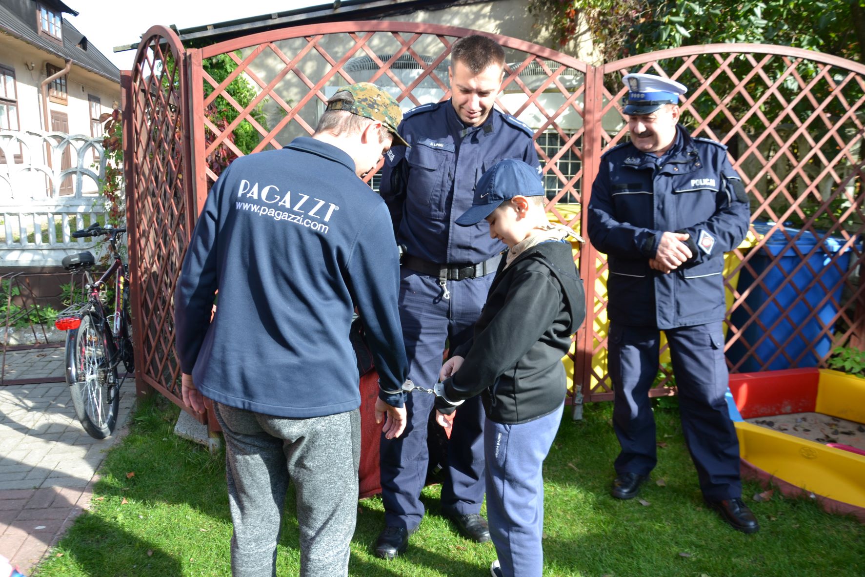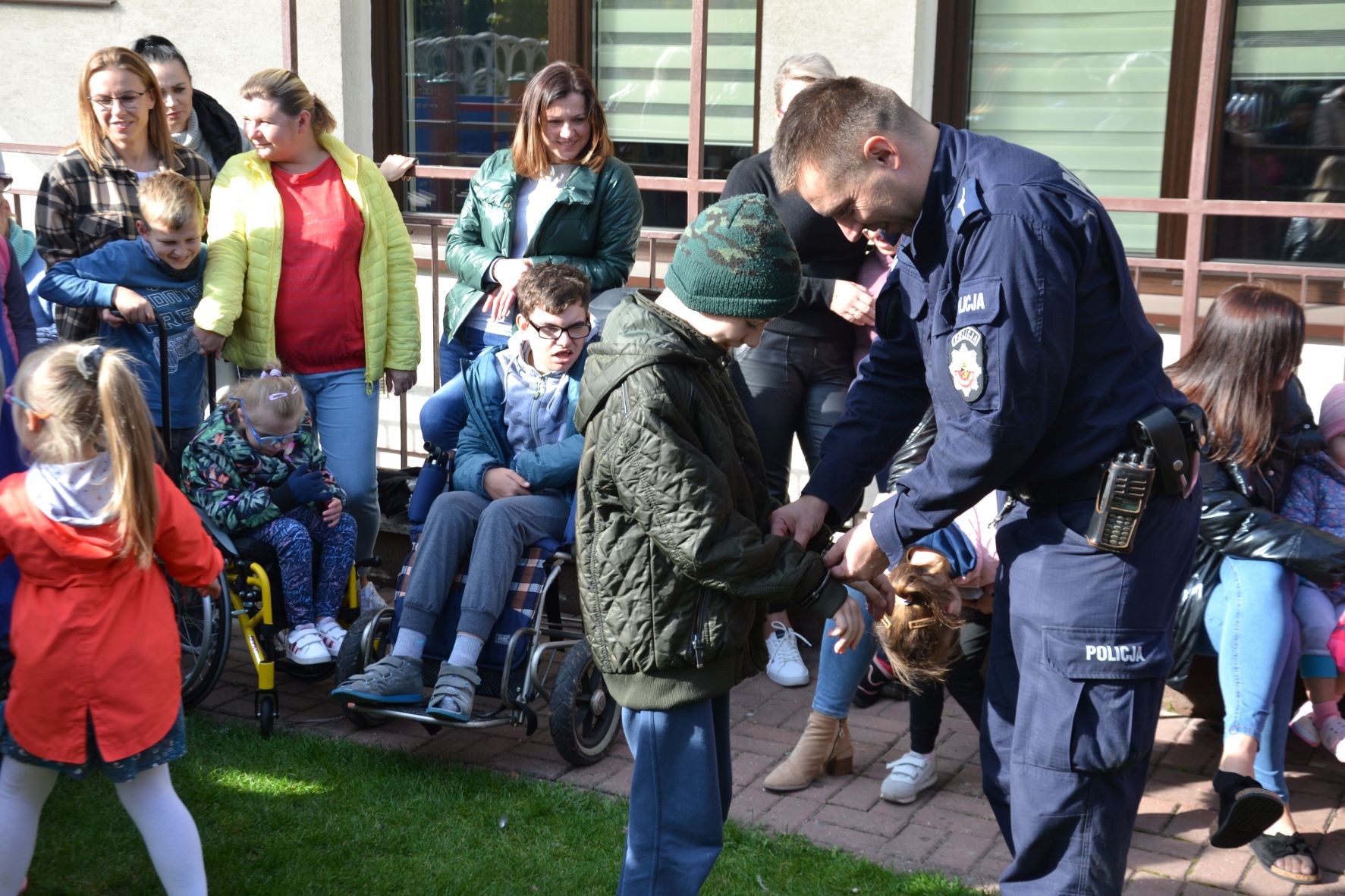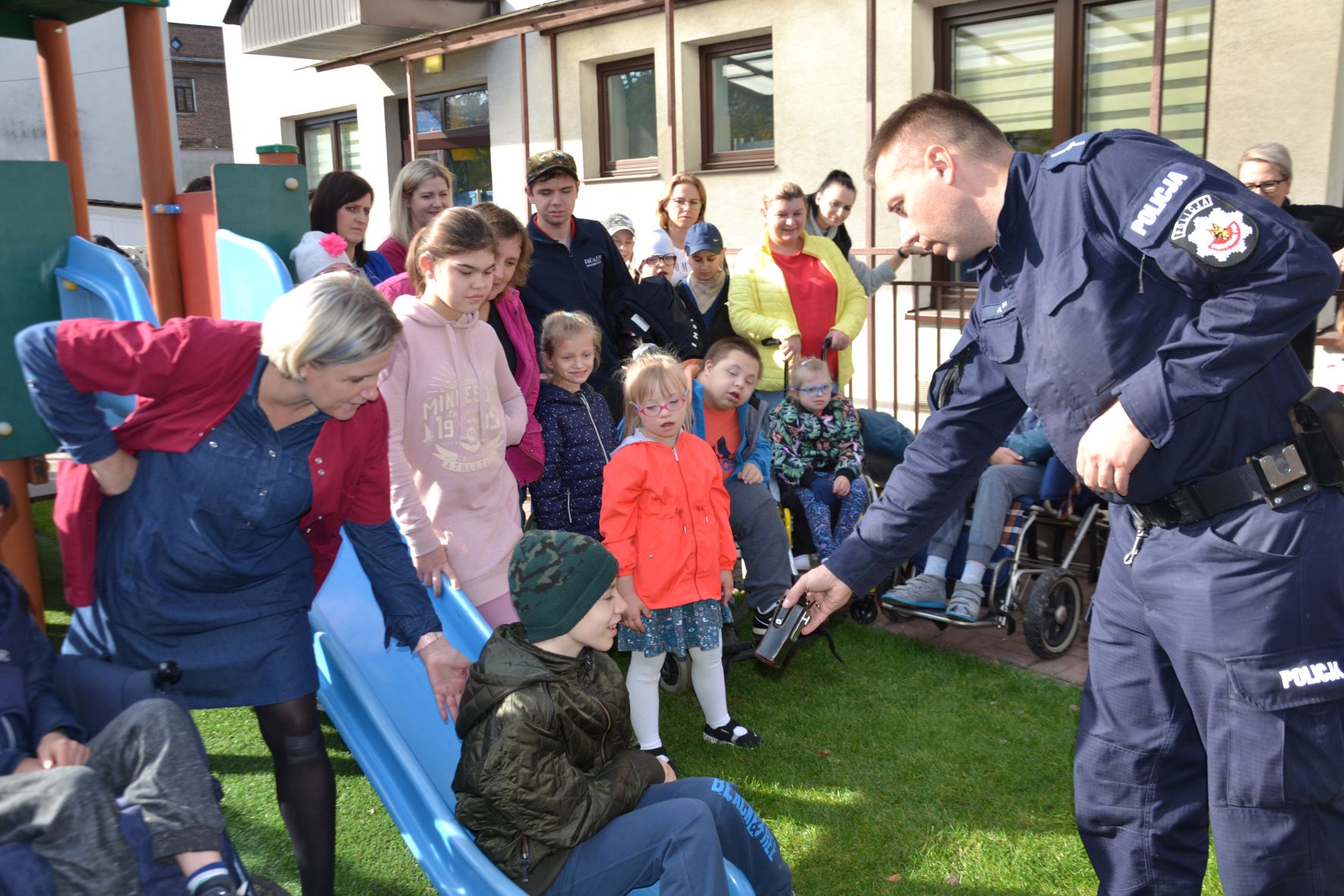 Największą atrakcją był pokaz umiejętności psa policyjnego. Wychowankowie dowiedzieli się w jaki sposób należy się zachować w przypadku spotkania z agresywnym zwierzęciem. Panowie zaprezentowali bezpieczne pozycje, które należy przyjąć w przypadku ataku ze strony psa. Chętni wychowankowie mieli możliwość zmierzenia odzieży ochronnej wykorzystywanej podczas tresury psa. Dużym zainteresowaniem cieszyła się również prezentacja wyposażenia policyjnego niezbędnego podczas wykonywania pracy oraz obejrzenia od środka radiowozu policyjnego.