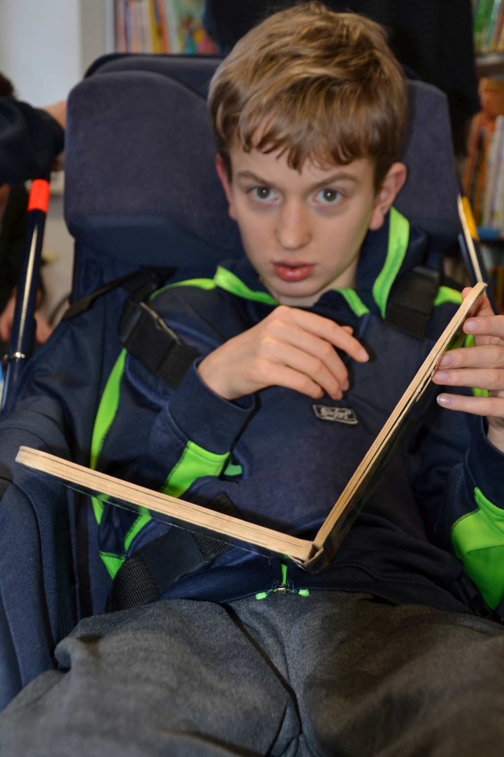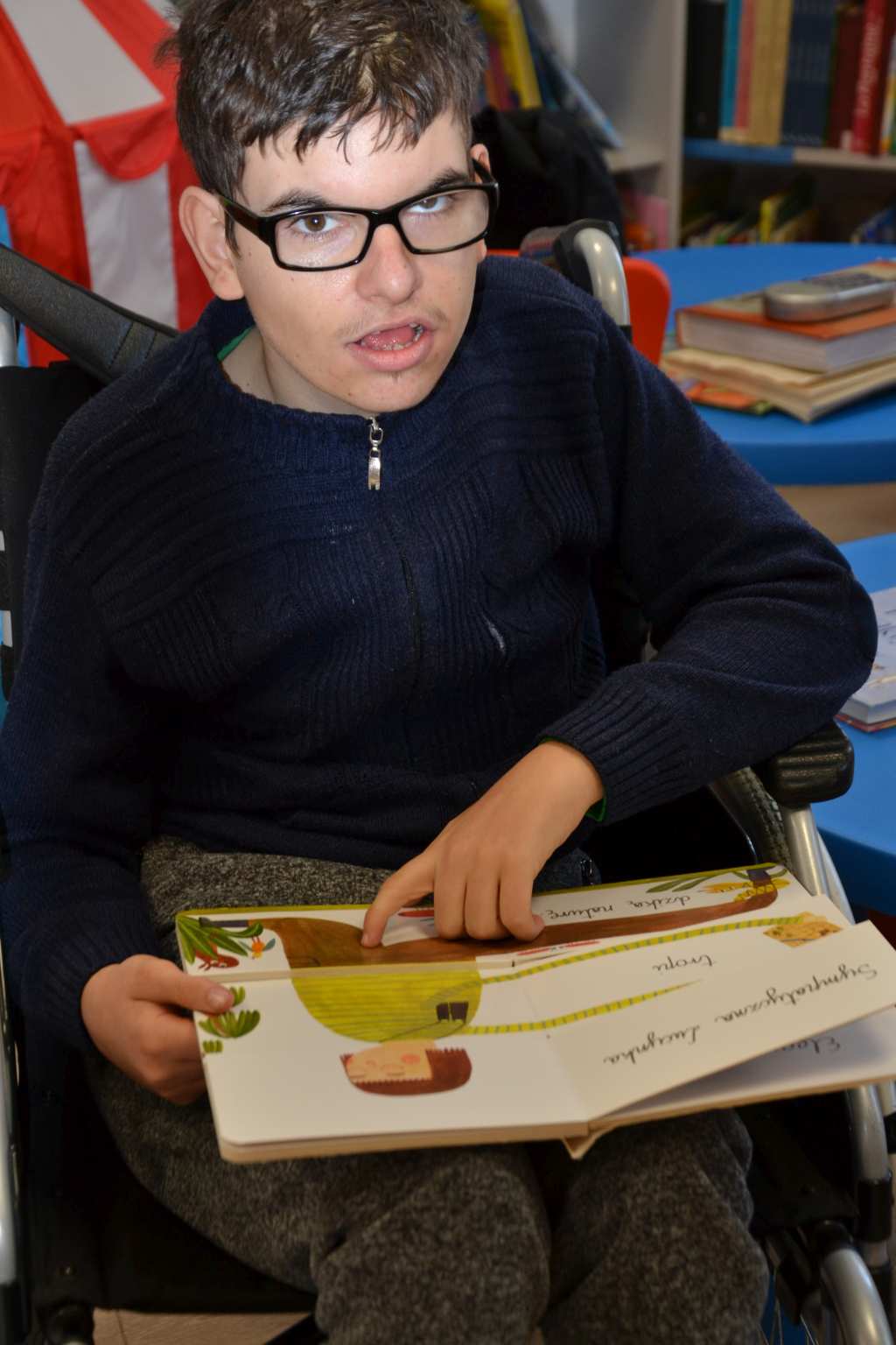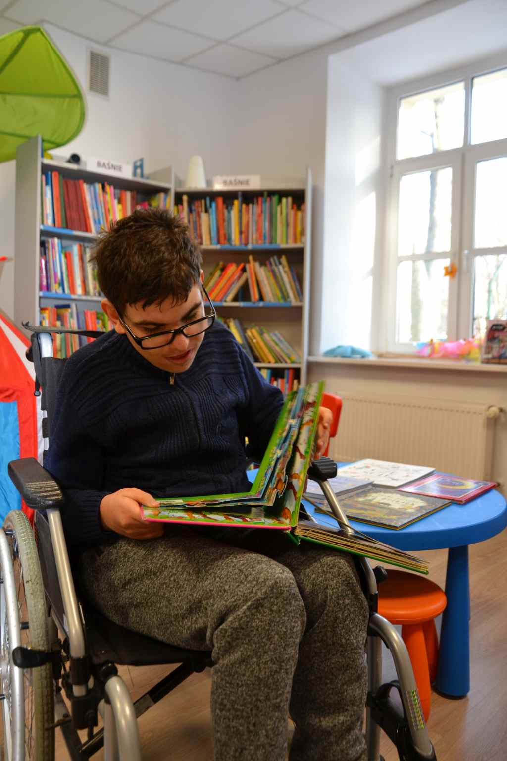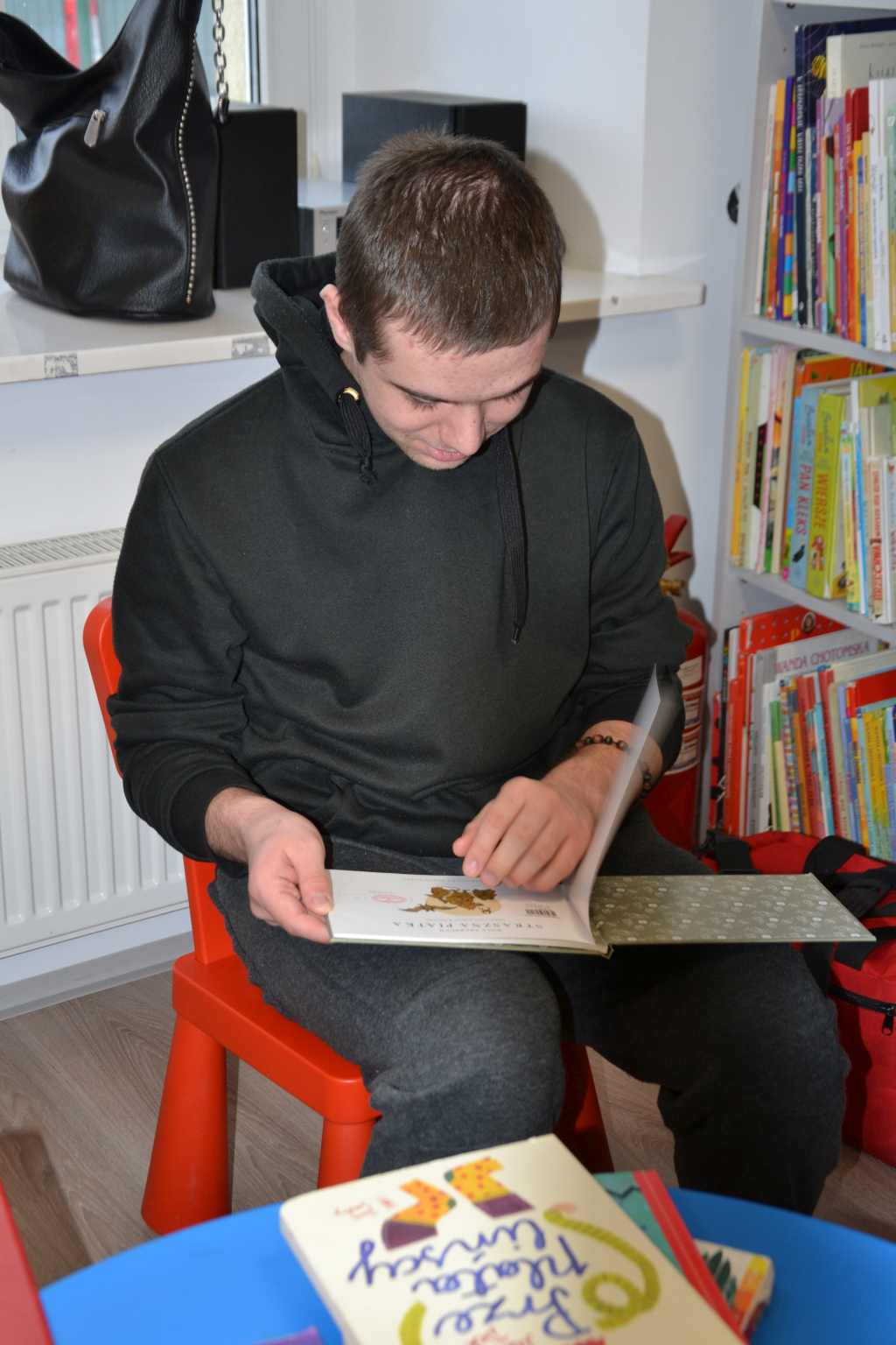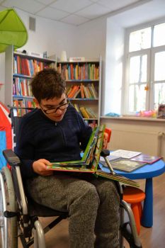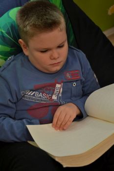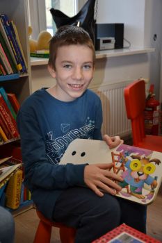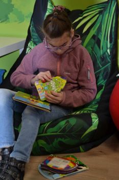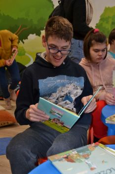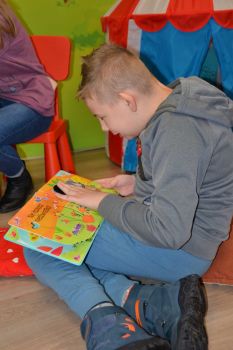Pani bibliotekarka przeczytała uczniom książkę pt; "Wizyta w bibliotece". Wychowankowie OREW zapoznali się z różnymi rodzajami książek oraz dostępnych zbiorów filmów, układanek.