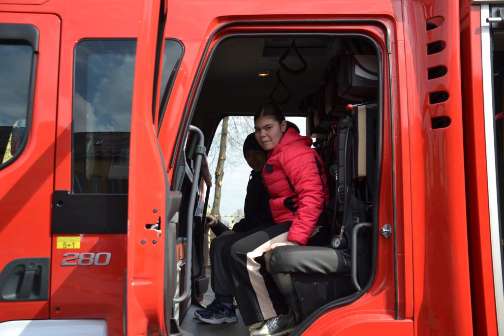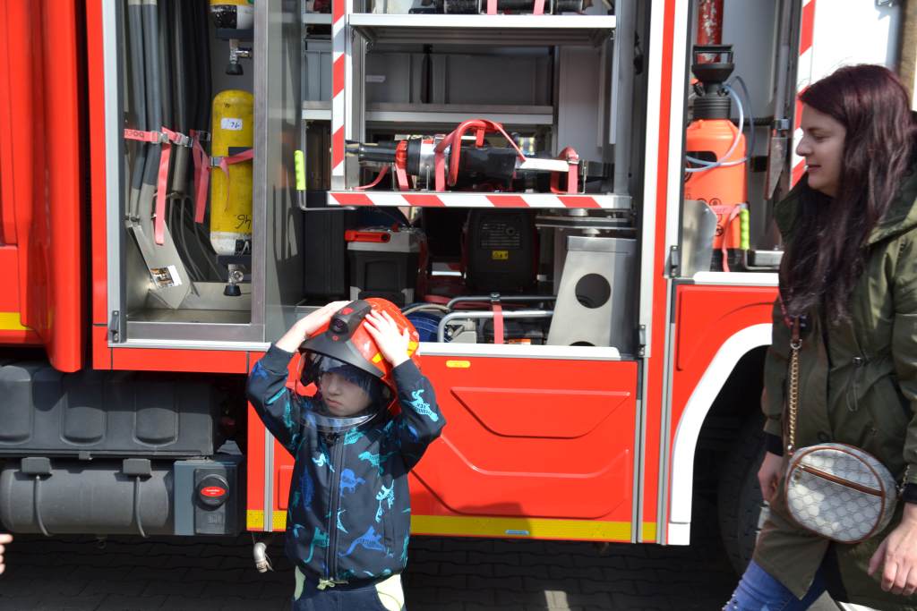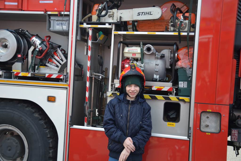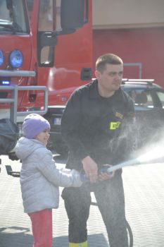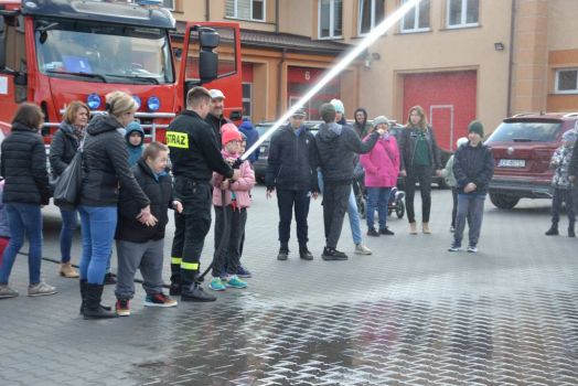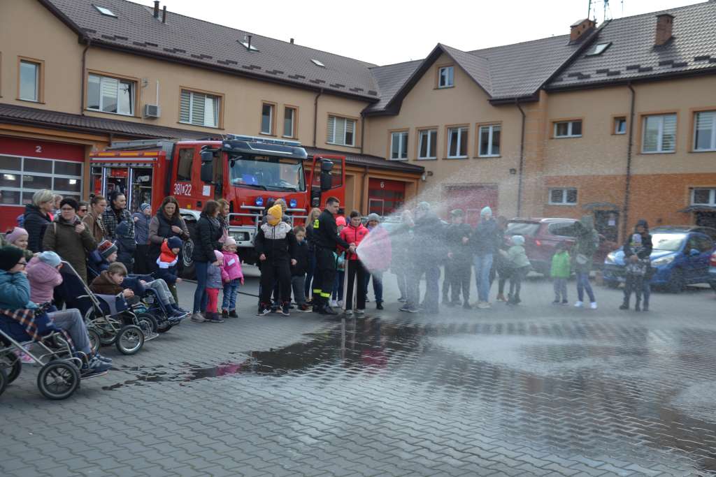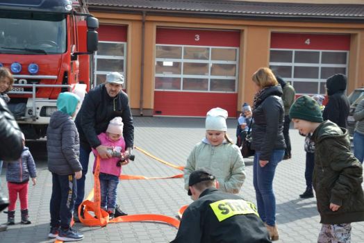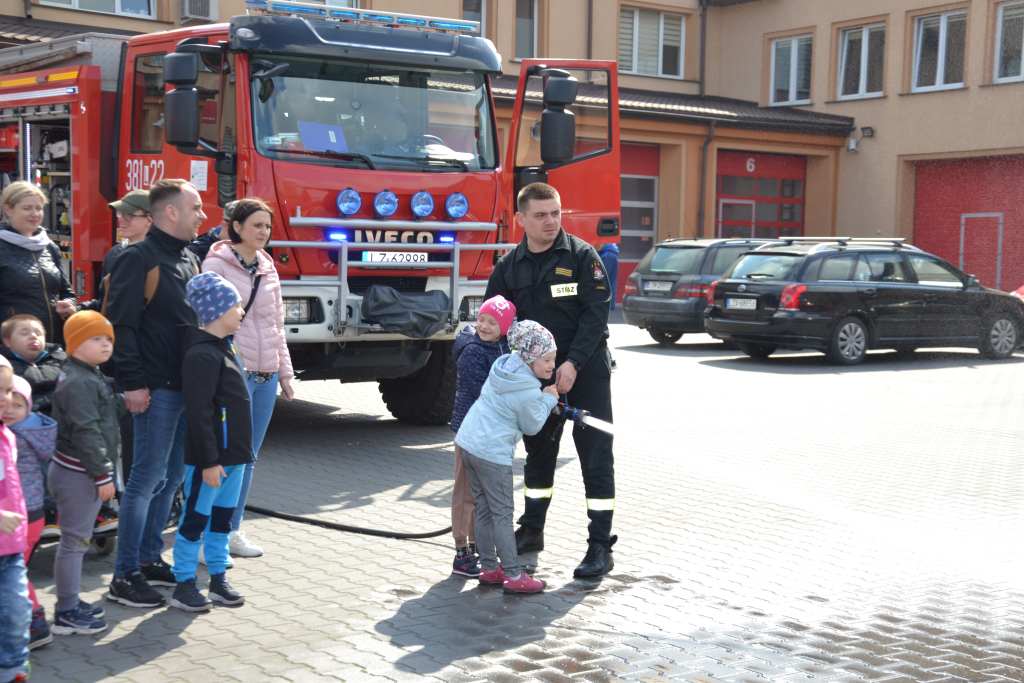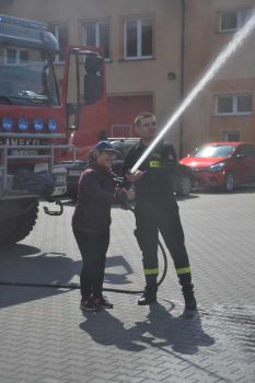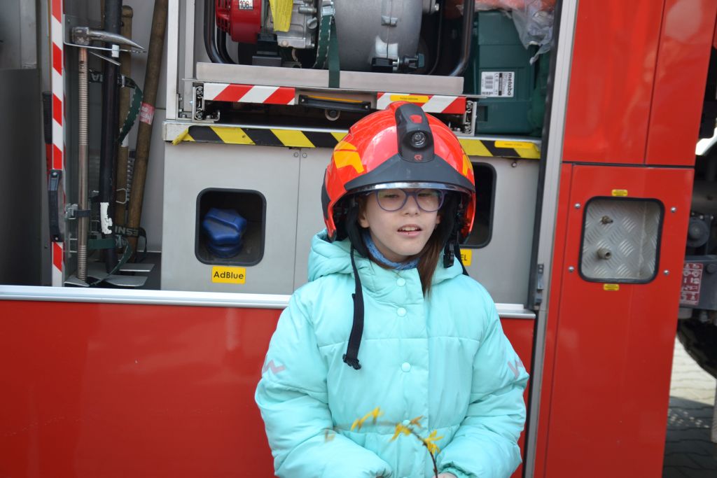 Uczniowie zobaczyli , jak wygląda strój strażaka, przygotowanie do akcji ratunkowej, sprzęt ratowniczy i gaśniczy wykorzystywany do ratowania ludzkiego życia. Dużą atrakcją dla dzieci było oglądanie wozów strażackich oraz przymierzanie hełmu i umundurowania strażackiego. Jednak najwięcej emocji w podopiecznych wzbudził pokaz obsługi węża strażackiego oraz możliwość jego samodzielnej obsługi na placu strażnicy.
