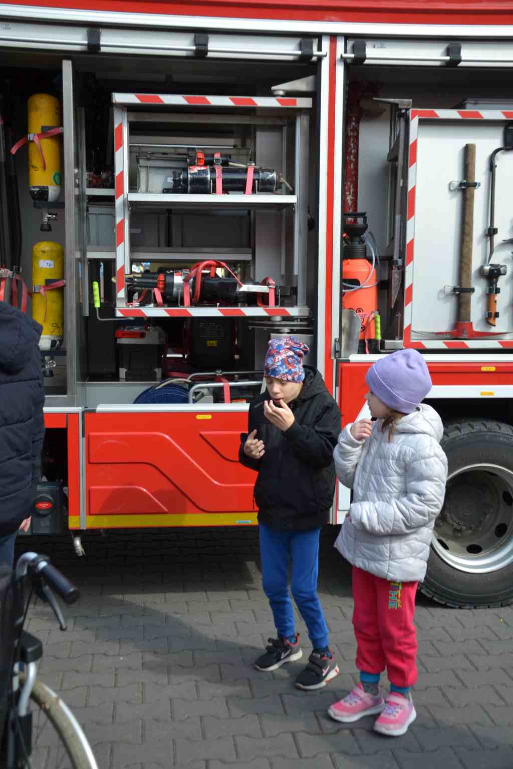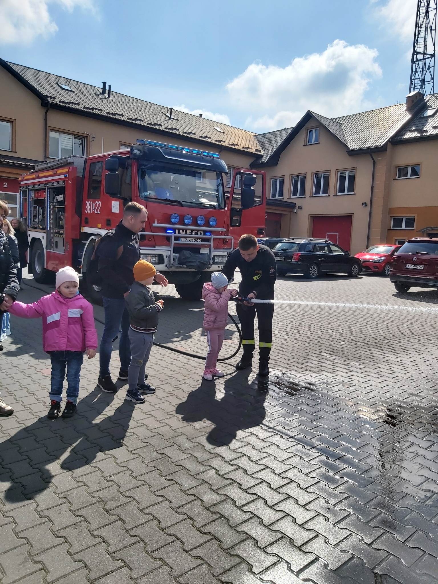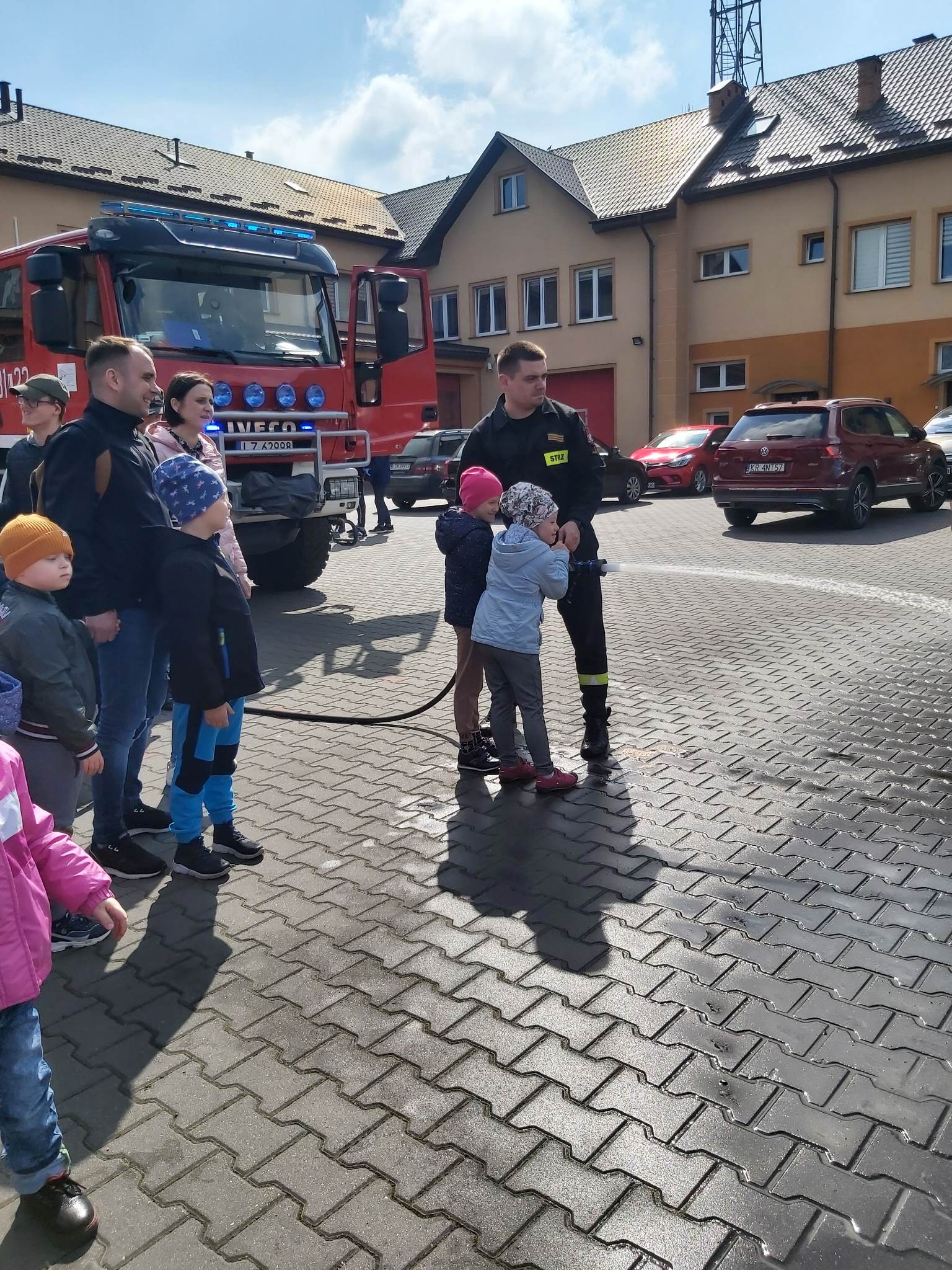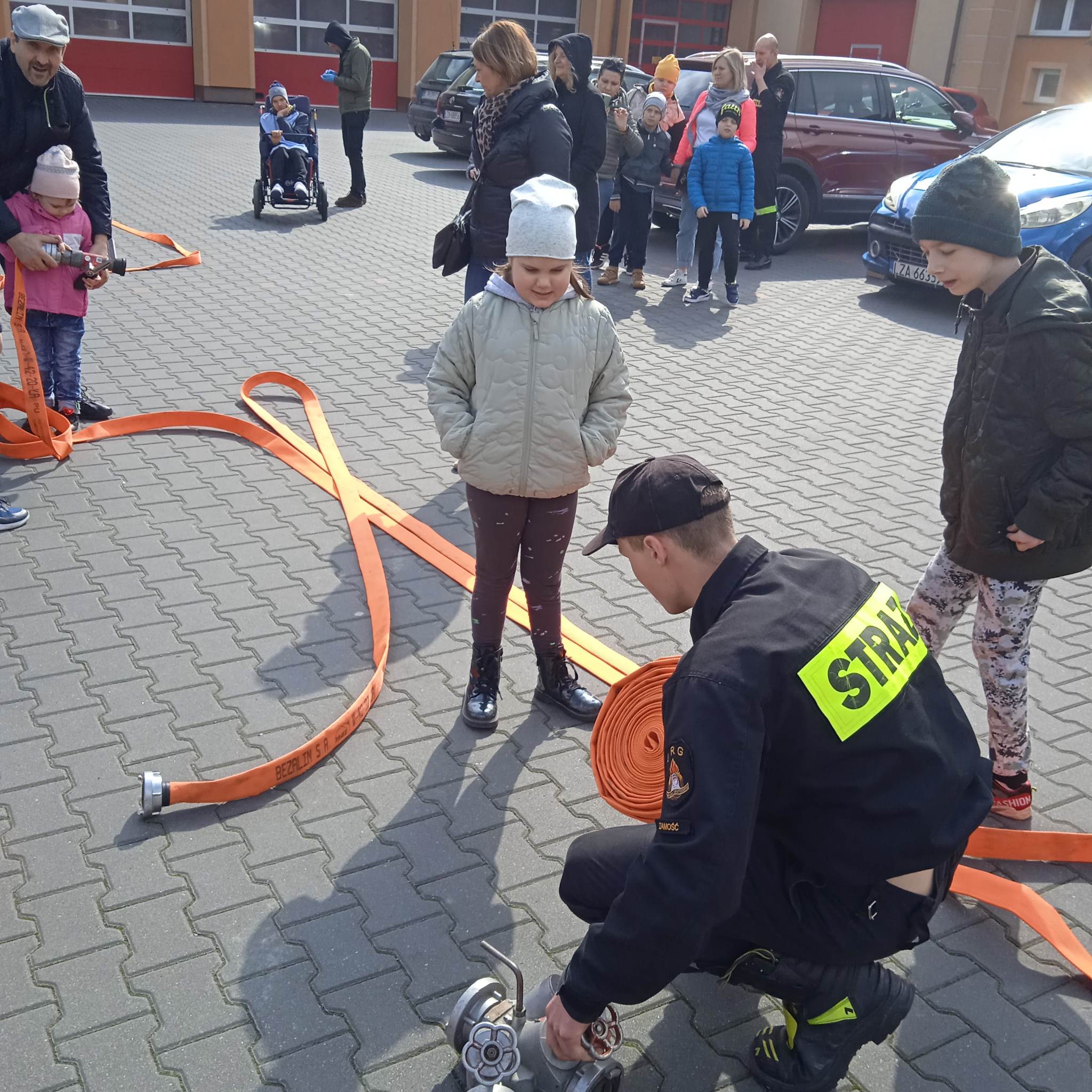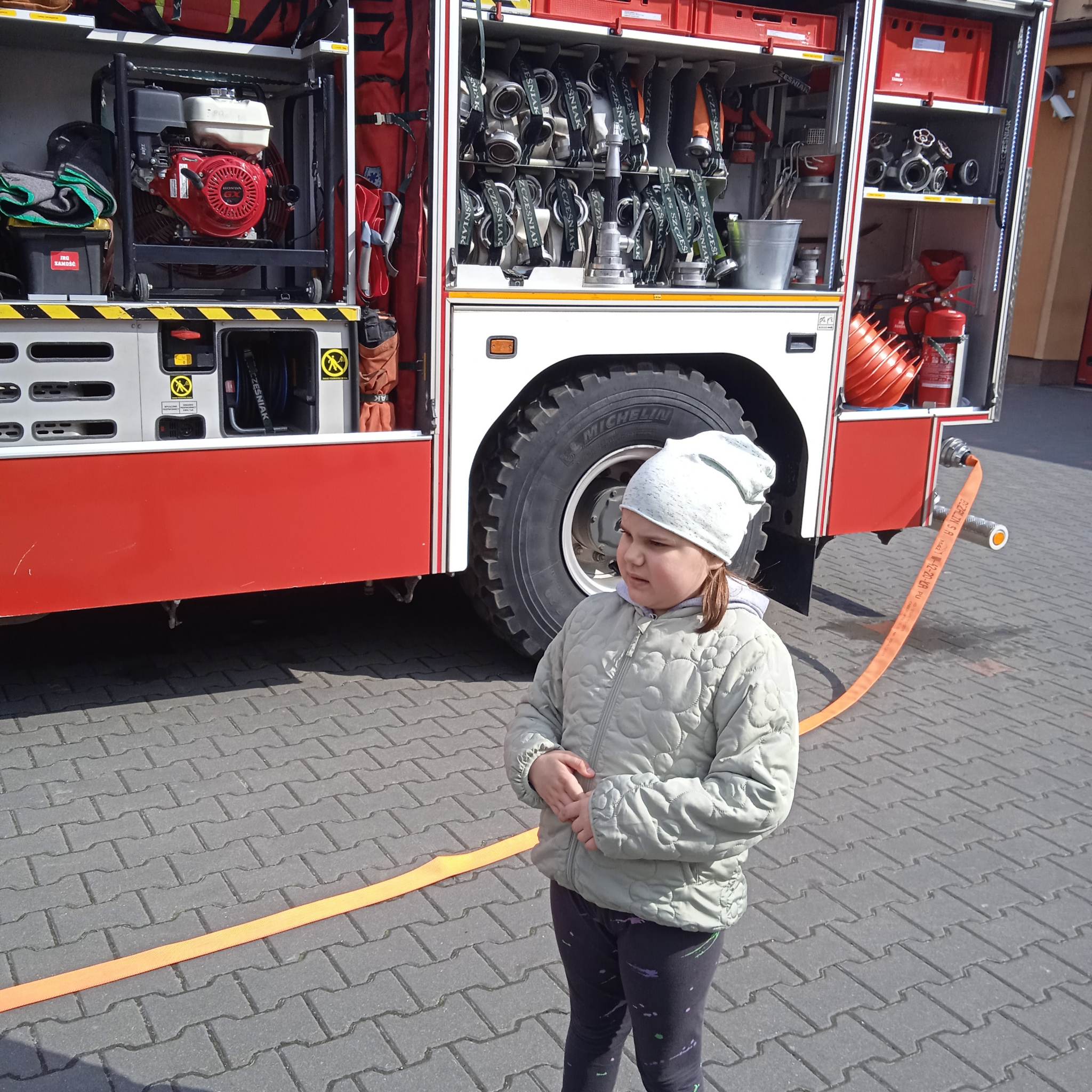 Uczniowie zobaczyli , jak wygląda strój strażaka, przygotowanie do akcji ratunkowej, sprzęt ratowniczy i gaśniczy wykorzystywany do ratowania ludzkiego życia. Dużą atrakcją dla dzieci było oglądanie wozów strażackich oraz przymierzanie hełmu i umundurowania strażackiego. Jednak najwięcej emocji w podopiecznych wzbudził pokaz obsługi węża strażackiego oraz możliwość jego samodzielnej obsługi na placu strażnicy.