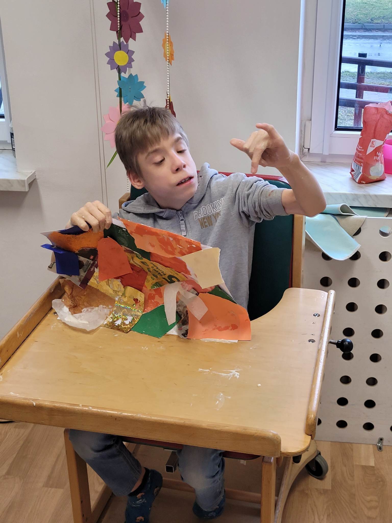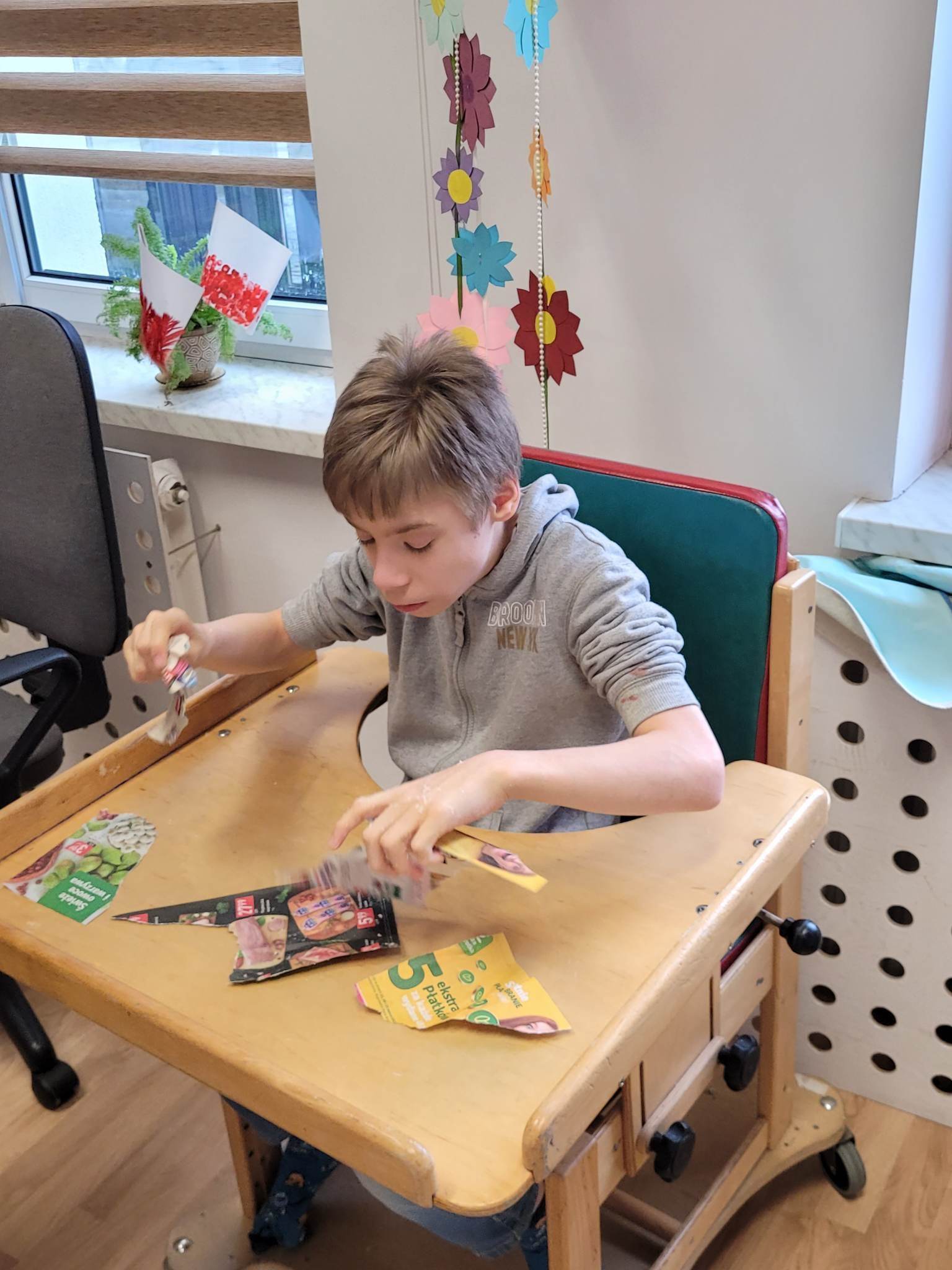Grupy rewalidacyjne wykonały kolejne zadanie pt. "Papierowe wydzieranki" w ramach Ogólnopolskiego Projektu Edukacyjnego "Z darami natury świat nie jest ponury".