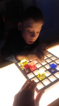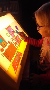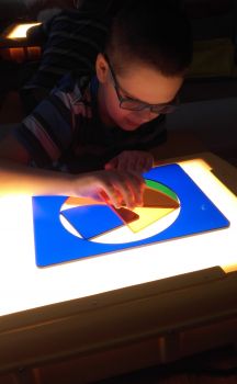 - Light Box- stolik podświetlany: zajęcia prowadzone tą metodą stymulują do patrzenia, stolik stwarza odpowiedni kontrast, podświetla obrazki, dzięki czemu są bardziej widoczne; kolorowe pomoce są atrakcyjne a oryginalność materiałów motywuje wychowanków do użycia wzroku